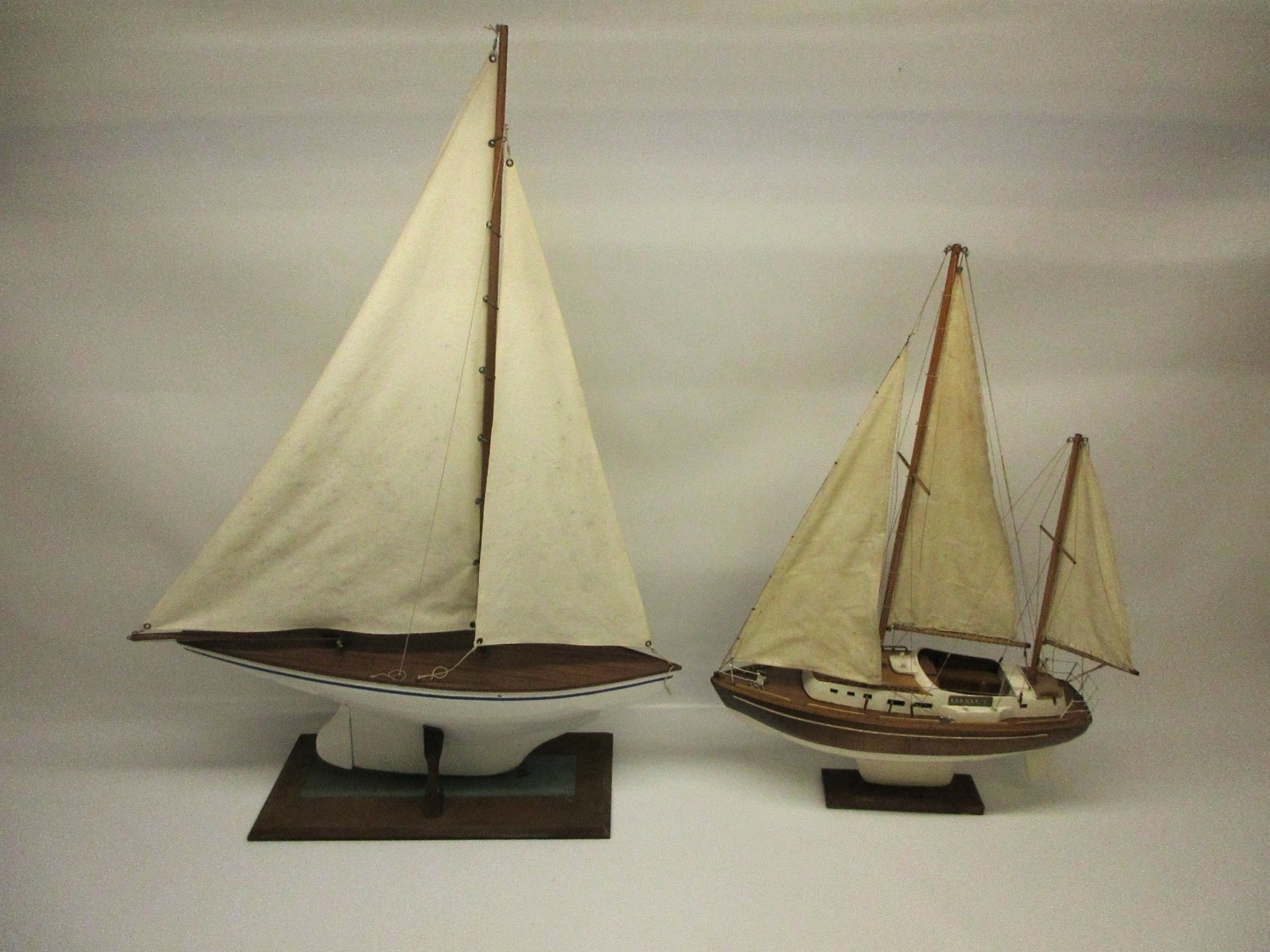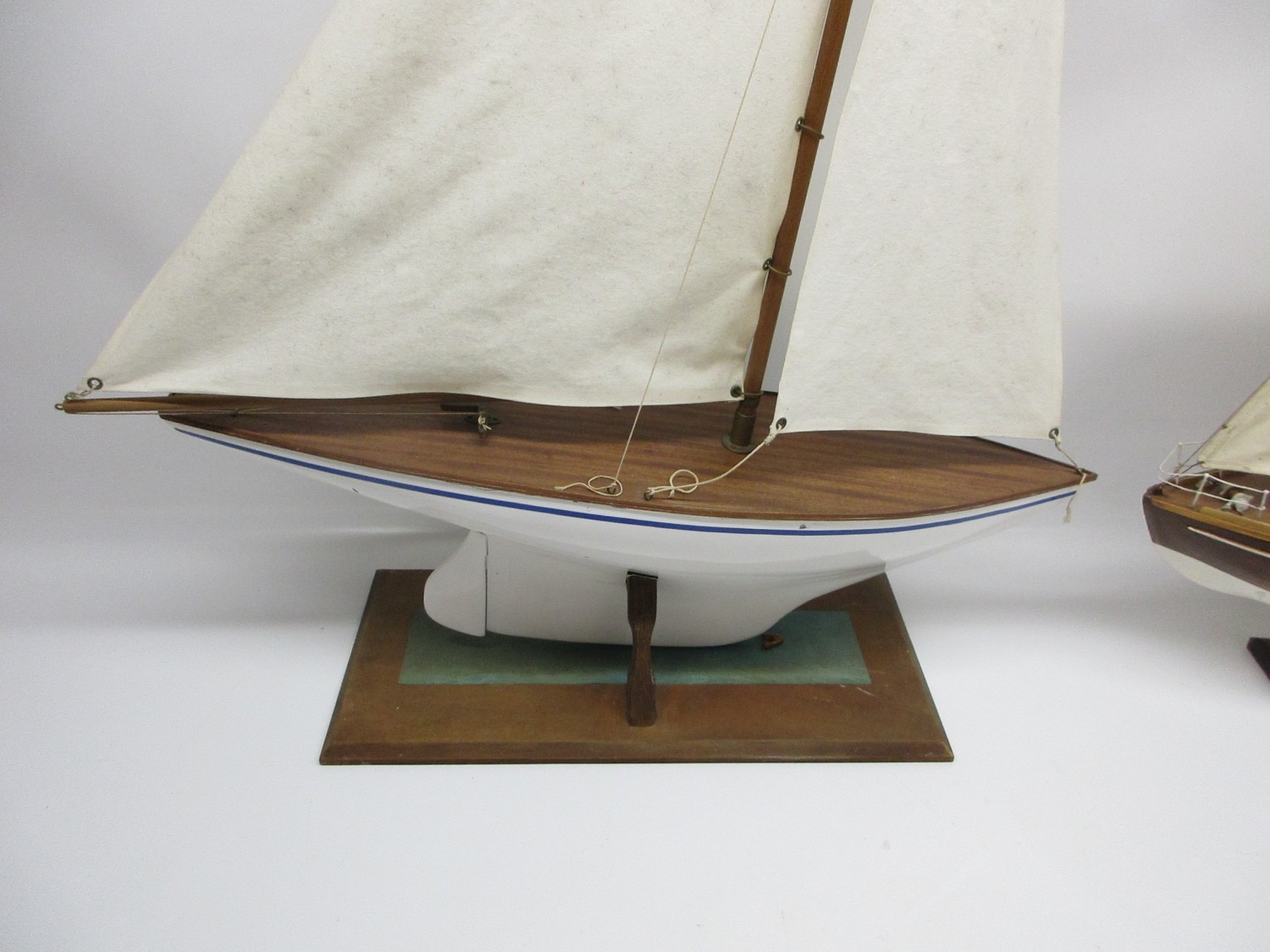 Two mid-century pond yachts with a spare set of sails, L64cm (2) Shipping POA https://www.bradleys.ltd/quotation-request-form