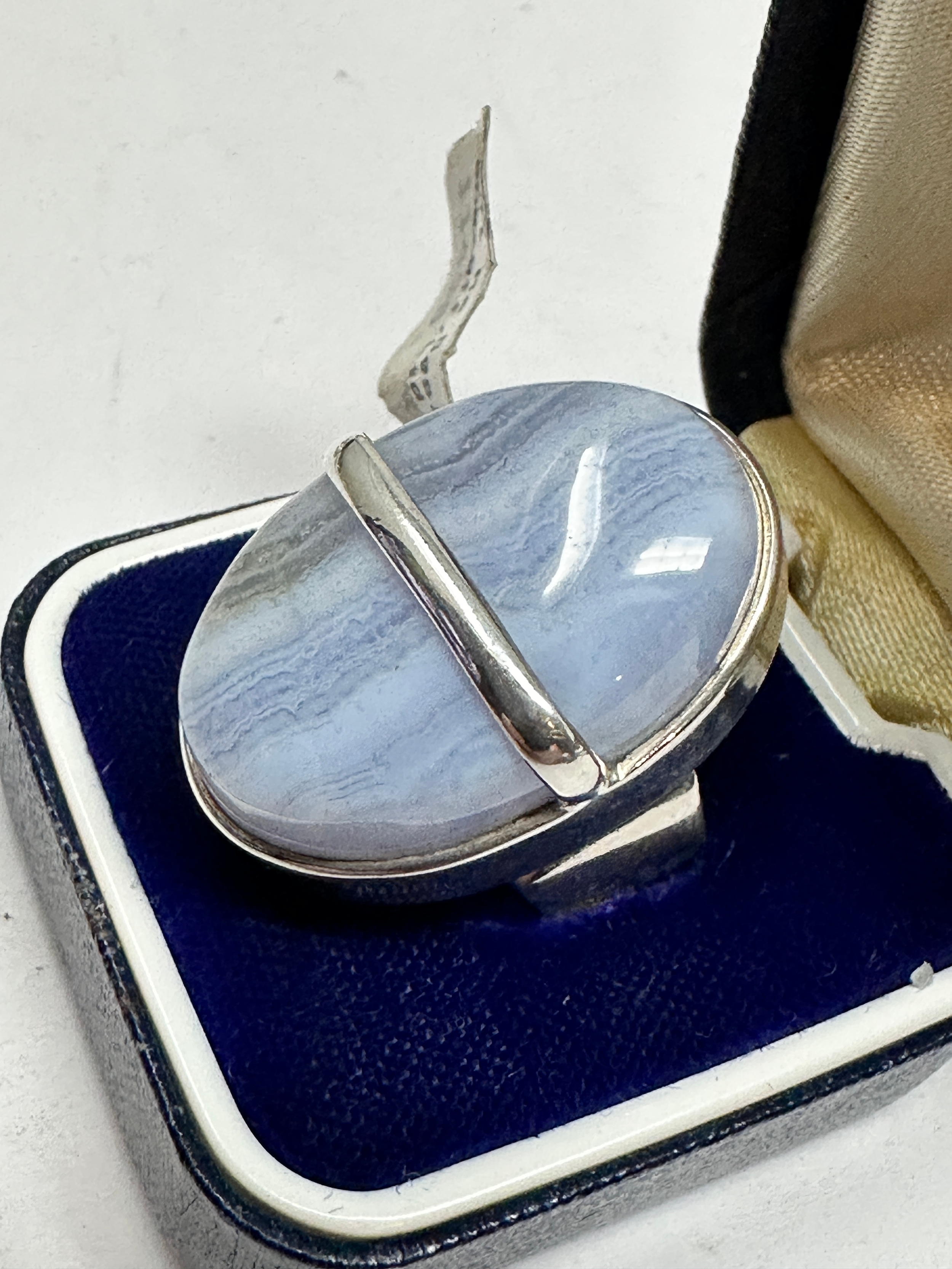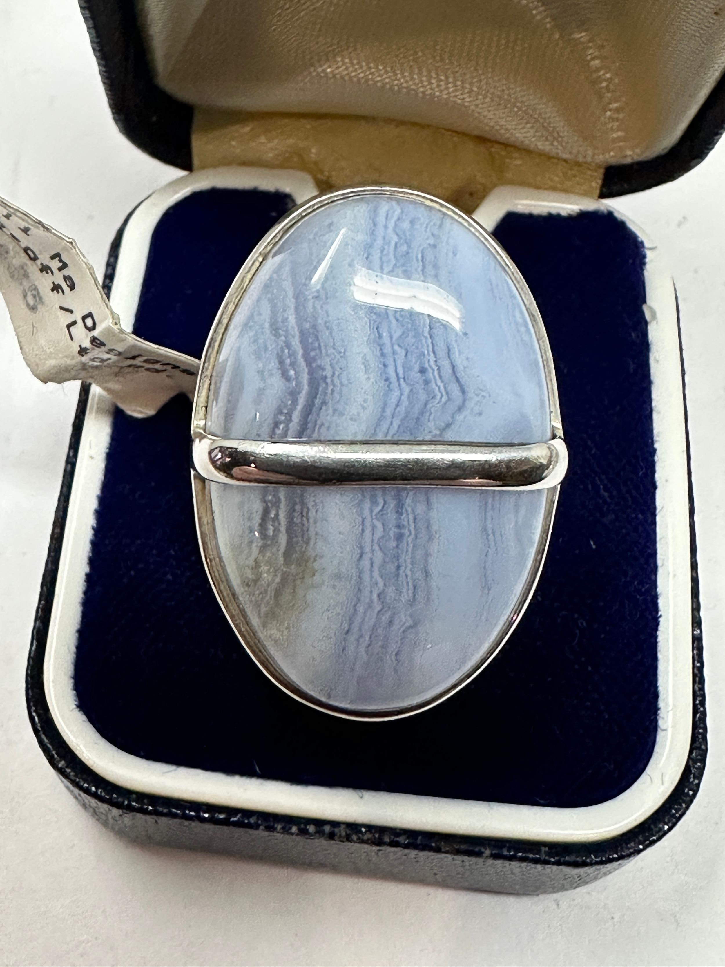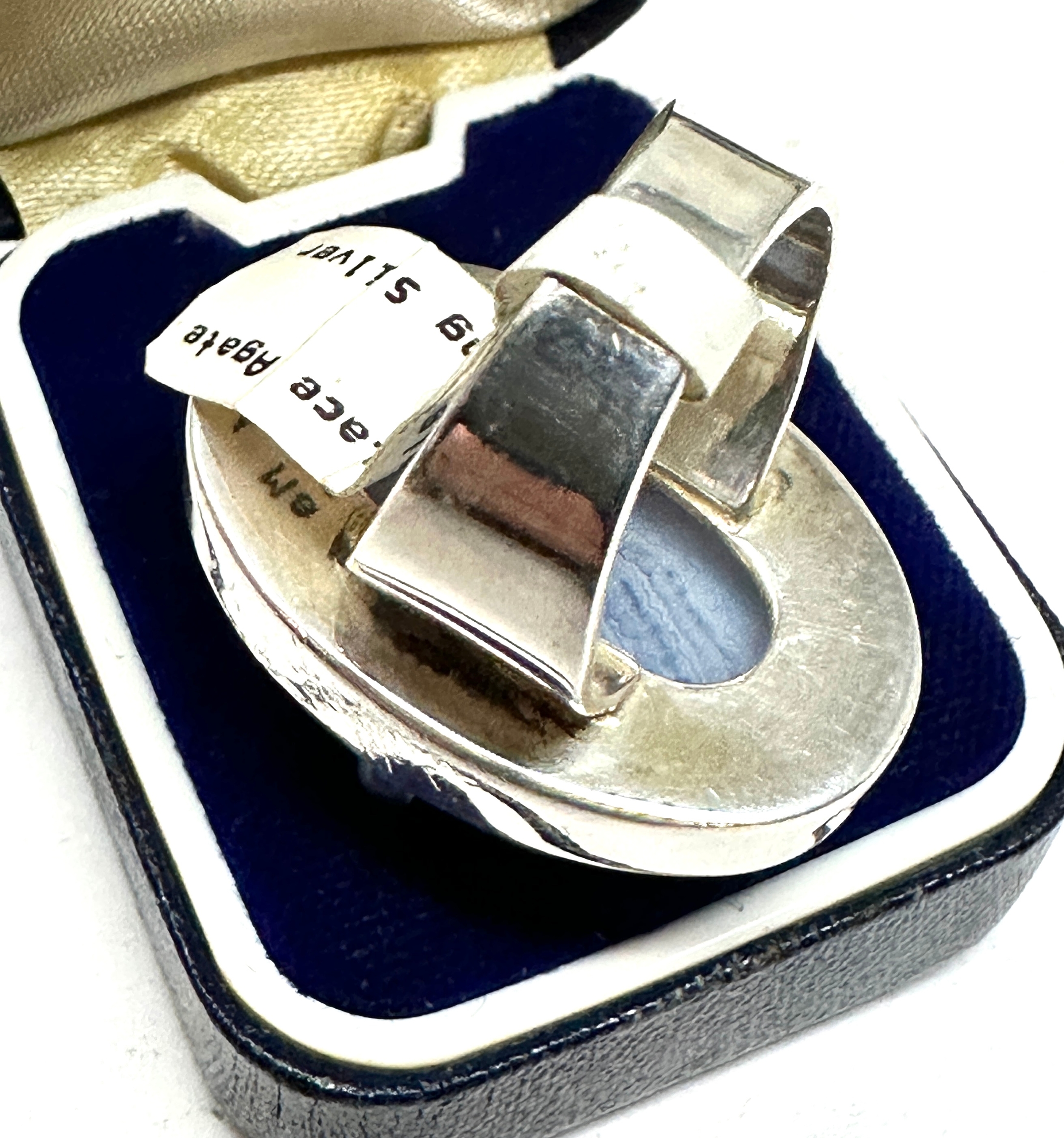 large Sterling silver Kali Ma designer blue lace agate ring weight 14g