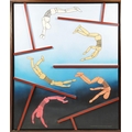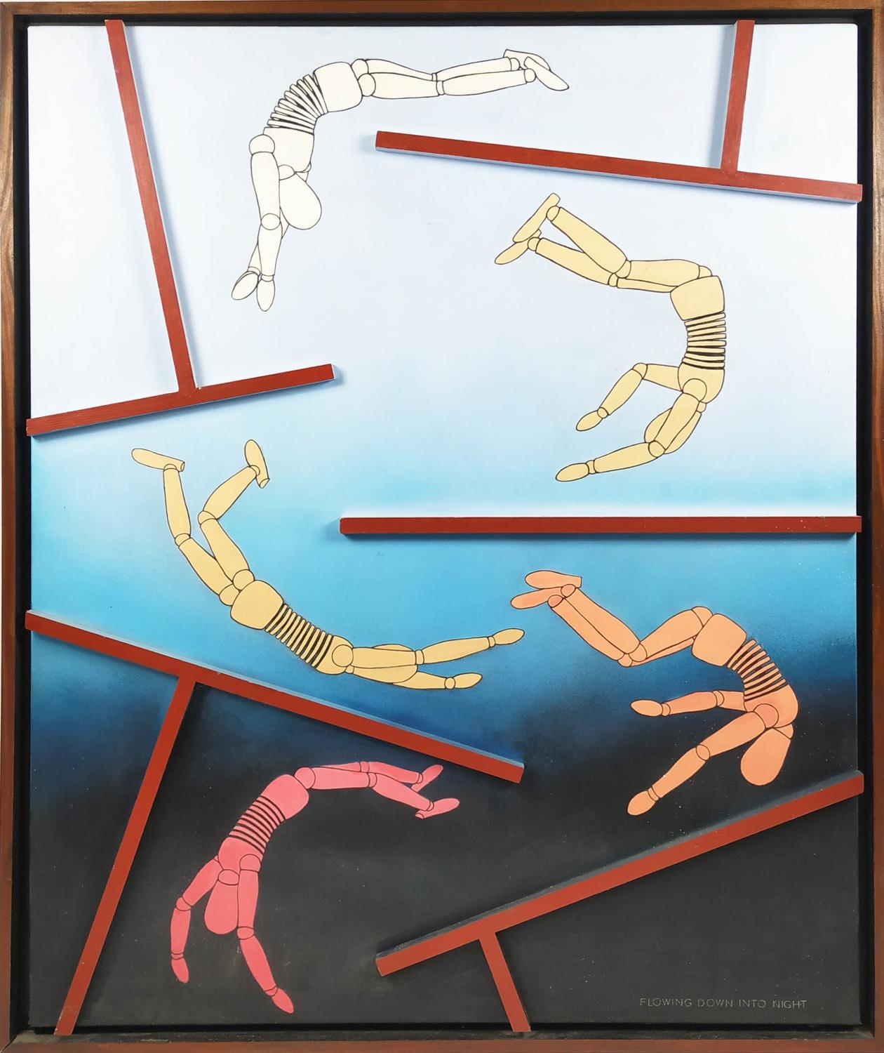 DEREK CARRUTHERS (1935-2021), 'Flowing down into night', oil on canvas with wooden relief, 153cm x 122cm, signed verso, framed. (Subject to ARR - see Buyers Conditions)