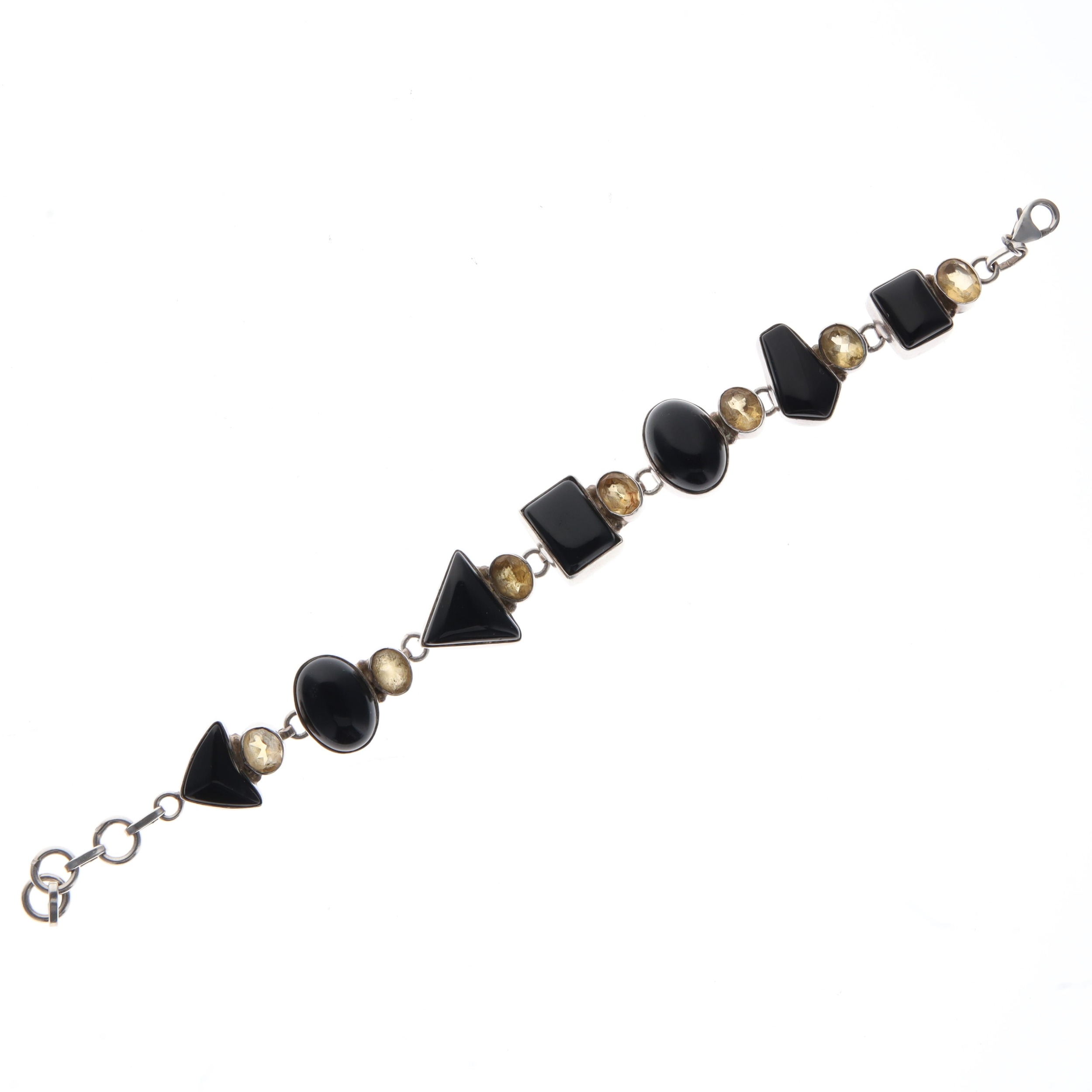 Onyx and Citrine Sterling Silver Gemstone Bracelet, 30g