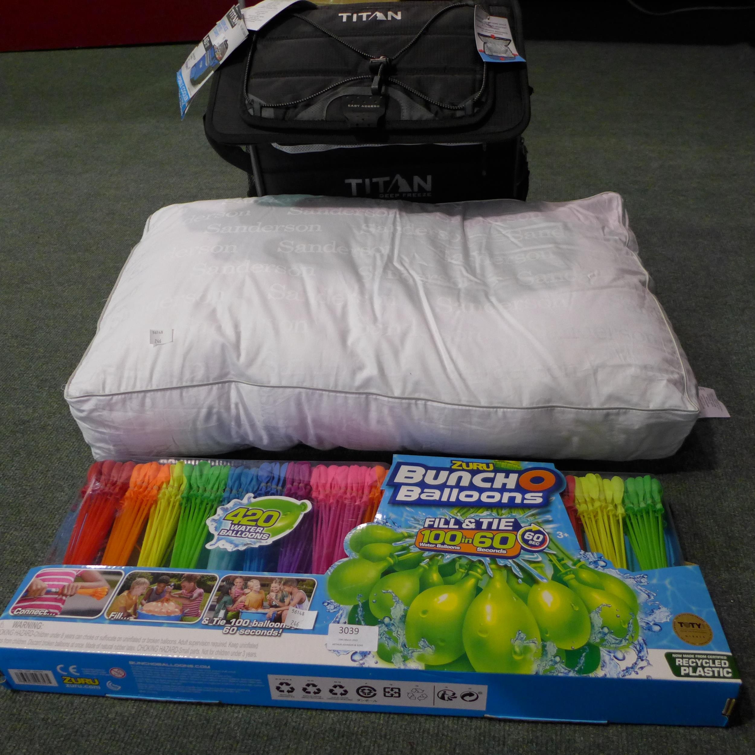 Sanderson Pillow, Titan 40 Can Cooler and Bunch O Balloons 420Pk Ss (244-234237,243,) * This Lot Is Subject To Vat