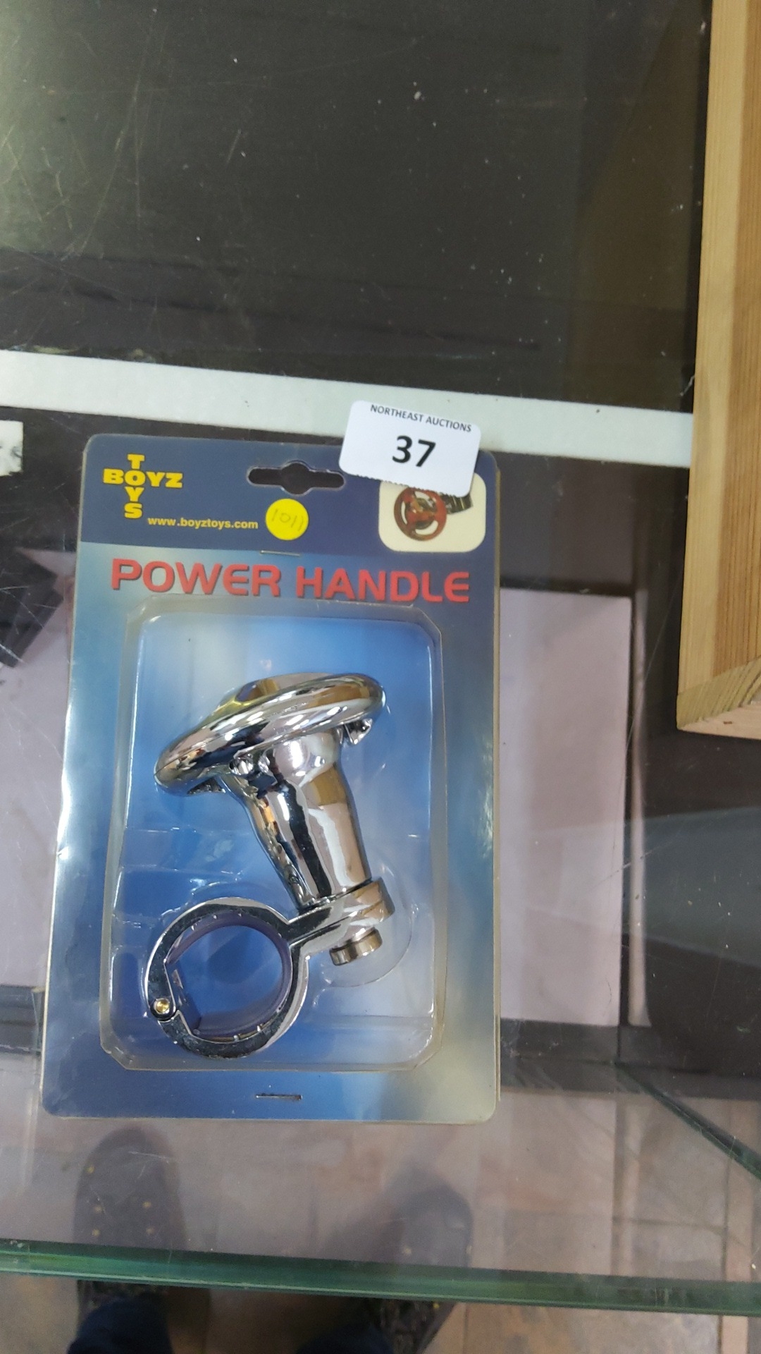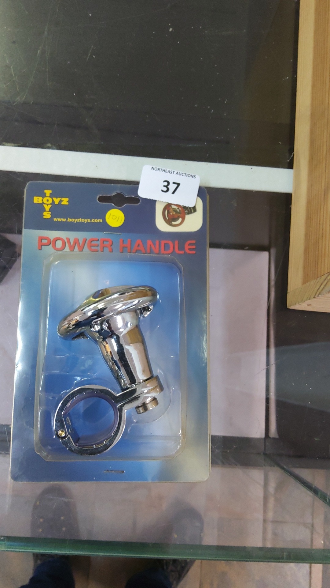 A boxed T Boyz Toys chrome-effect power handle, with clamp fitting, presented in original blister packaging.
