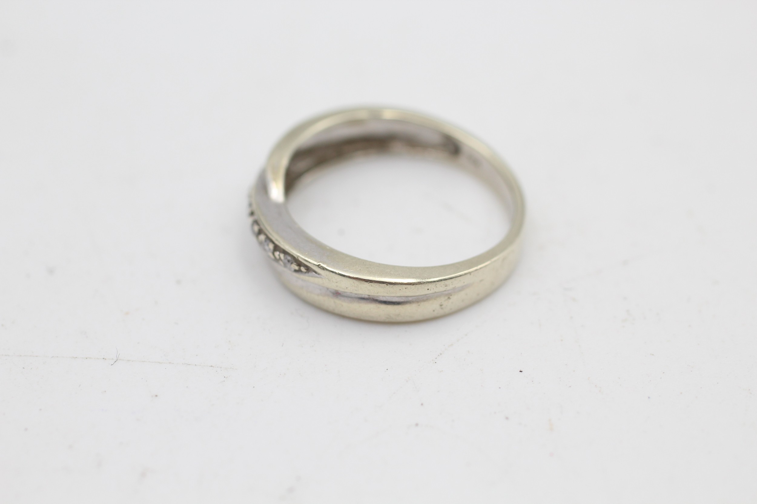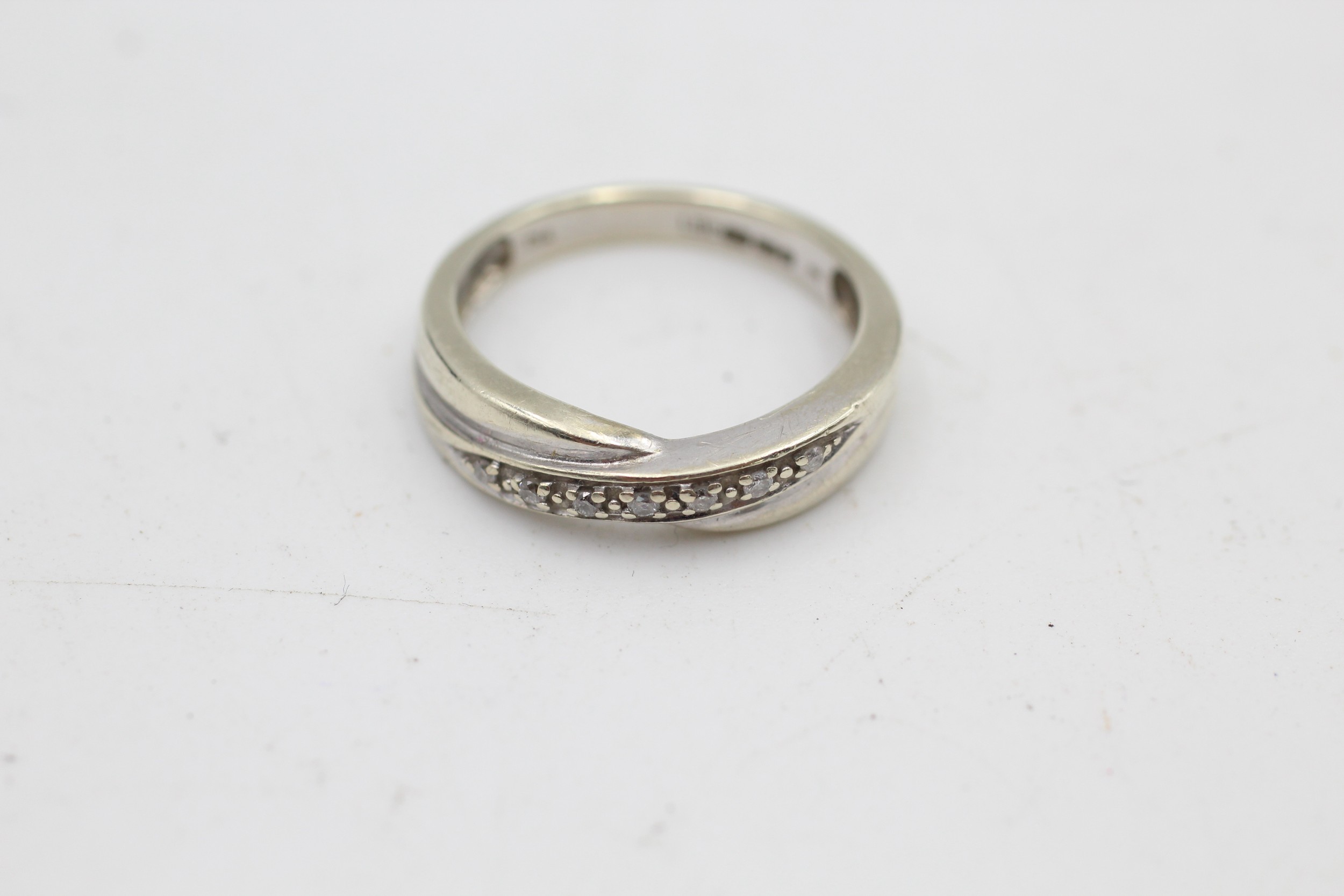 9ct white gold diamond crossover ring (2.5g) SIZE K
