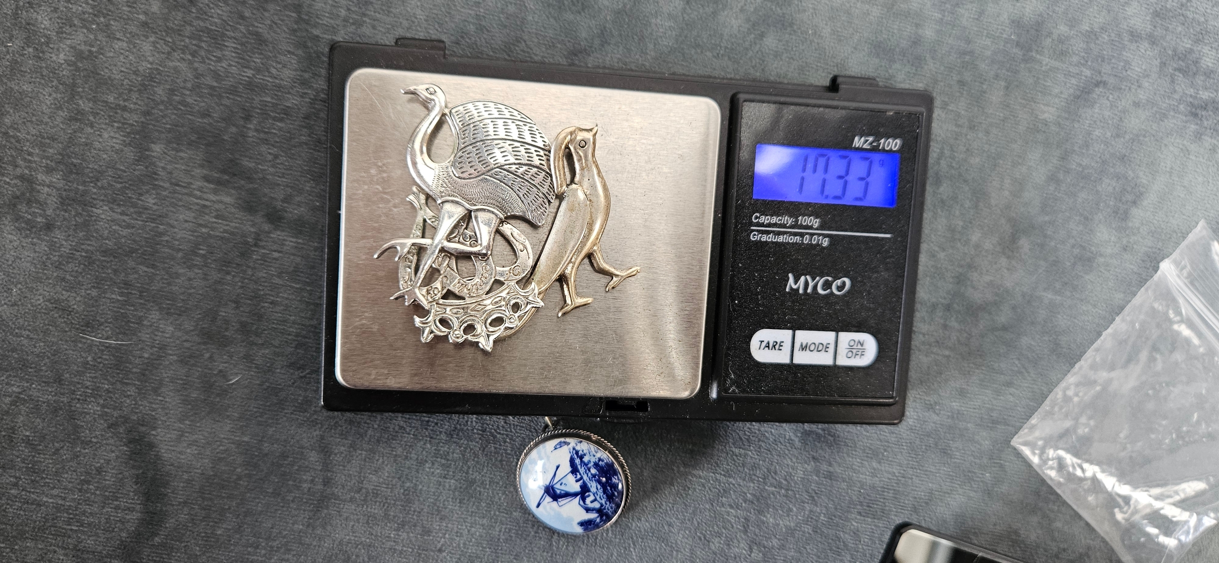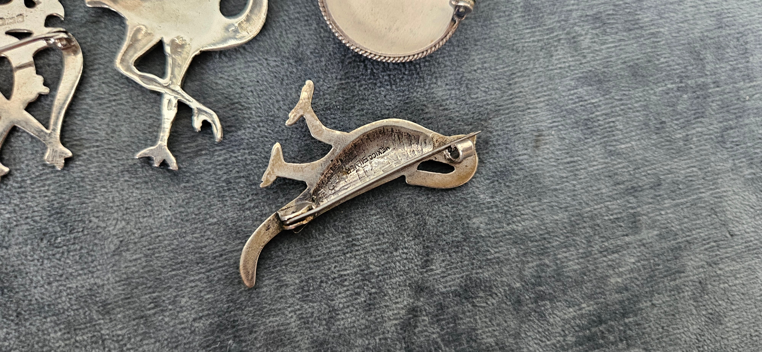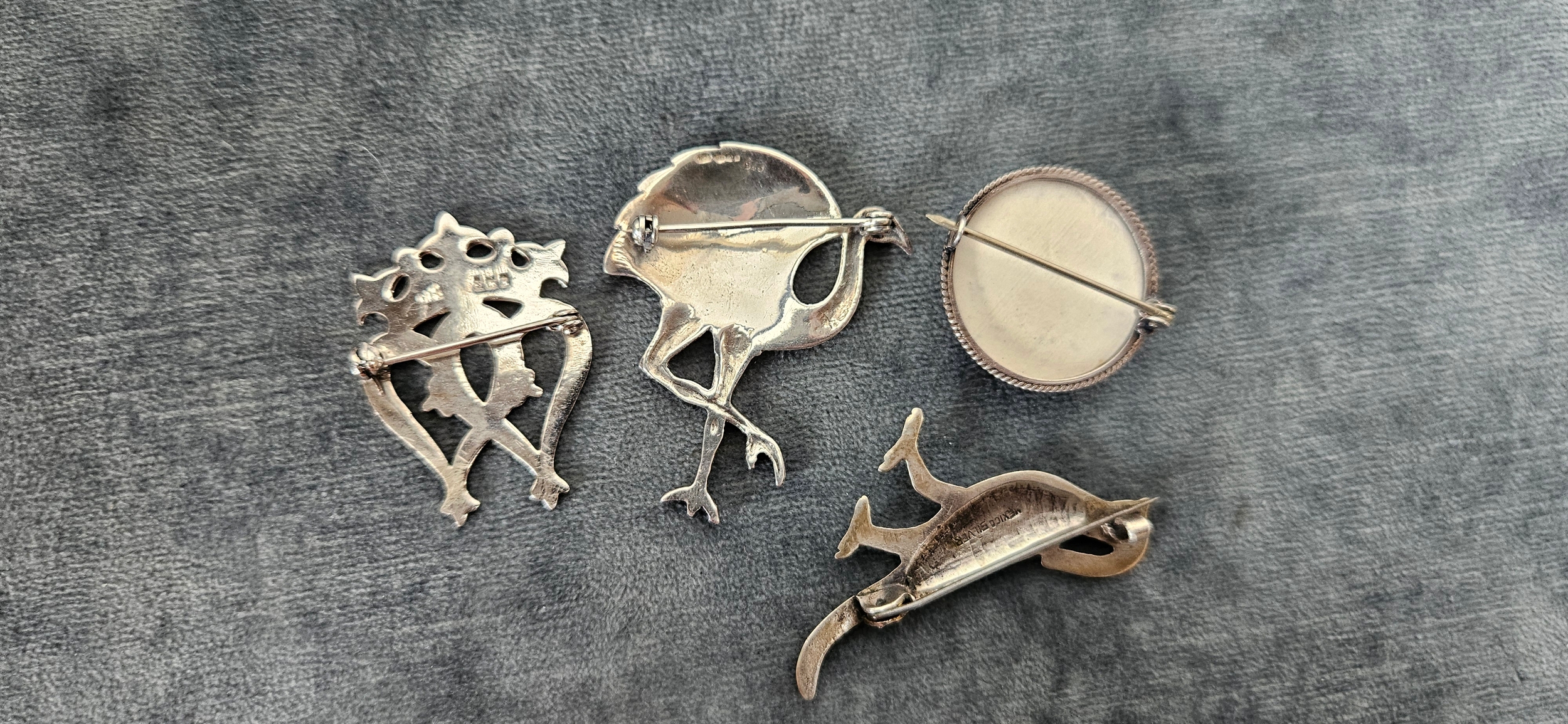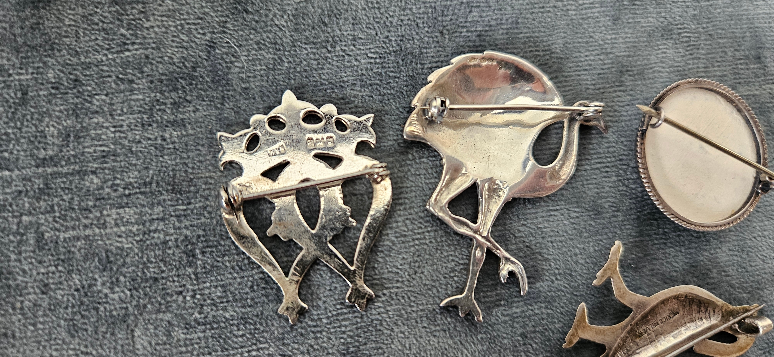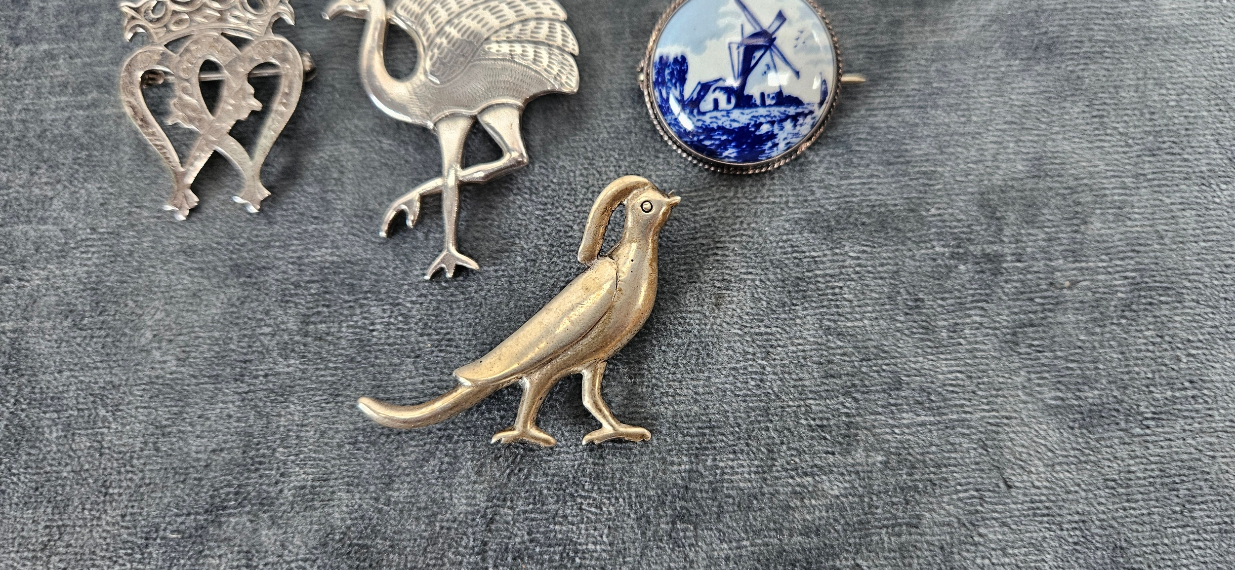 4 x Silver brooches including delft and birds