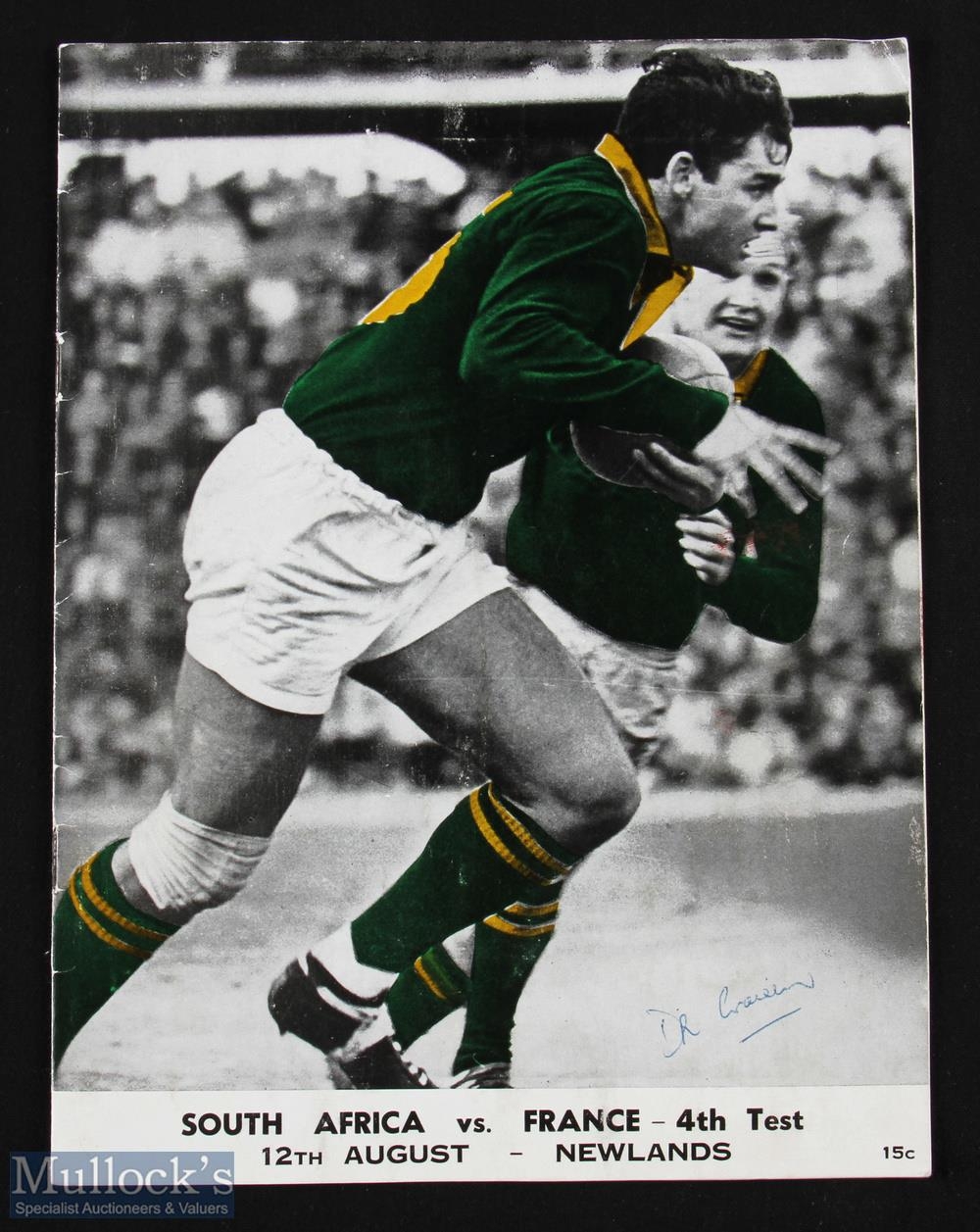 1967 S Africa v France Test Rugby Programme: 12th August, 4th test programme from Cape Town. VG