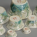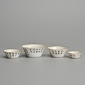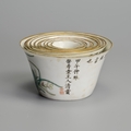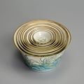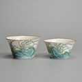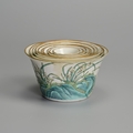 Quatrefoil baluster form with two handles, covered in a mottled aubergine coloured glaze. 15cm tall.