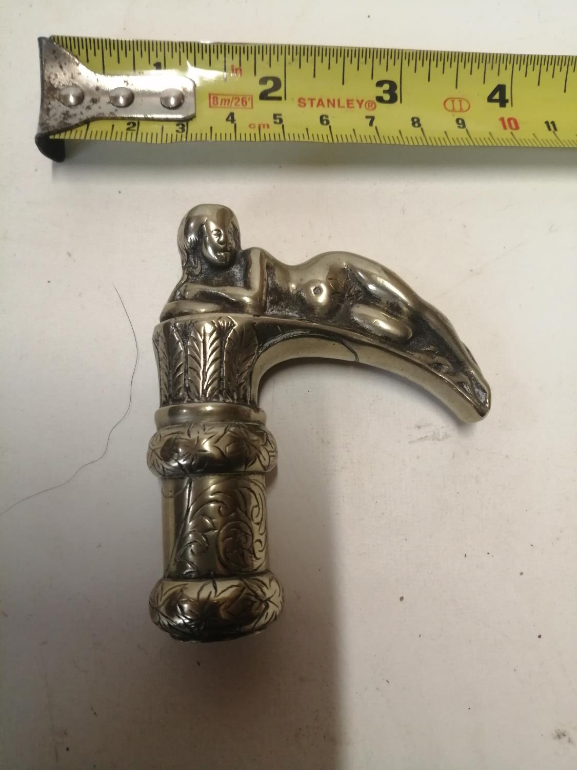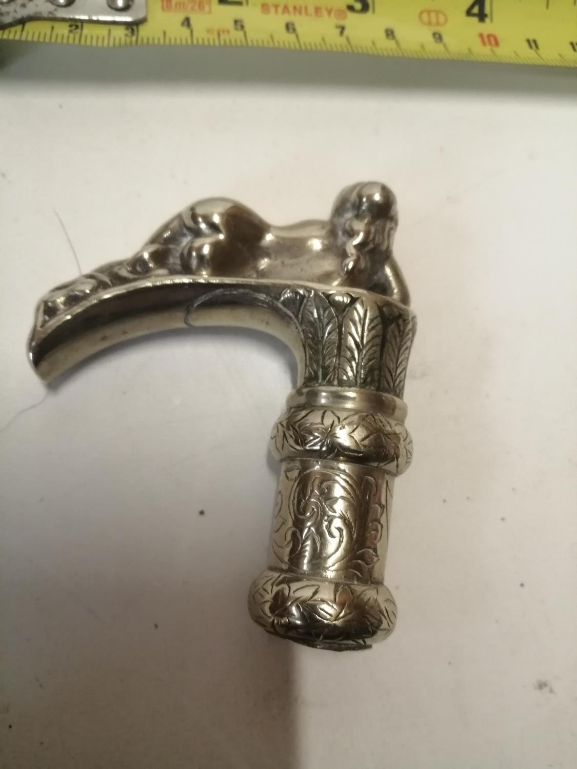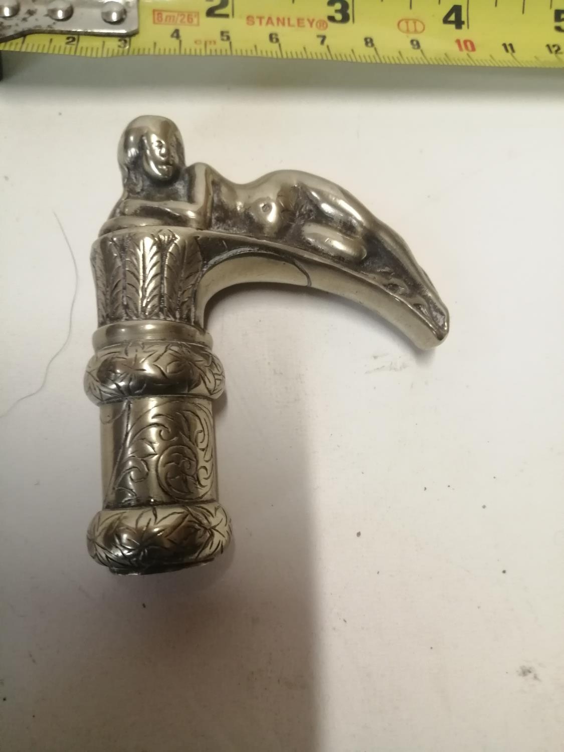Silver plated walking stick head modelled as a reclining nude, note all polish worn off