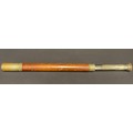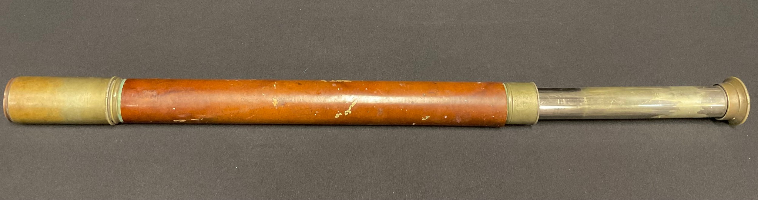 A late 19th/early 20th century brass telescope, brown leather grip, 45cm closed