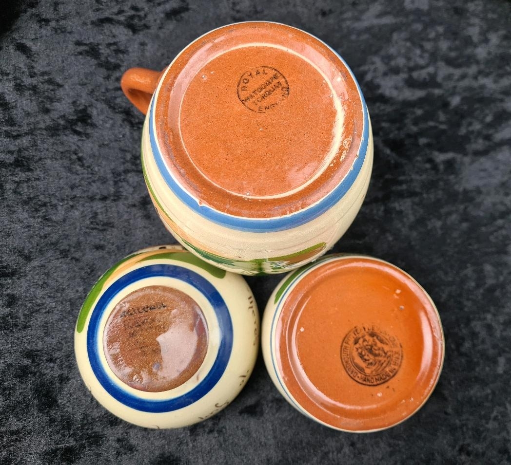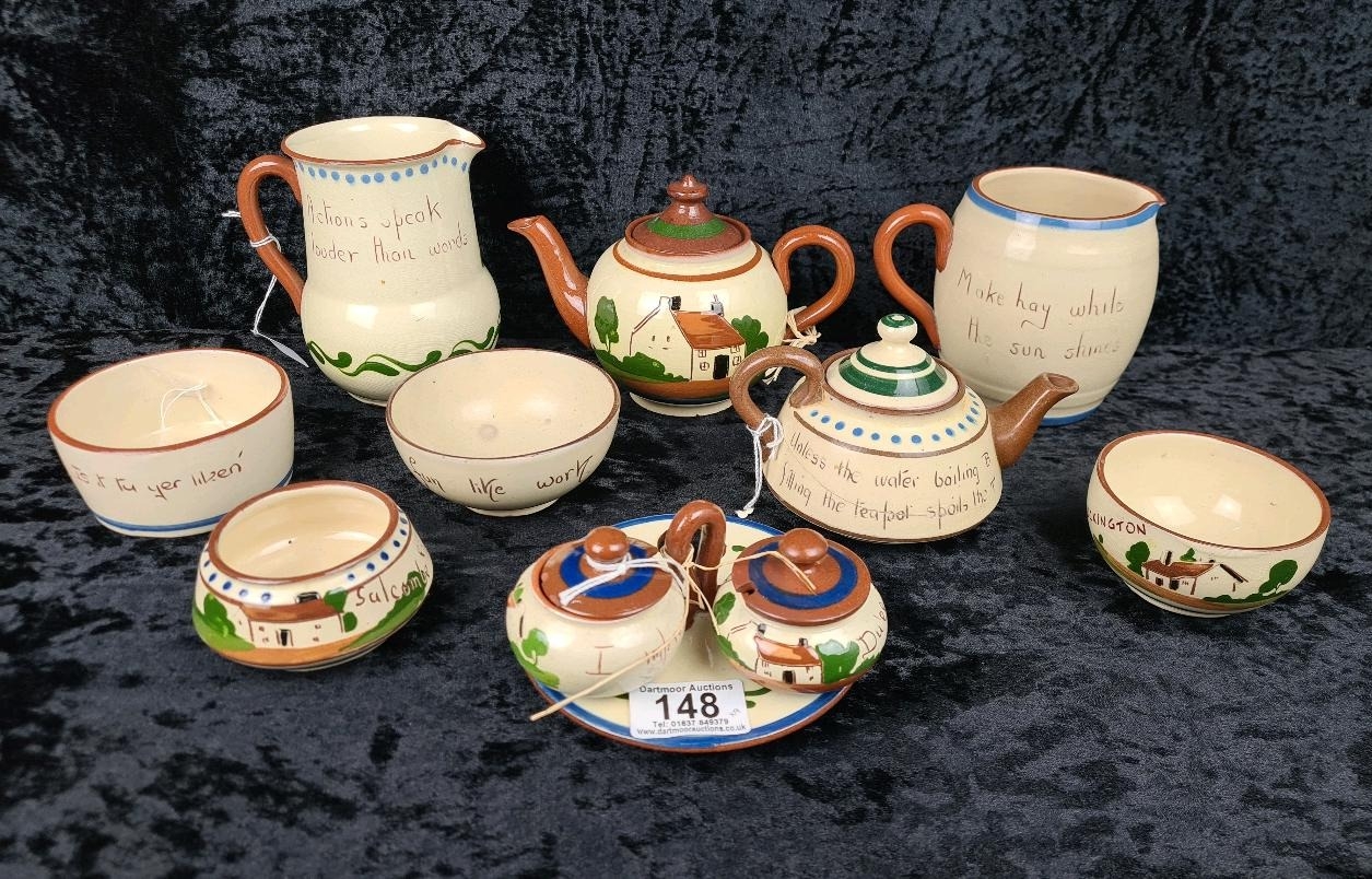 Collectible Devon Motto-ware including teapots, bowls and jugs - nine pieces in all.
