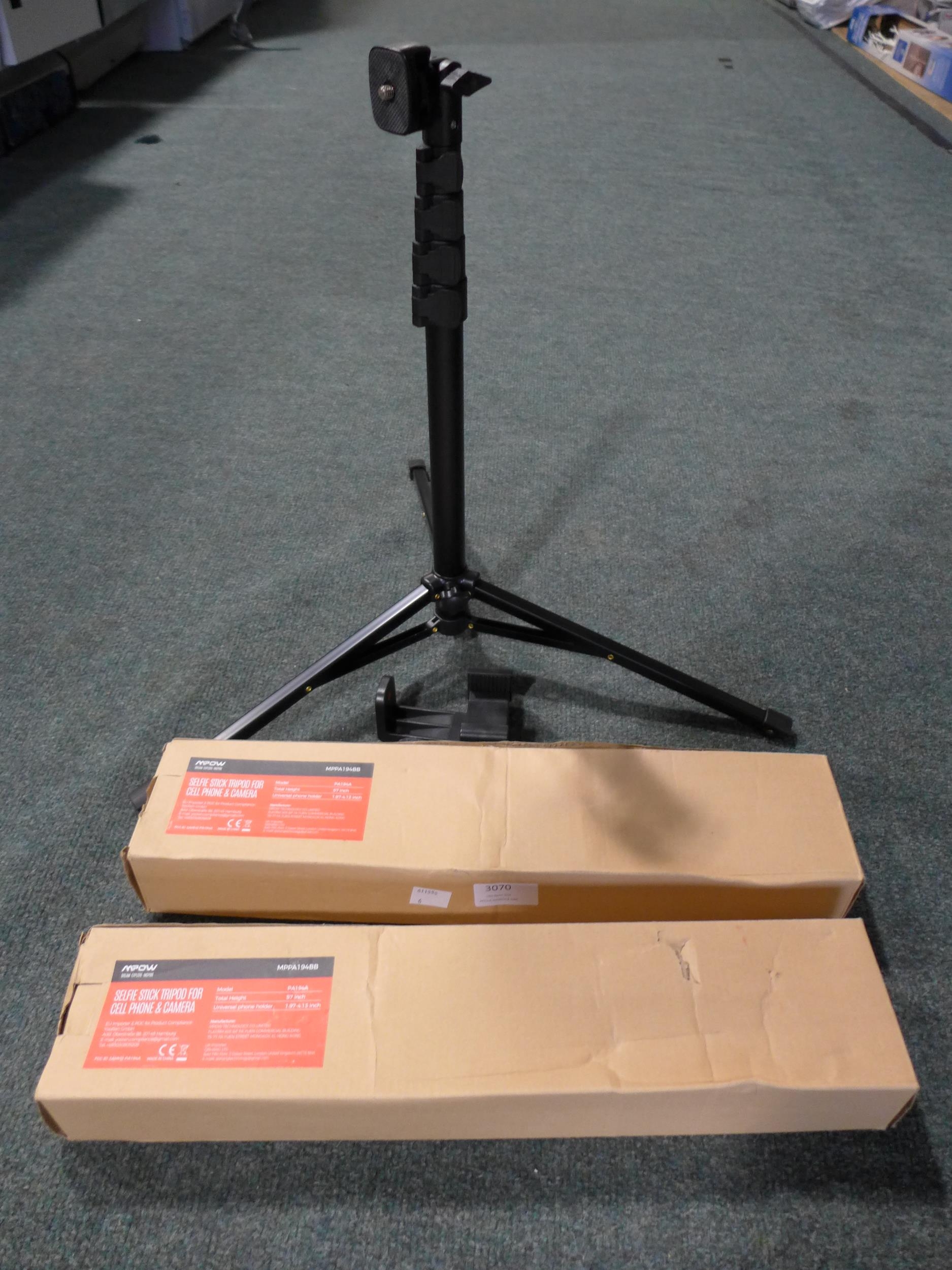 Two selfie stick tripods for phone and camera
