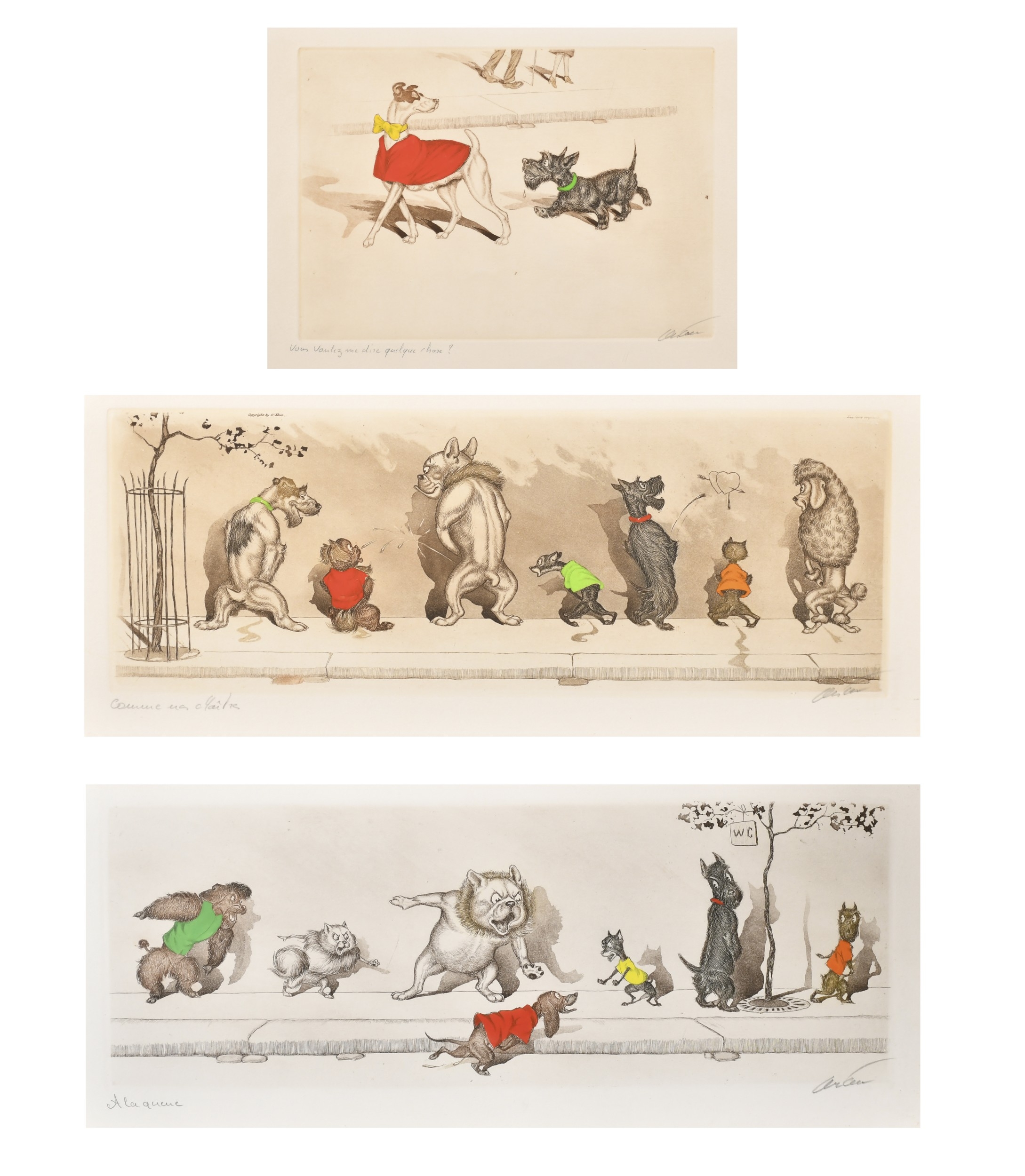 Boris O'Klein (1893-1985) French. "Vous voulez me dire quelque chose?", Etching, Signed and inscribed in pencil, 8.25" x 12" (20.9 x 30.5cm) and two others by the same hand (3)