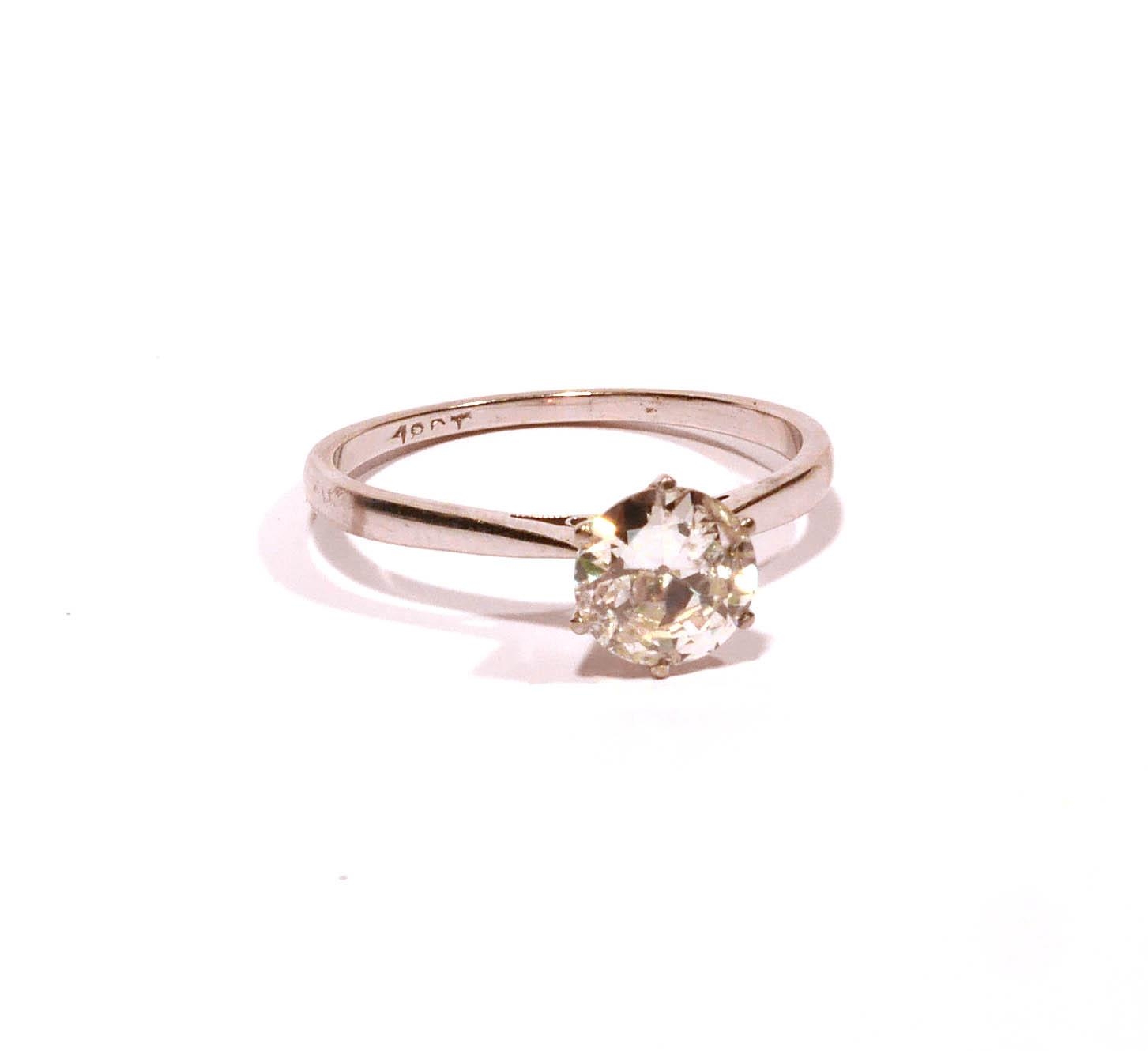A VINTAGE 18CT WHITE GOLD AND DIAMOND SOLITAIRE RING
