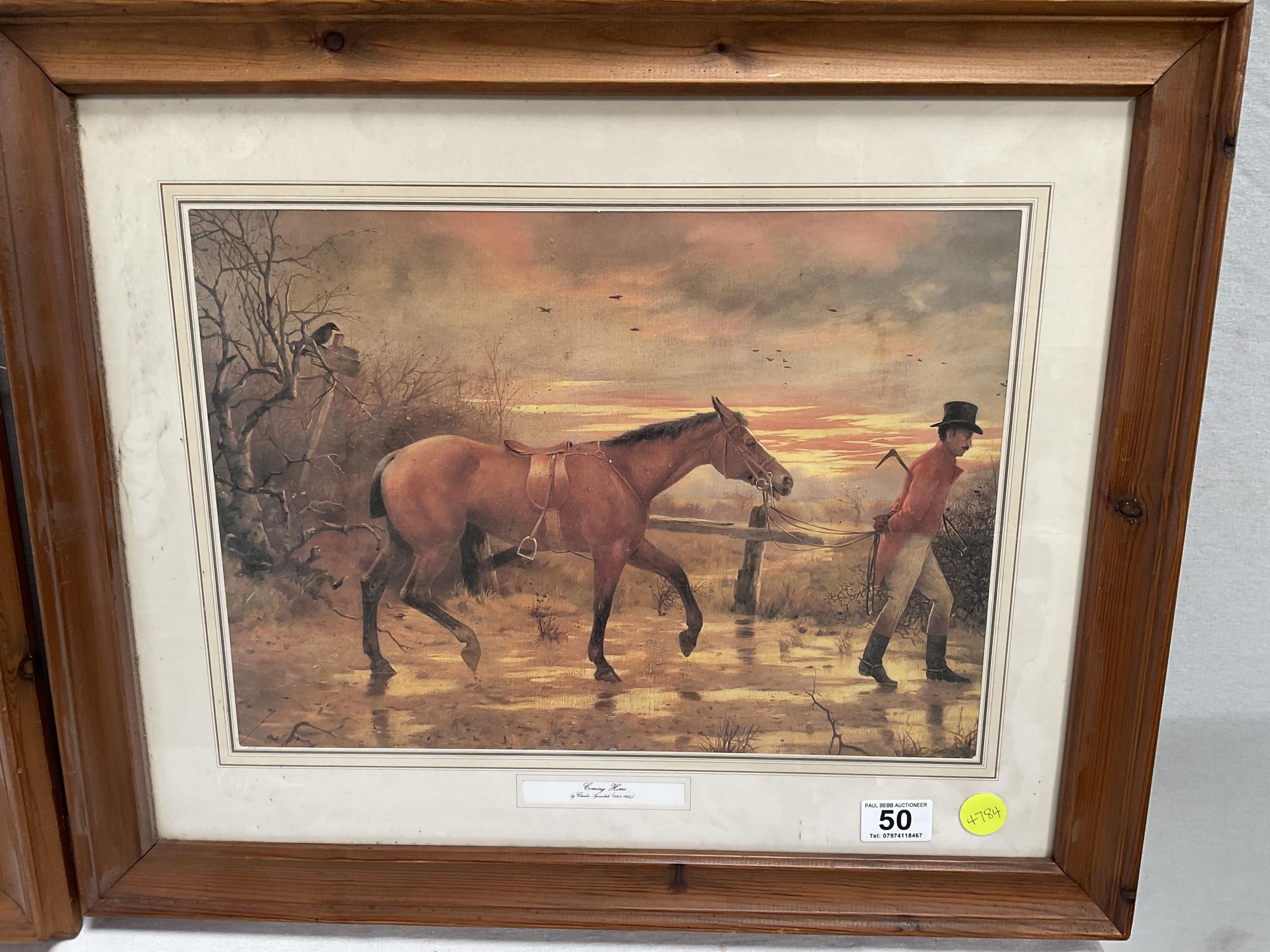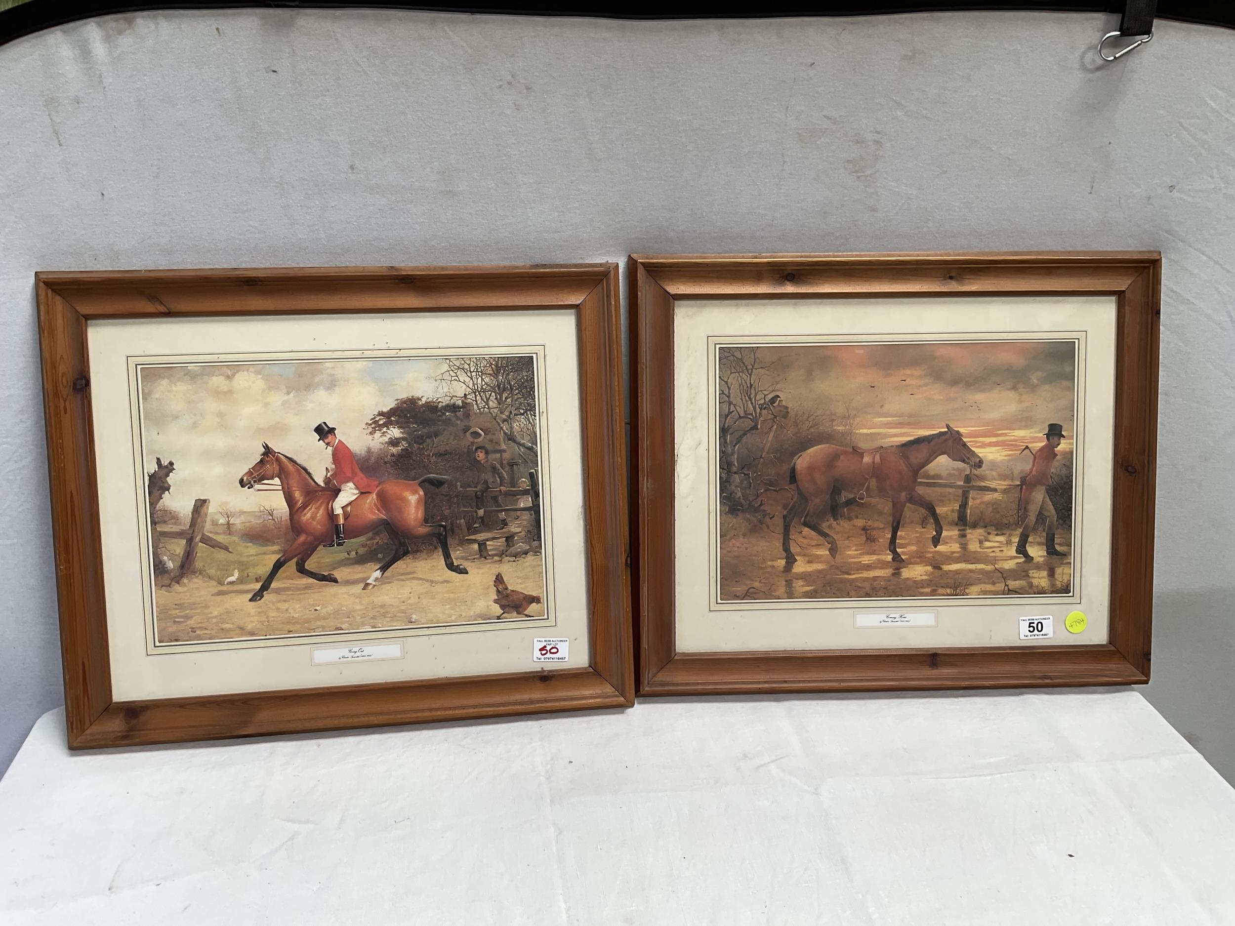PAIR OF MODERN PINE FRAMED HUNTING SCENE PRINTS 19" X 23"