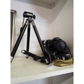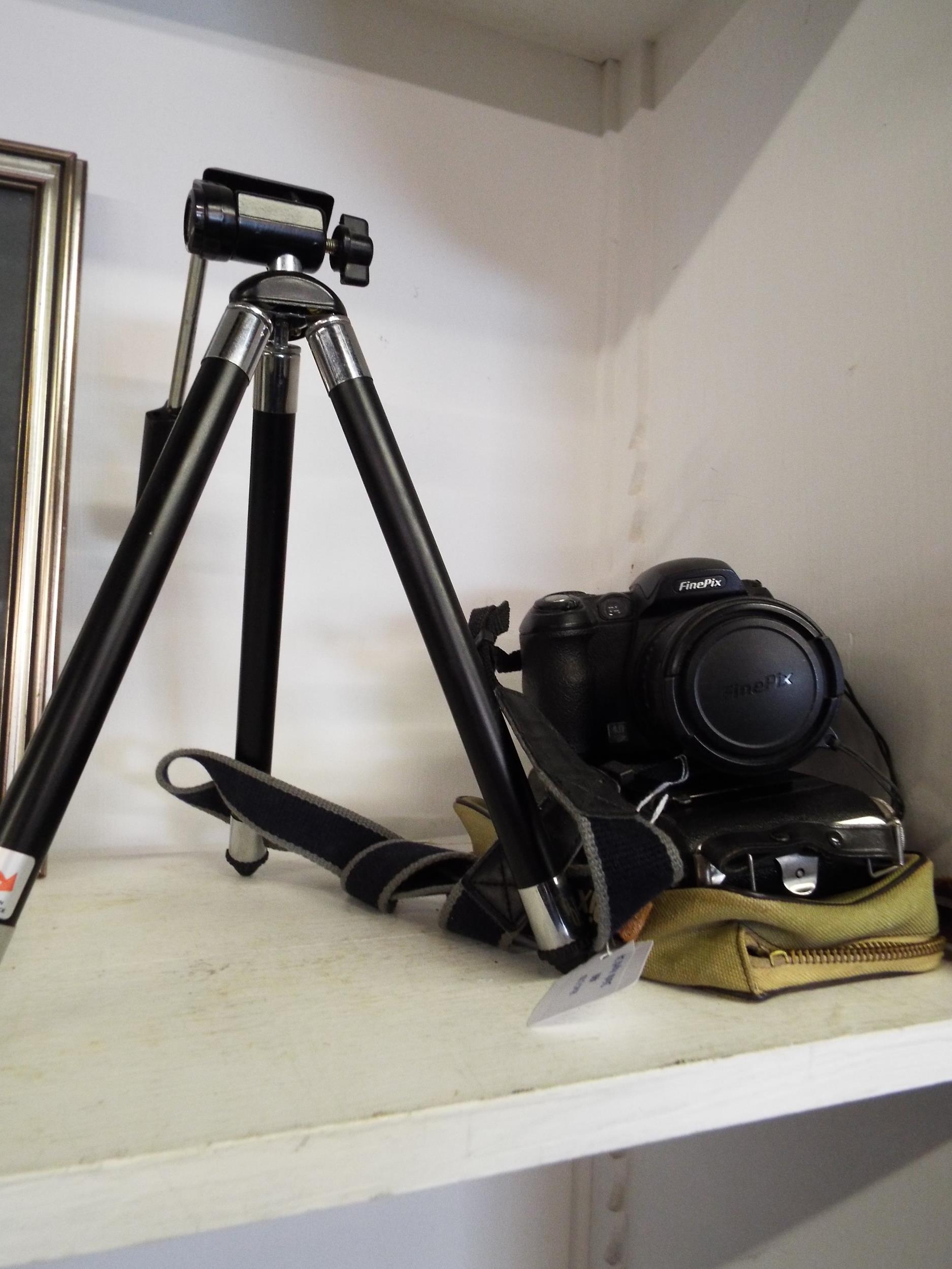 A Fujifilm Fine Pix camera with tripod together with another