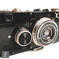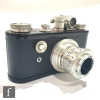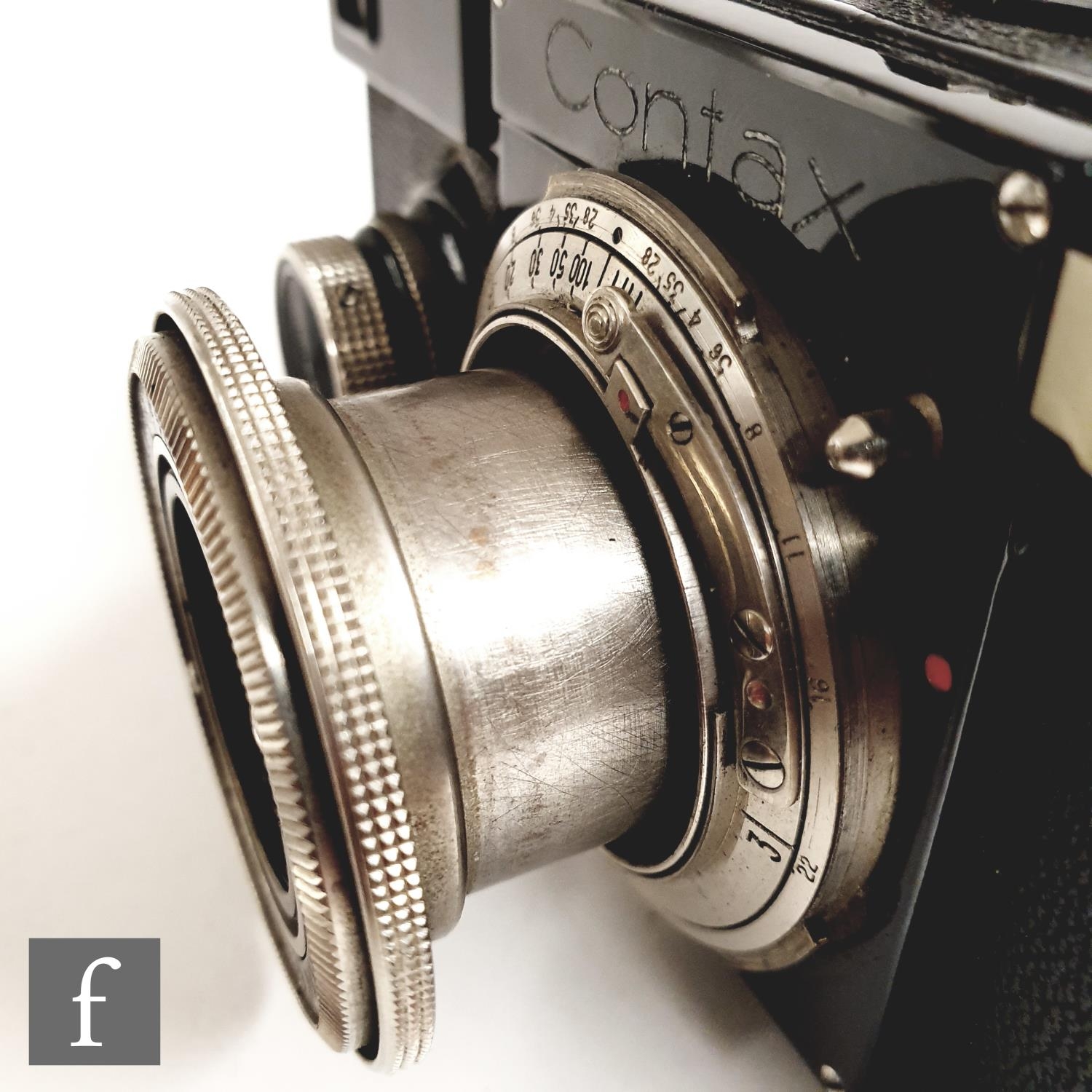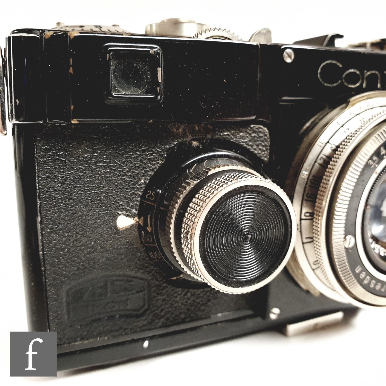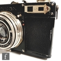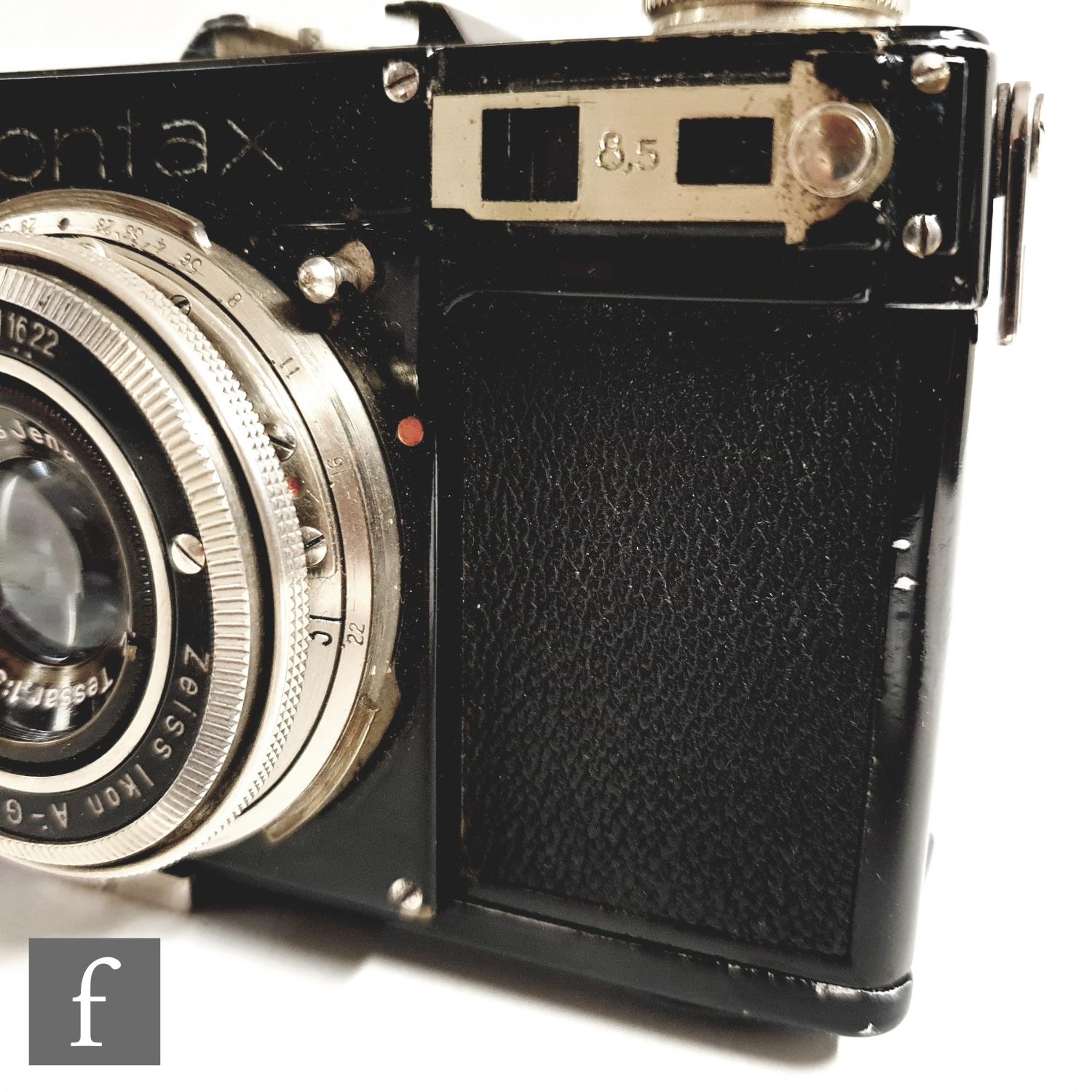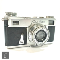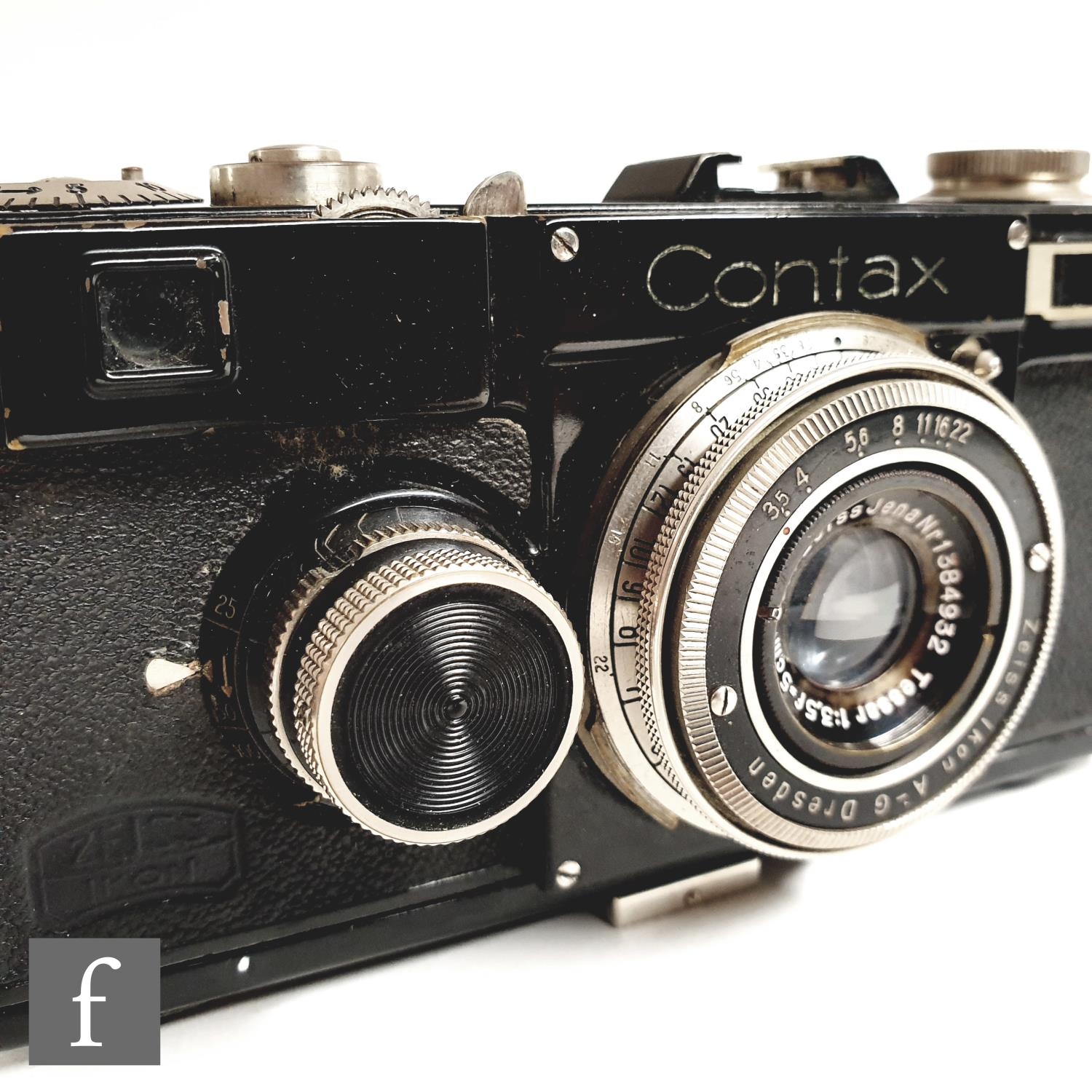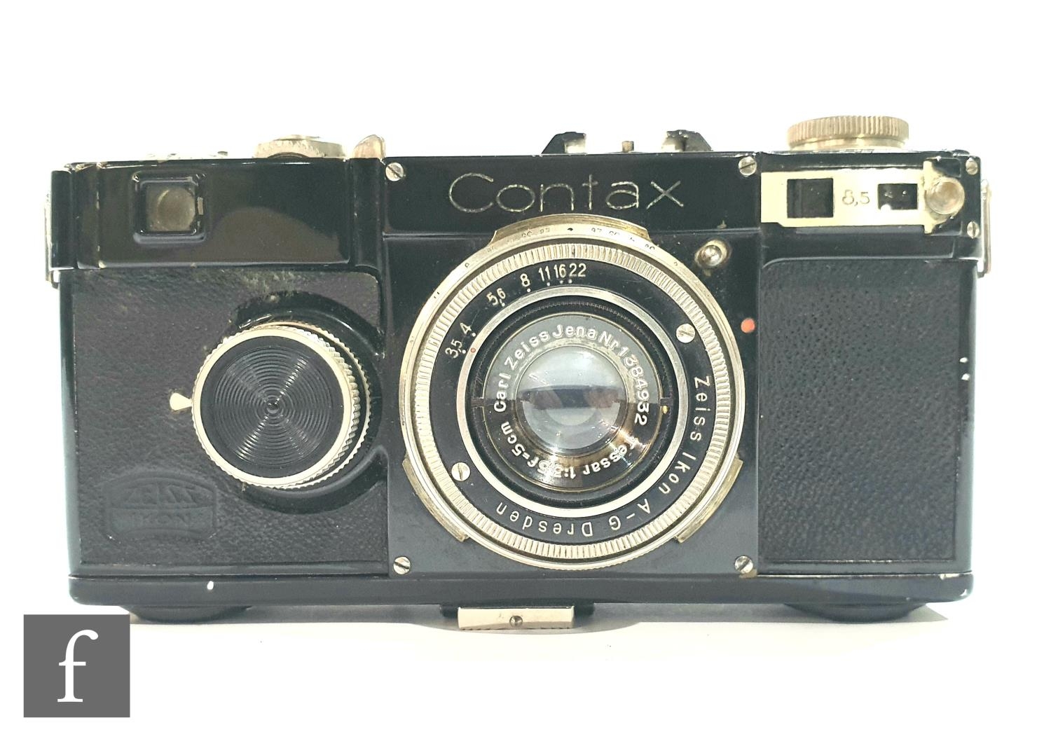 A Zeiss Ikon Contax I, 35mm rangefinder camera, serial number Z25643, with a Carl Zeiss 1:3, 5cm lens, serial number 1384932, black casing, with original tan leather case.