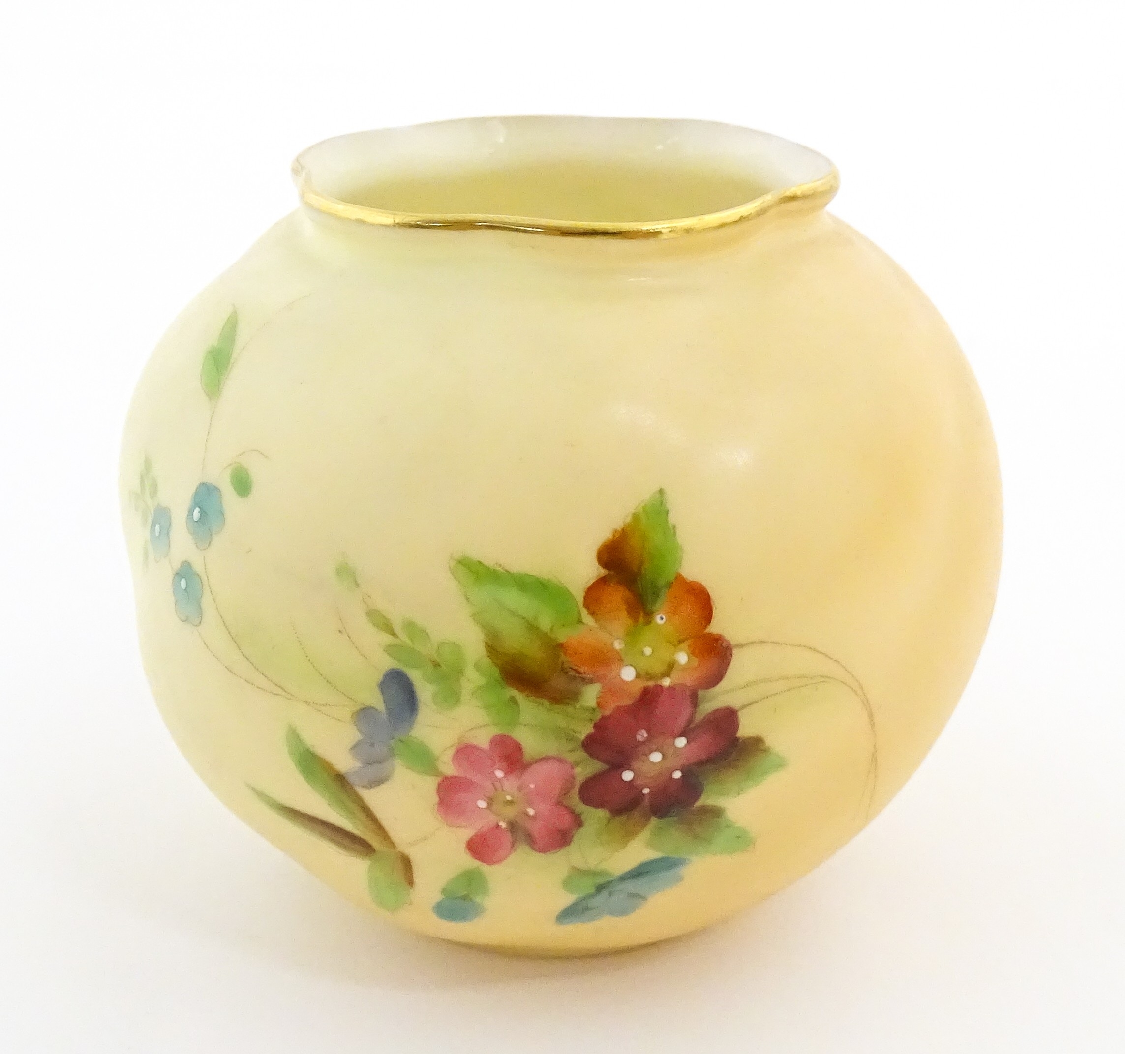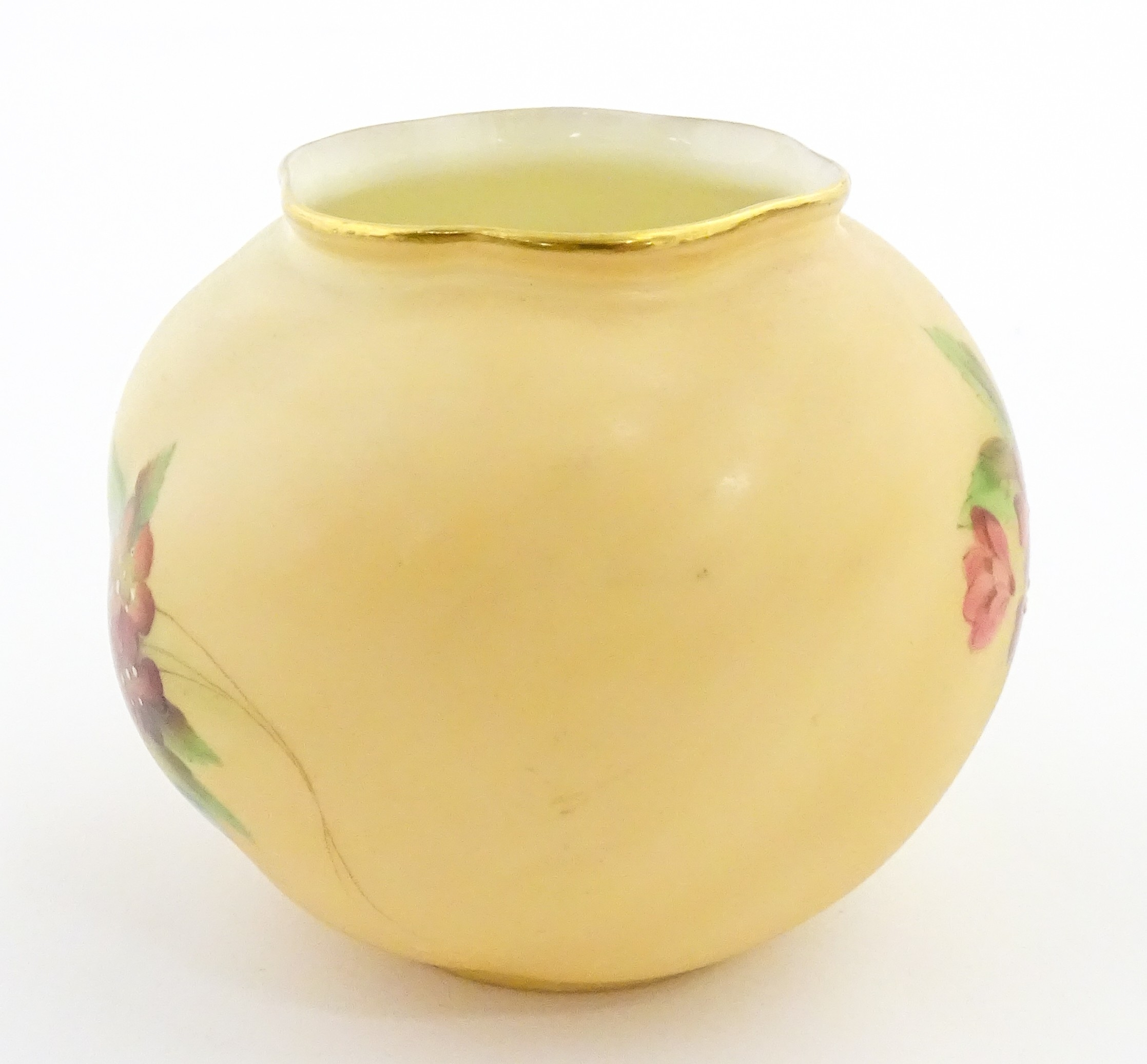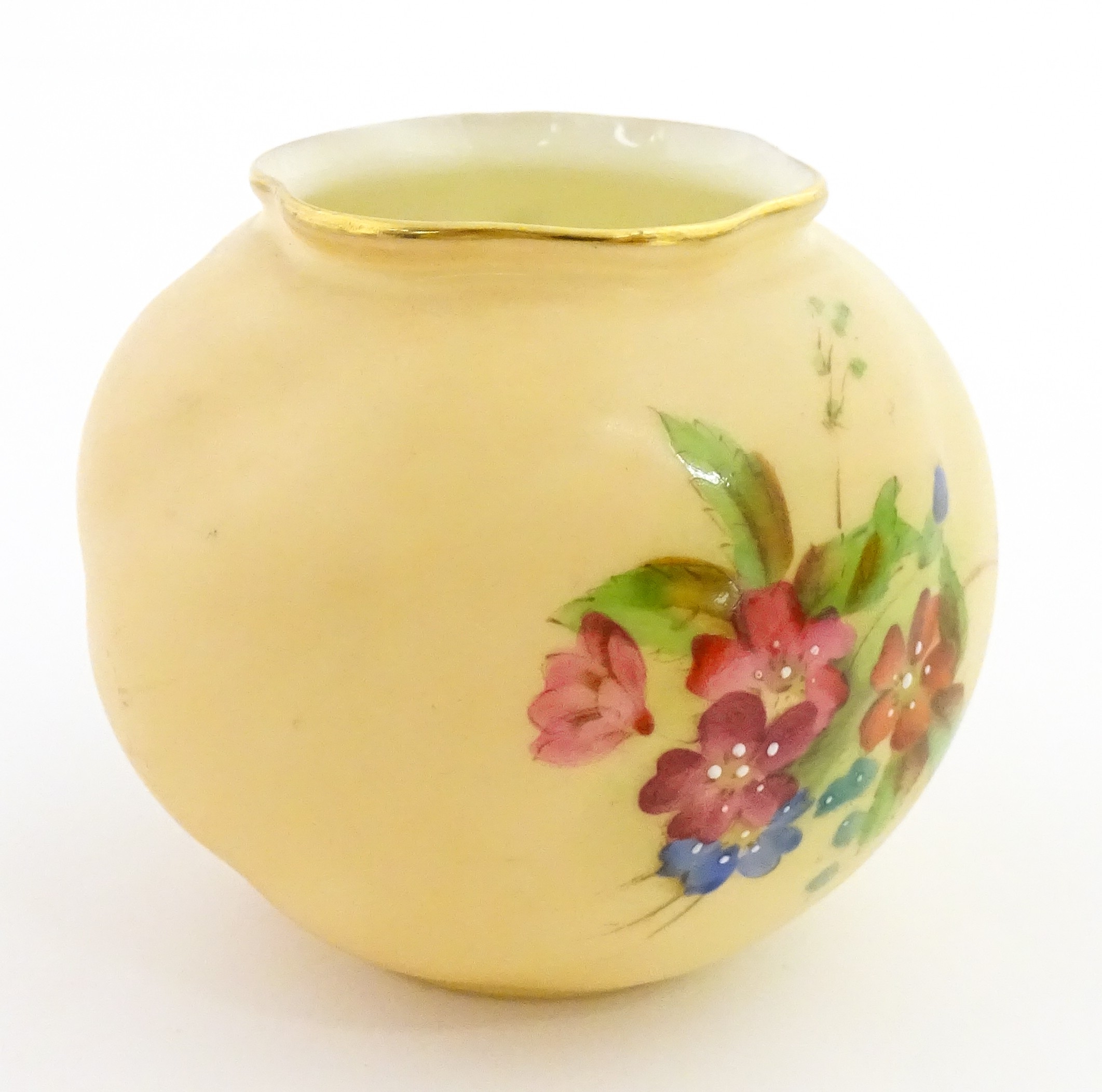 A small Royal Worcester blush ivory vase of globular form decorated with flowers. Marked under G161. Approx. 2 3/4" high