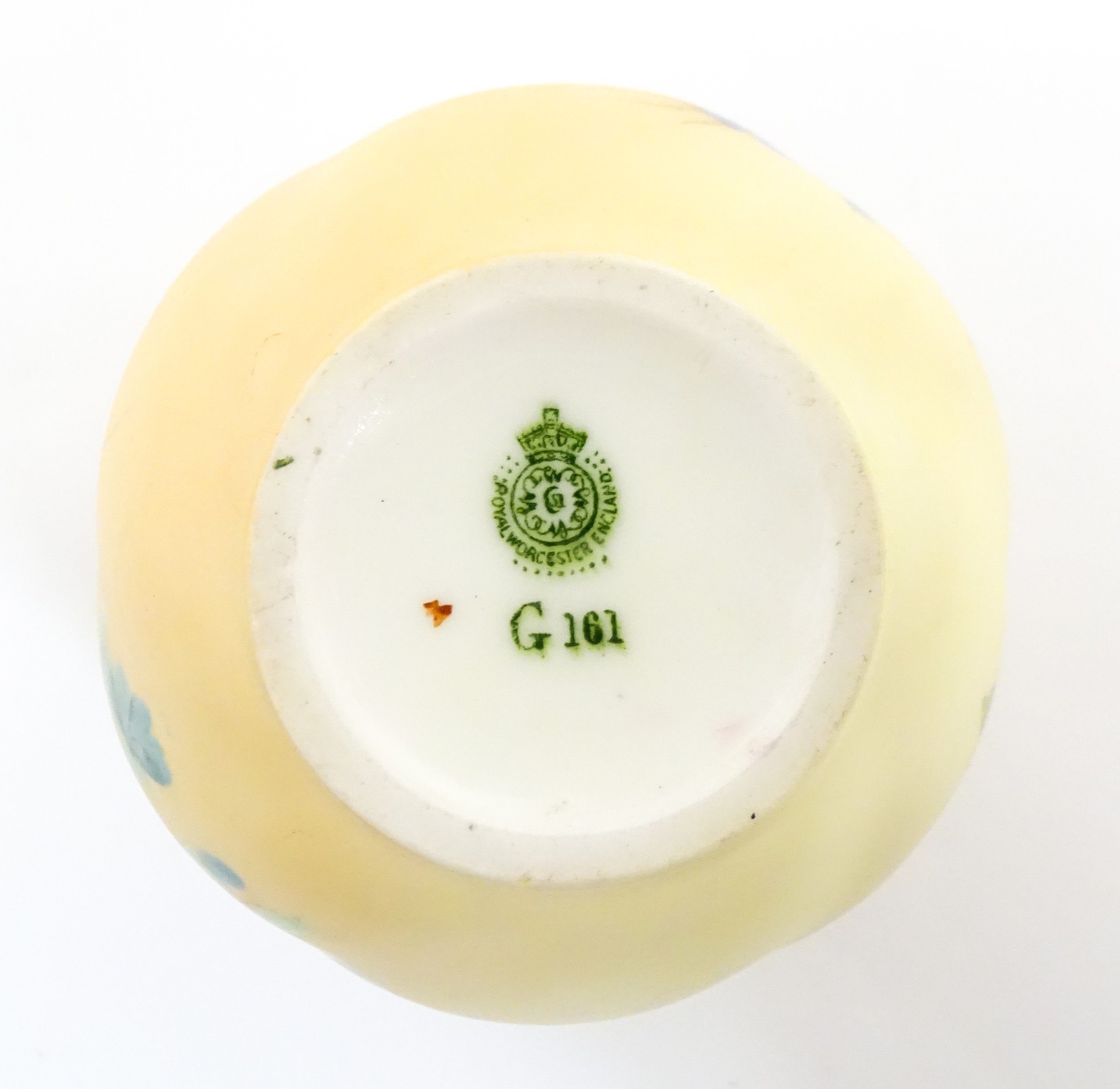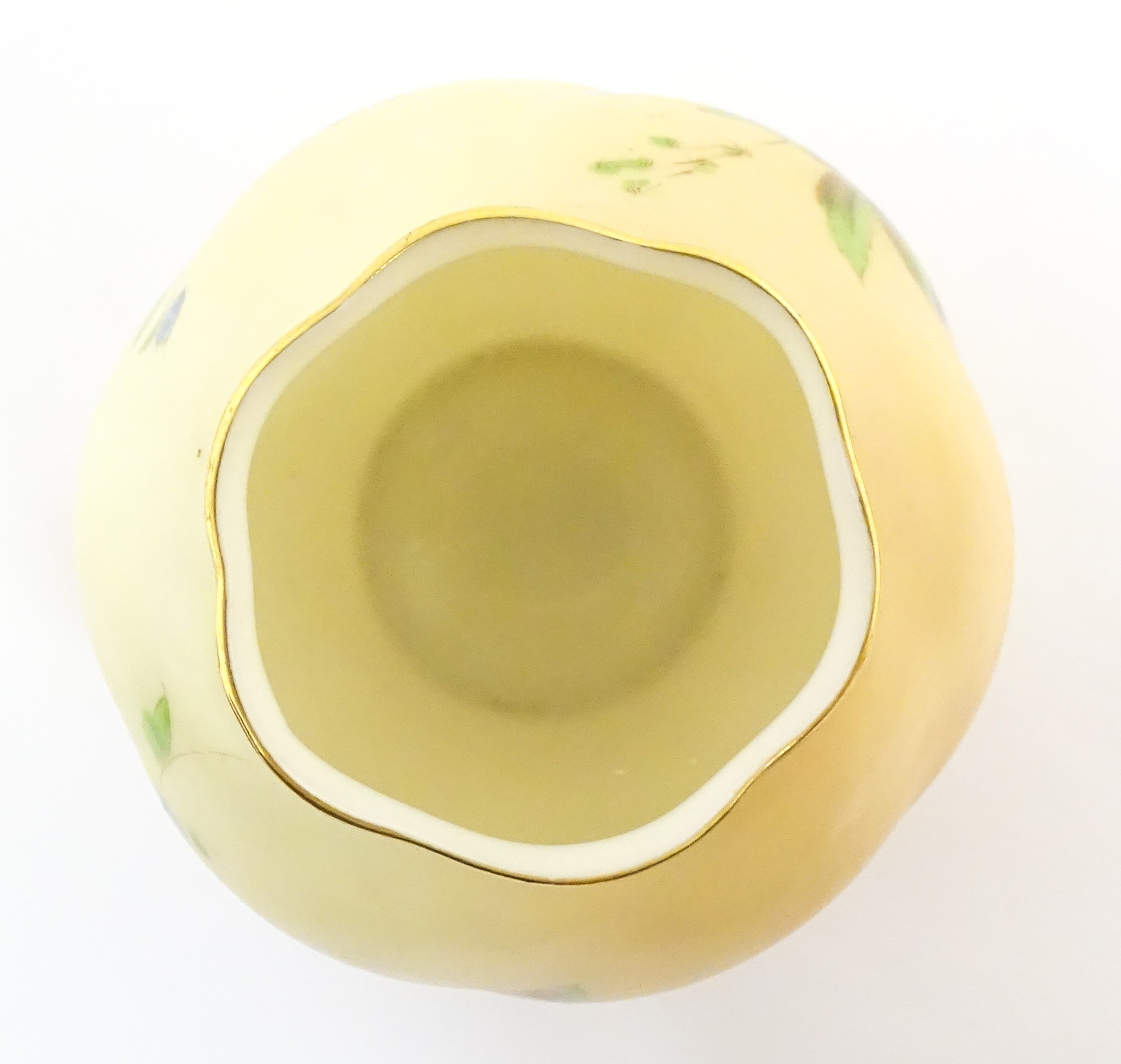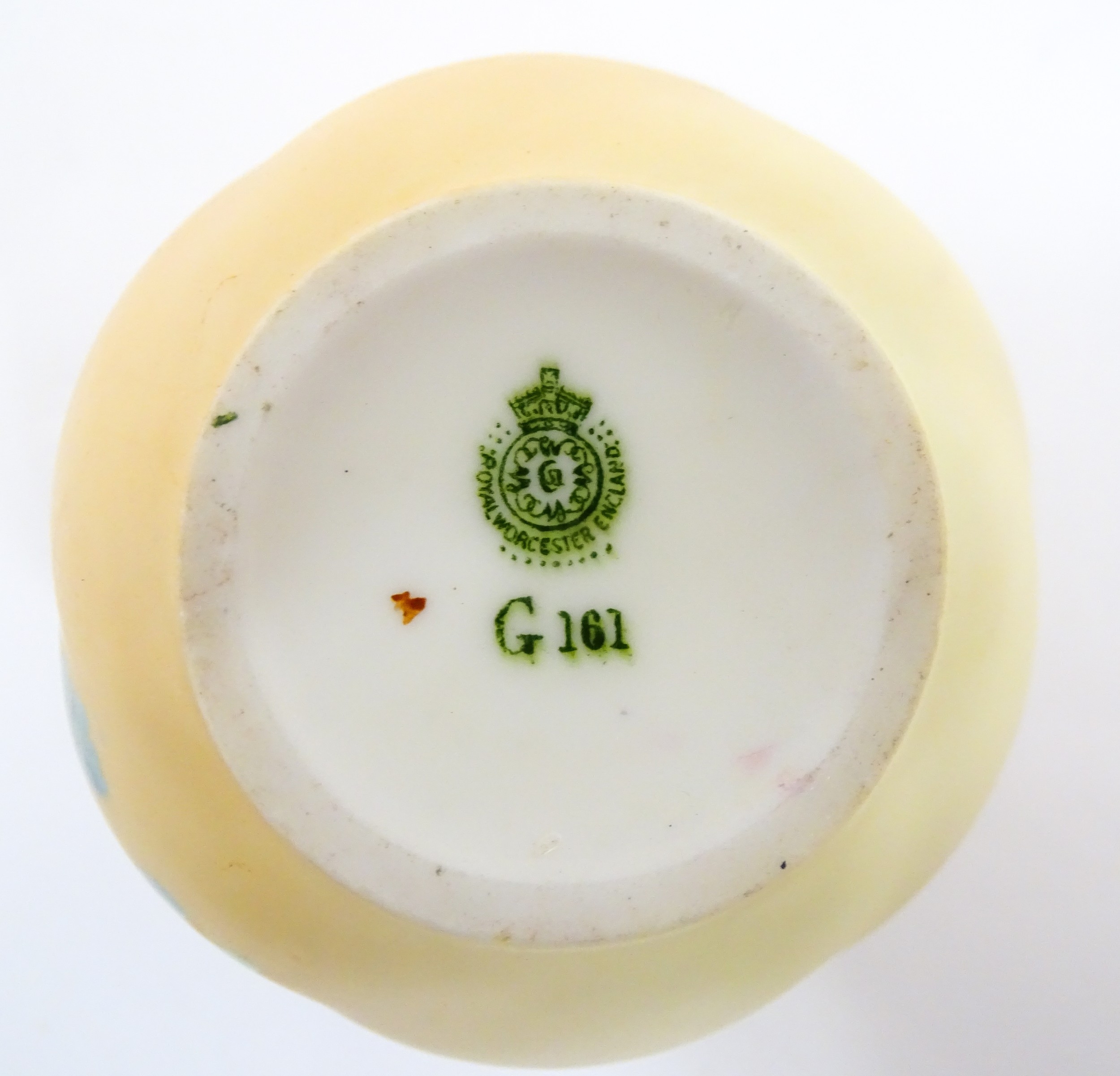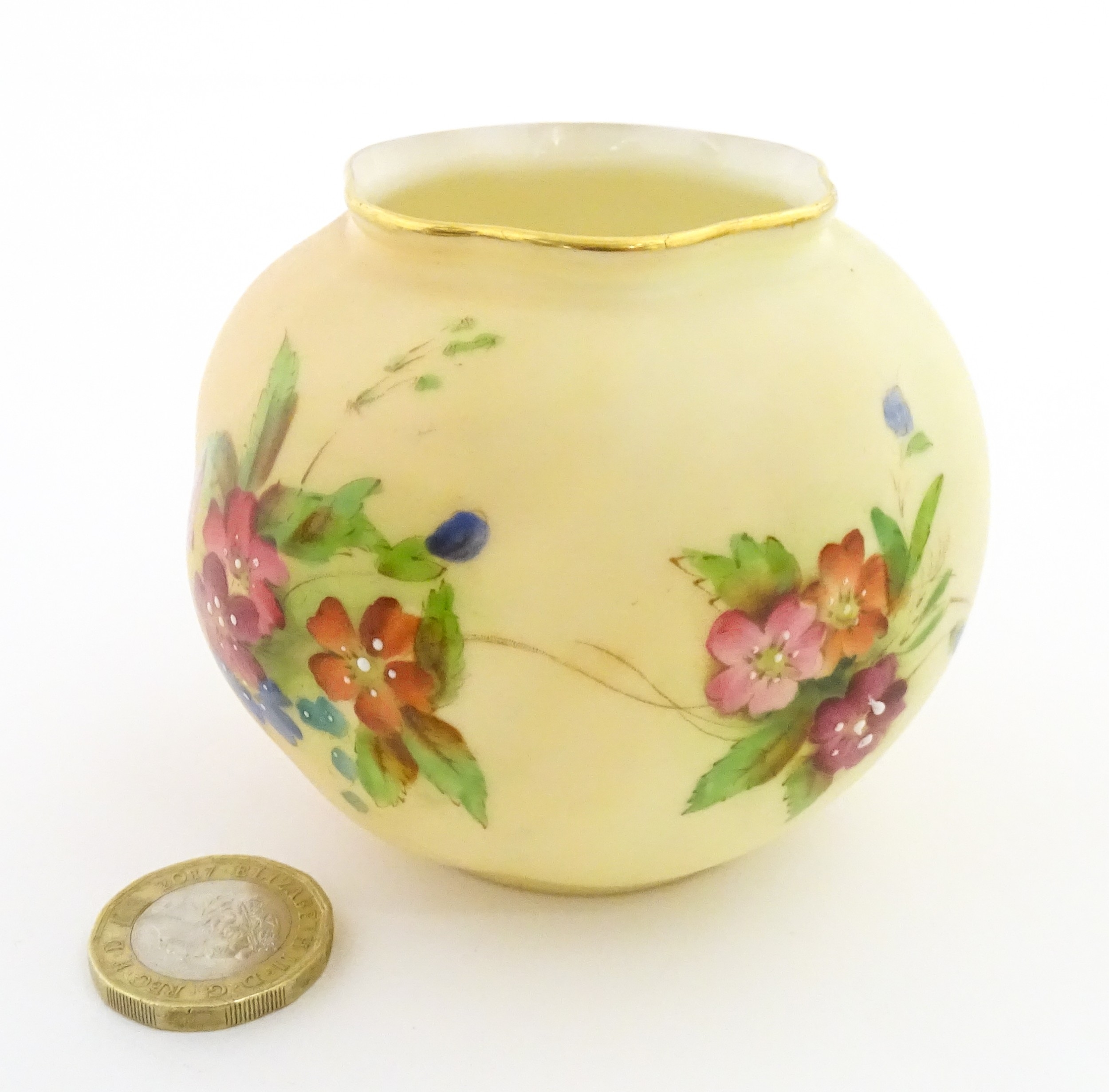 A small Royal Worcester blush ivory vase of globular form decorated with flowers. Marked under G161. Approx. 2 3/4" high