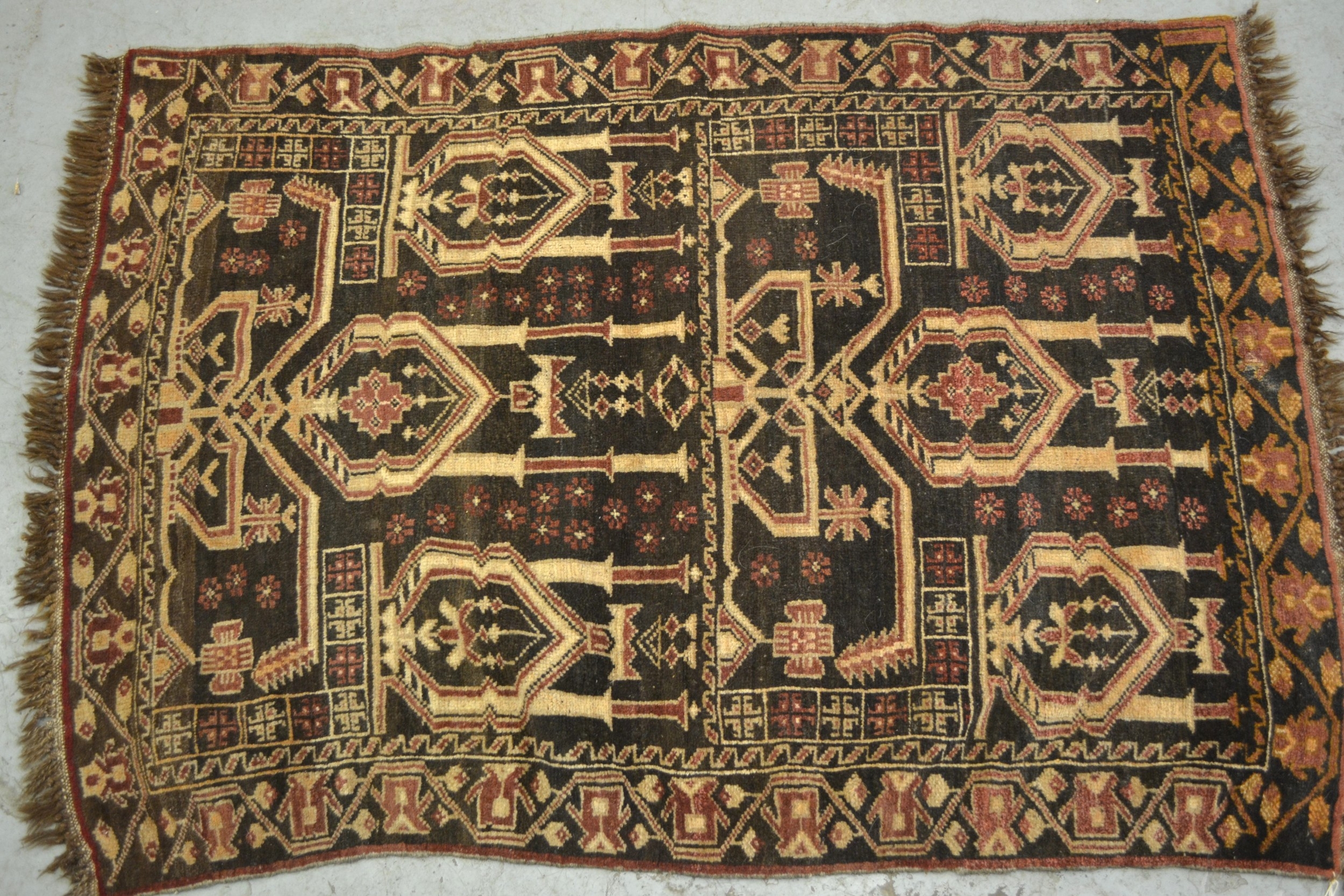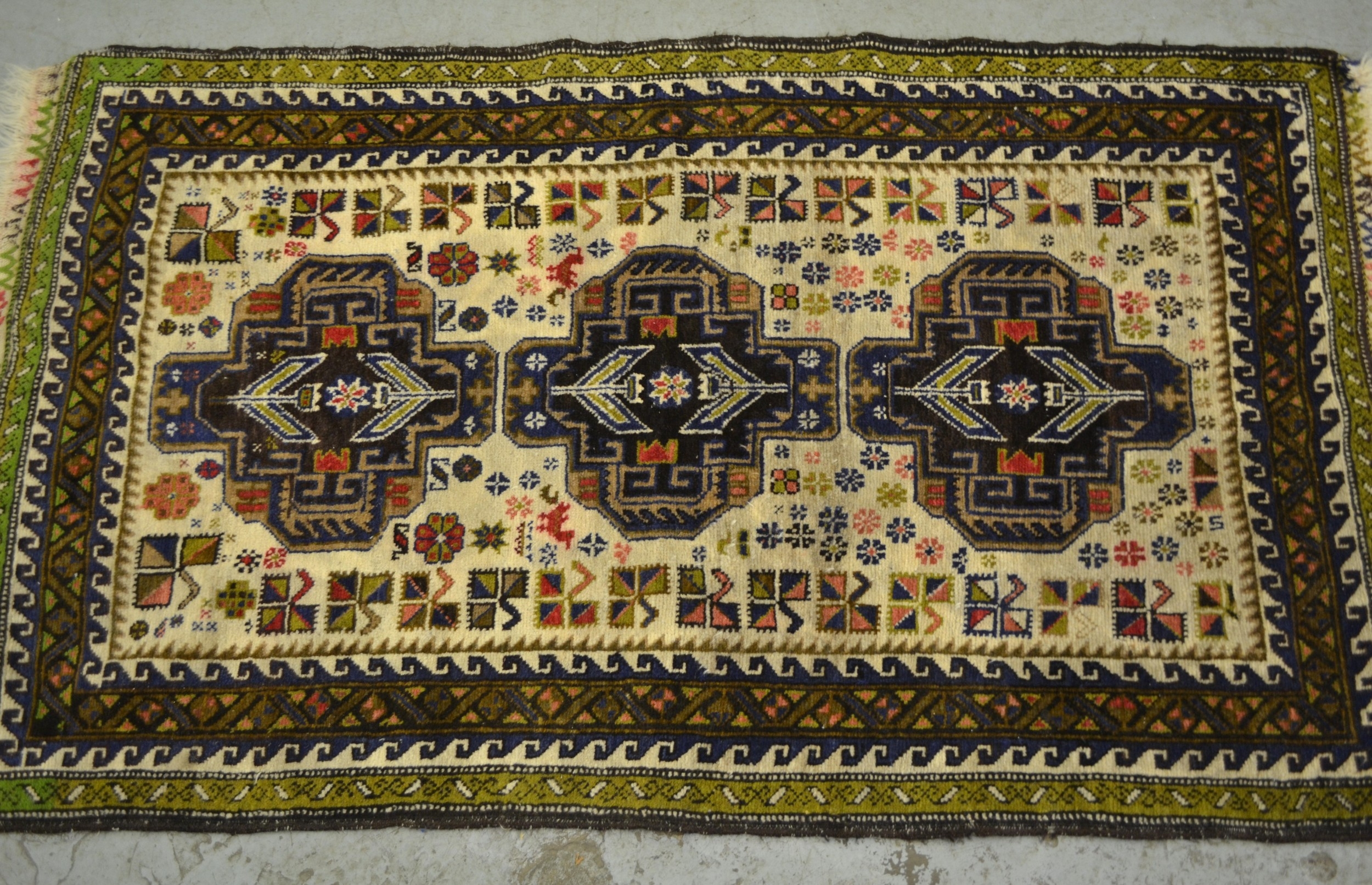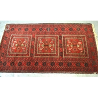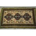 Small Belouch rug with a triple medallion design on a cream ground with border, 140 x 83cm approximately, together with another similar rug