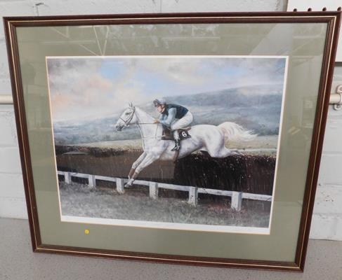 Limited edition print 582/2500 Desert Orchid on his way to winning Cheltenham Gold Cup 1979 Maxine Cox (frame 25x21" approx)