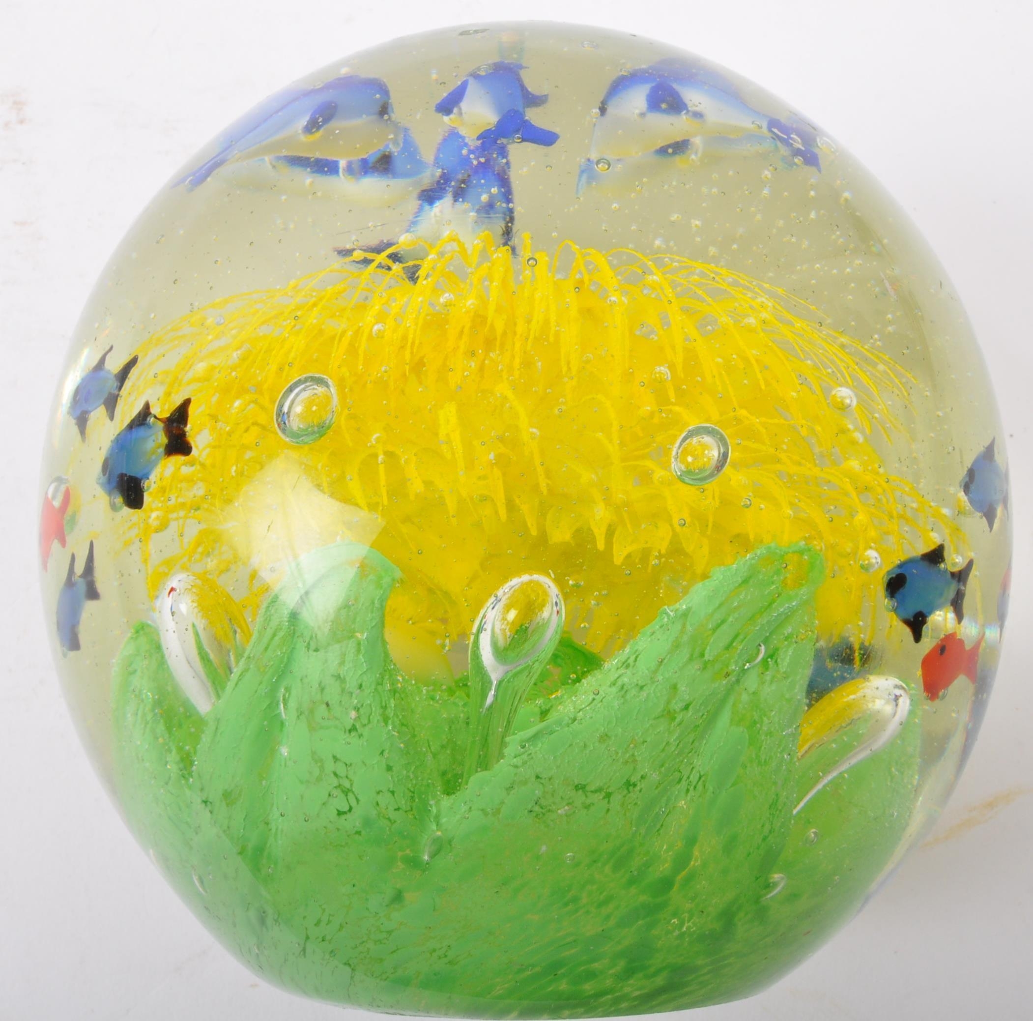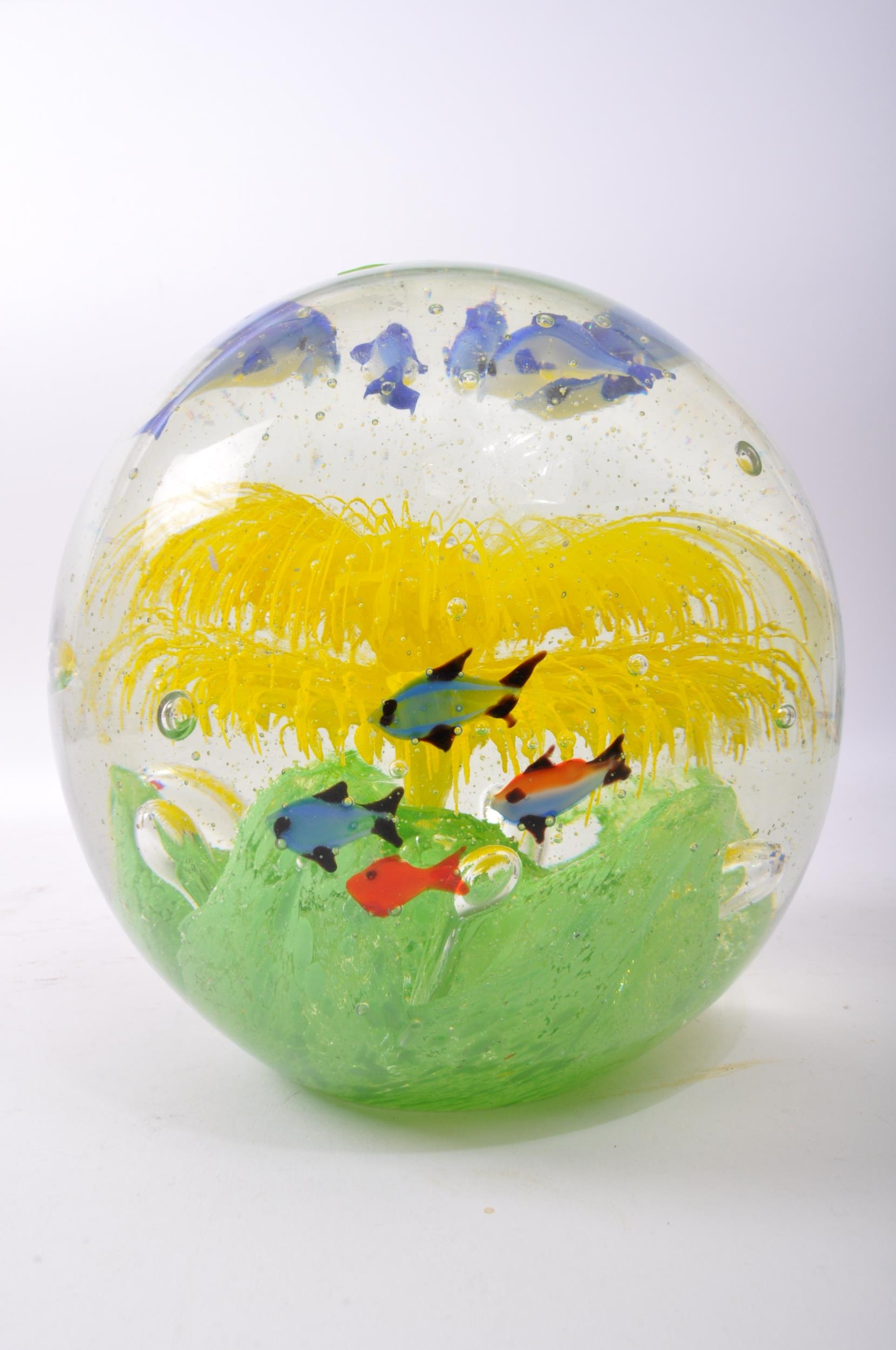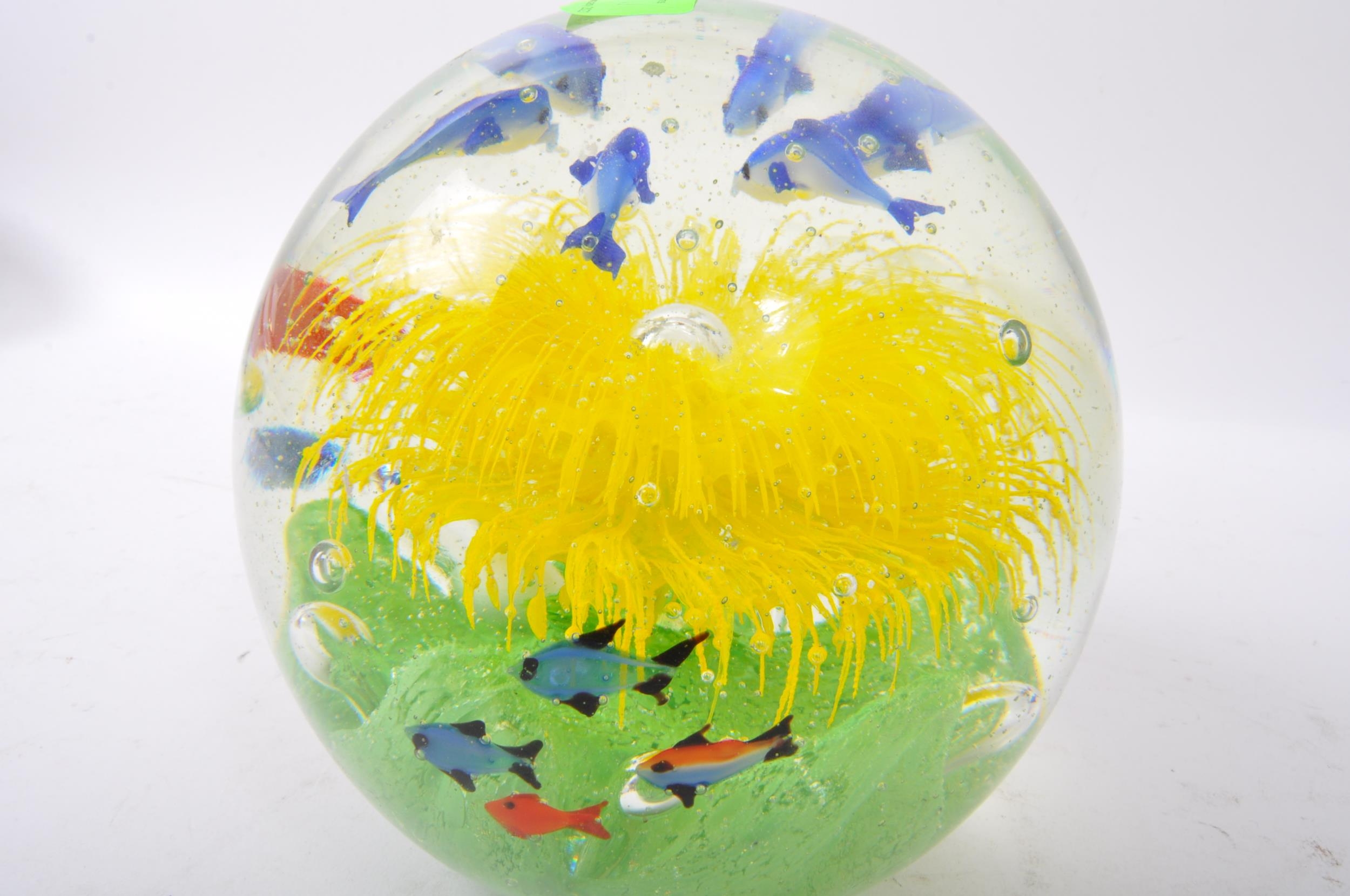 A very large 20th Century Murano glass paperweight dump. Bubble control with central sea flower, ring of dolphins and swimming fish.