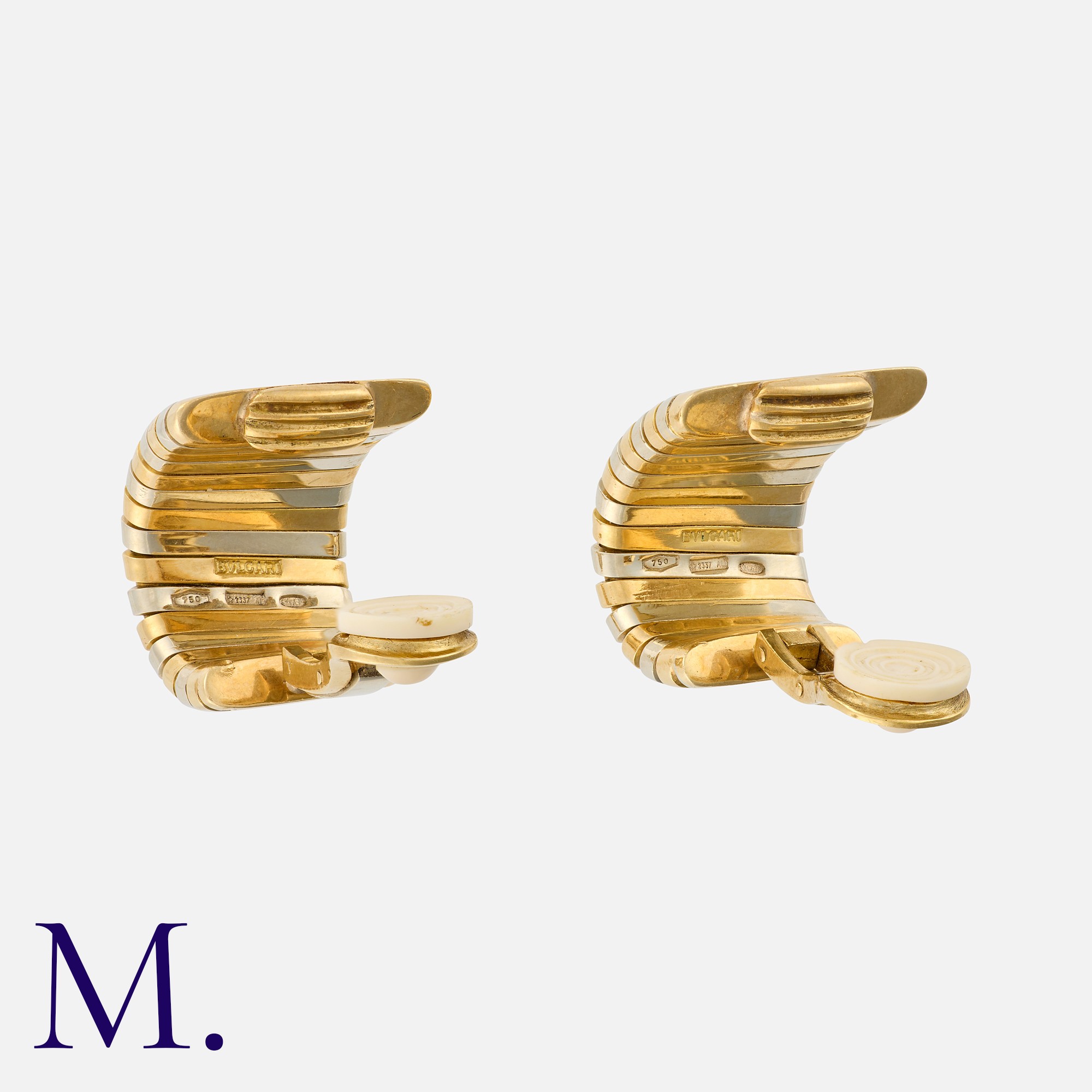 BULGARI, A Pair of Vintage Tubogas Hoop Earclips in 18 carat yellow and white gold, each of striped, fluted design. Signed Bulgari, Italian Marks, Marked 750 for 18 carat gold.