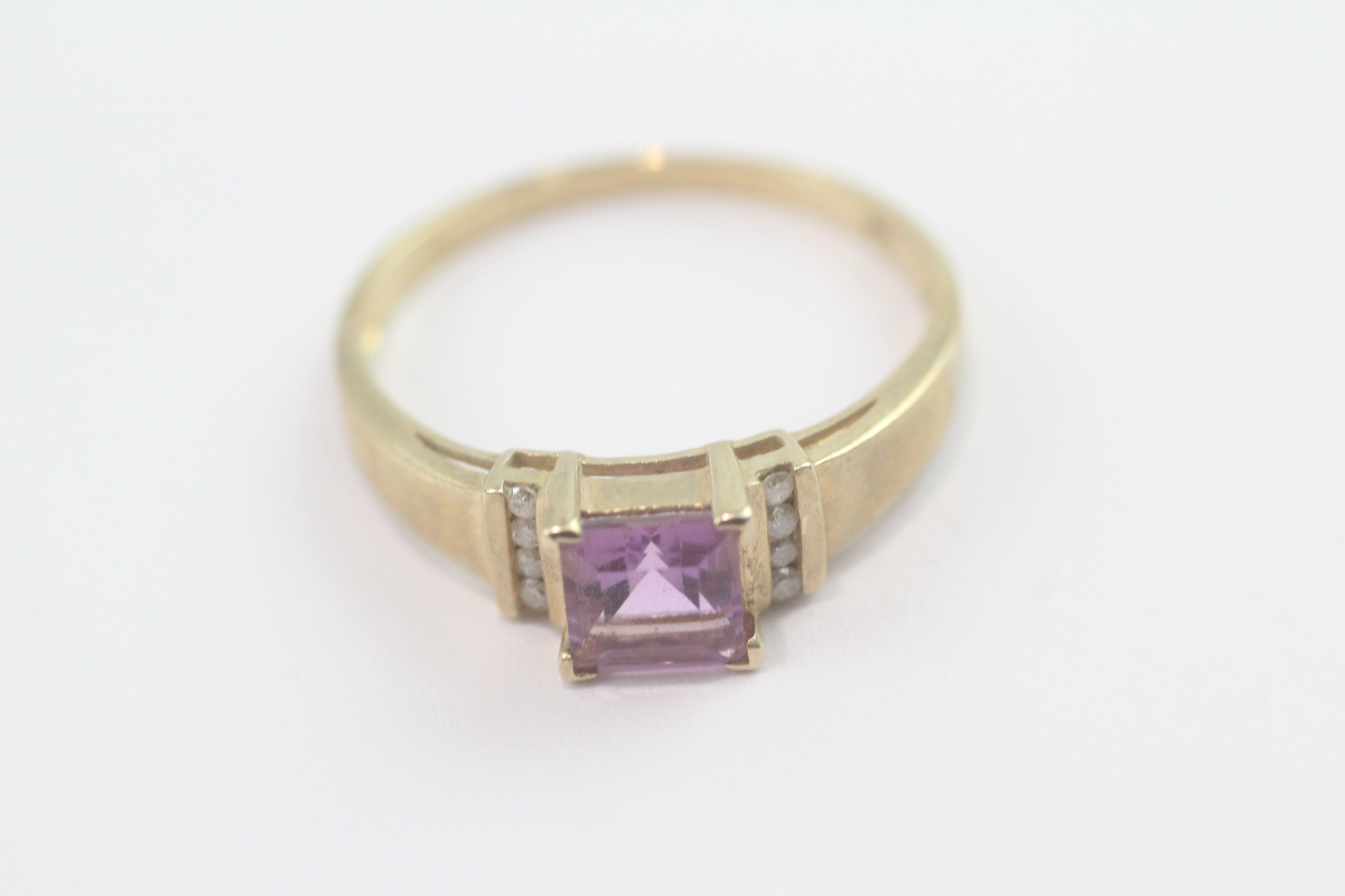 9ct gold amethyst diamond ring (2.7g) Size V