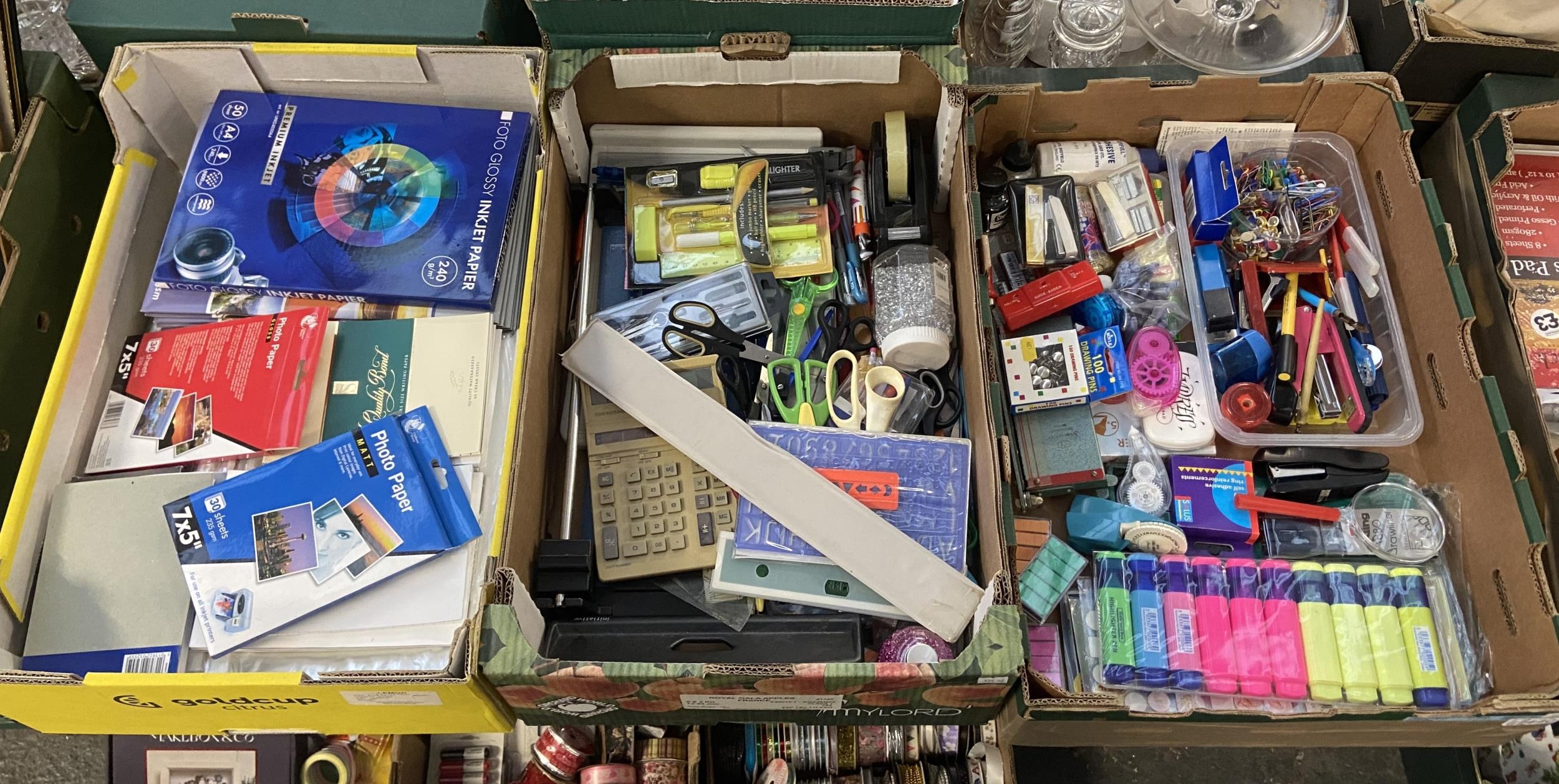 3 Boxes containing stationery supplies including photo paper, document wallets etc