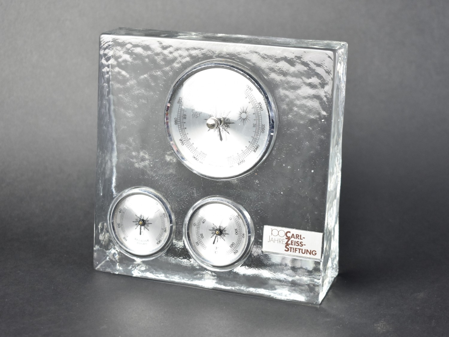 A Late 20th Century Glass Slab Barometer to Celebrate the Centenary of Carl Zeiss-Stiftung 100 Jahre (1889-1989)