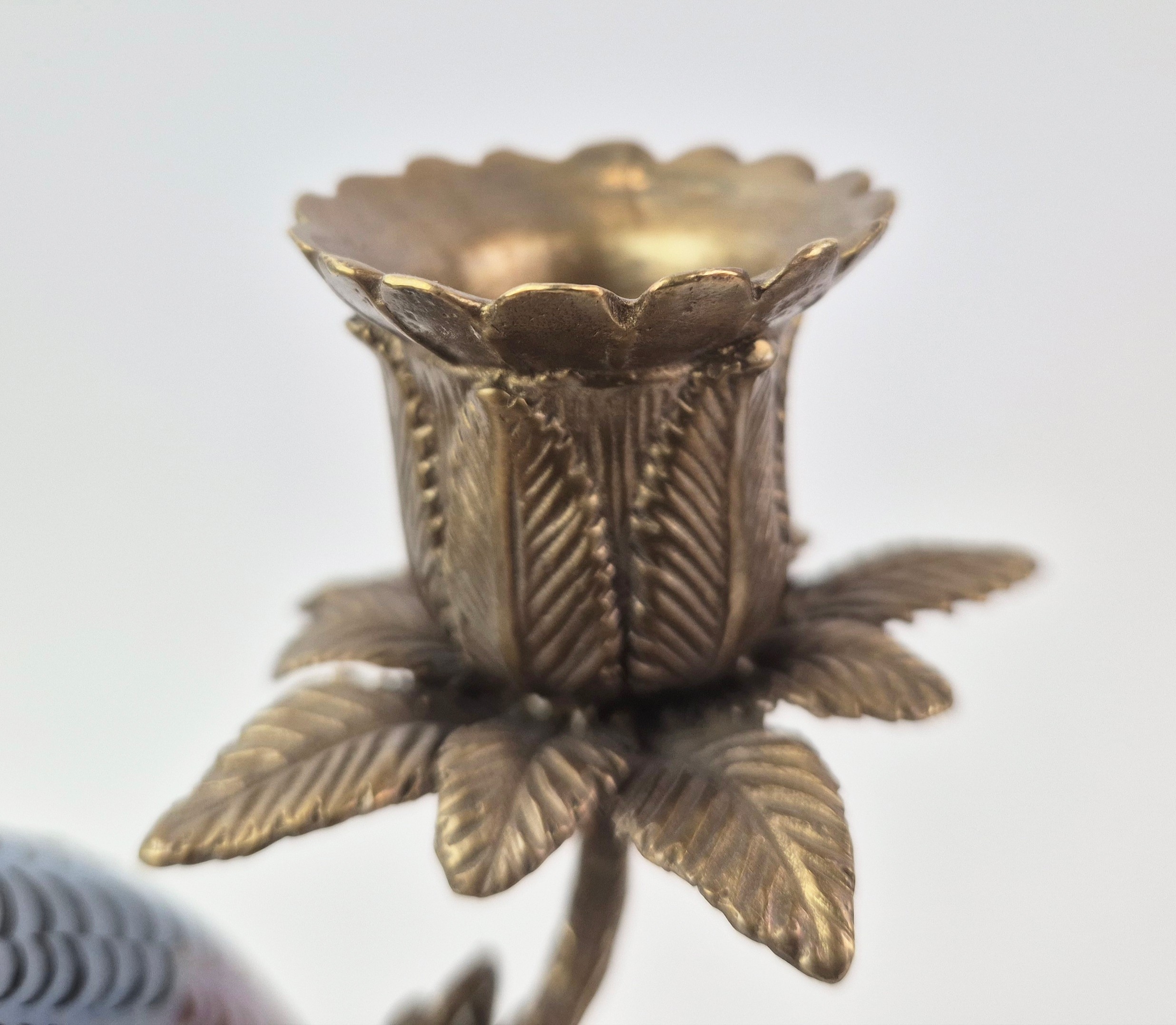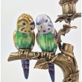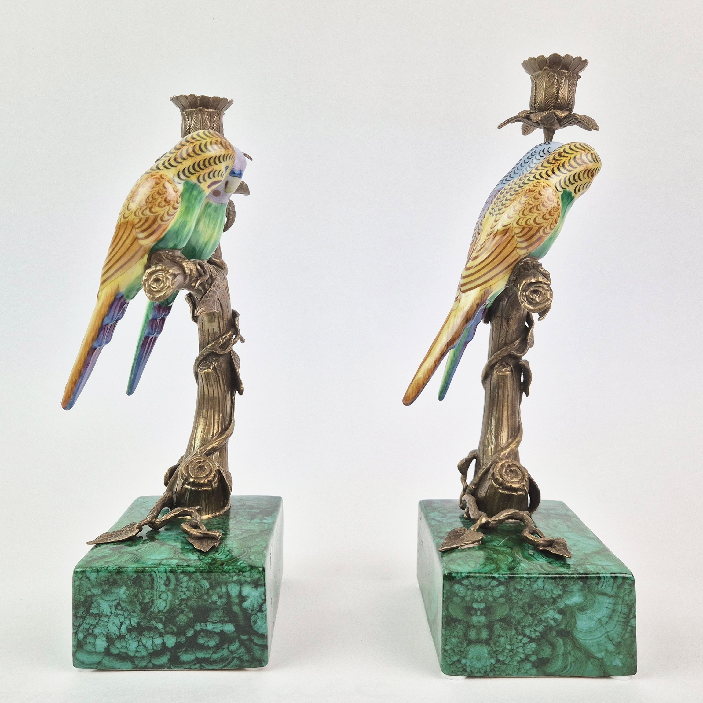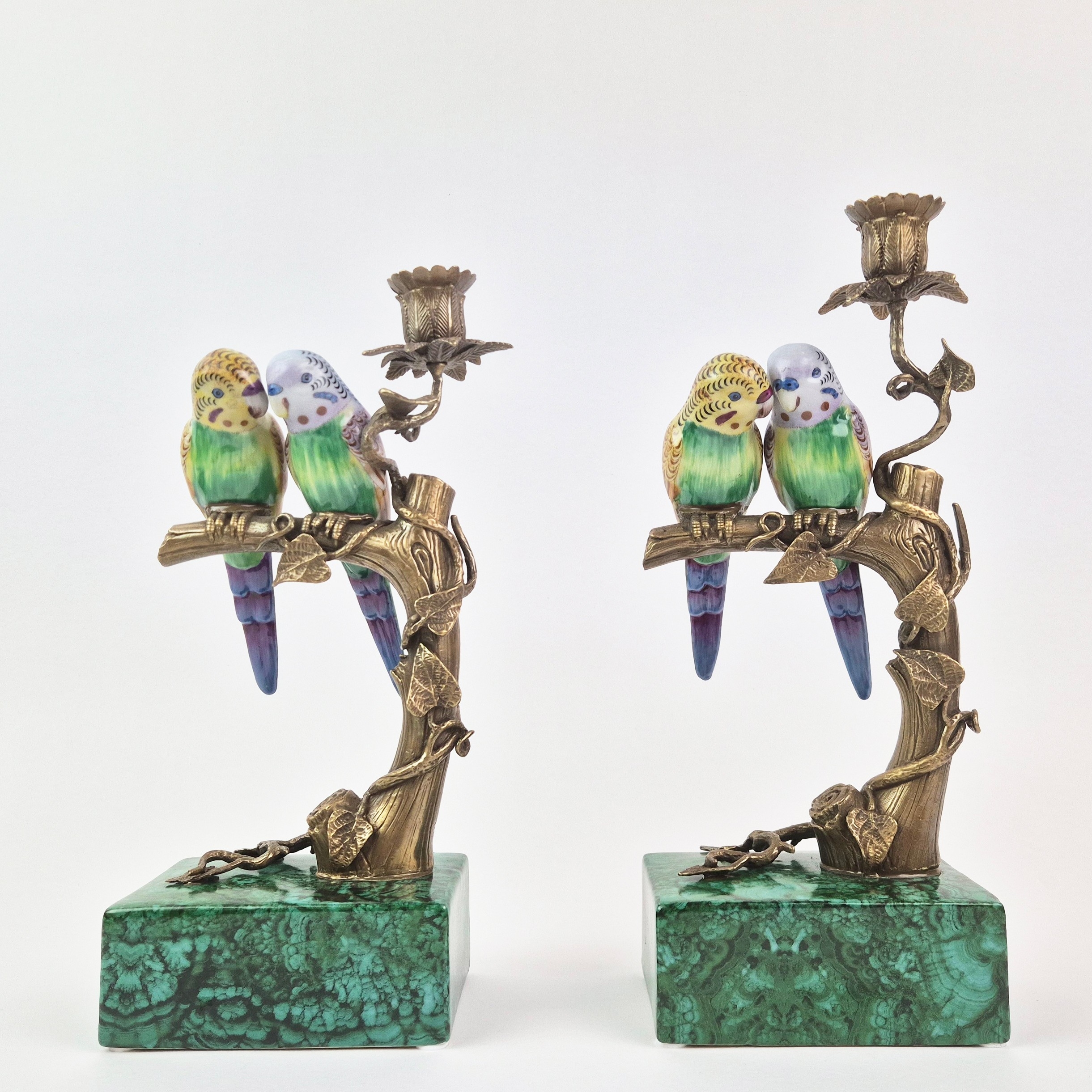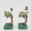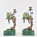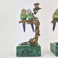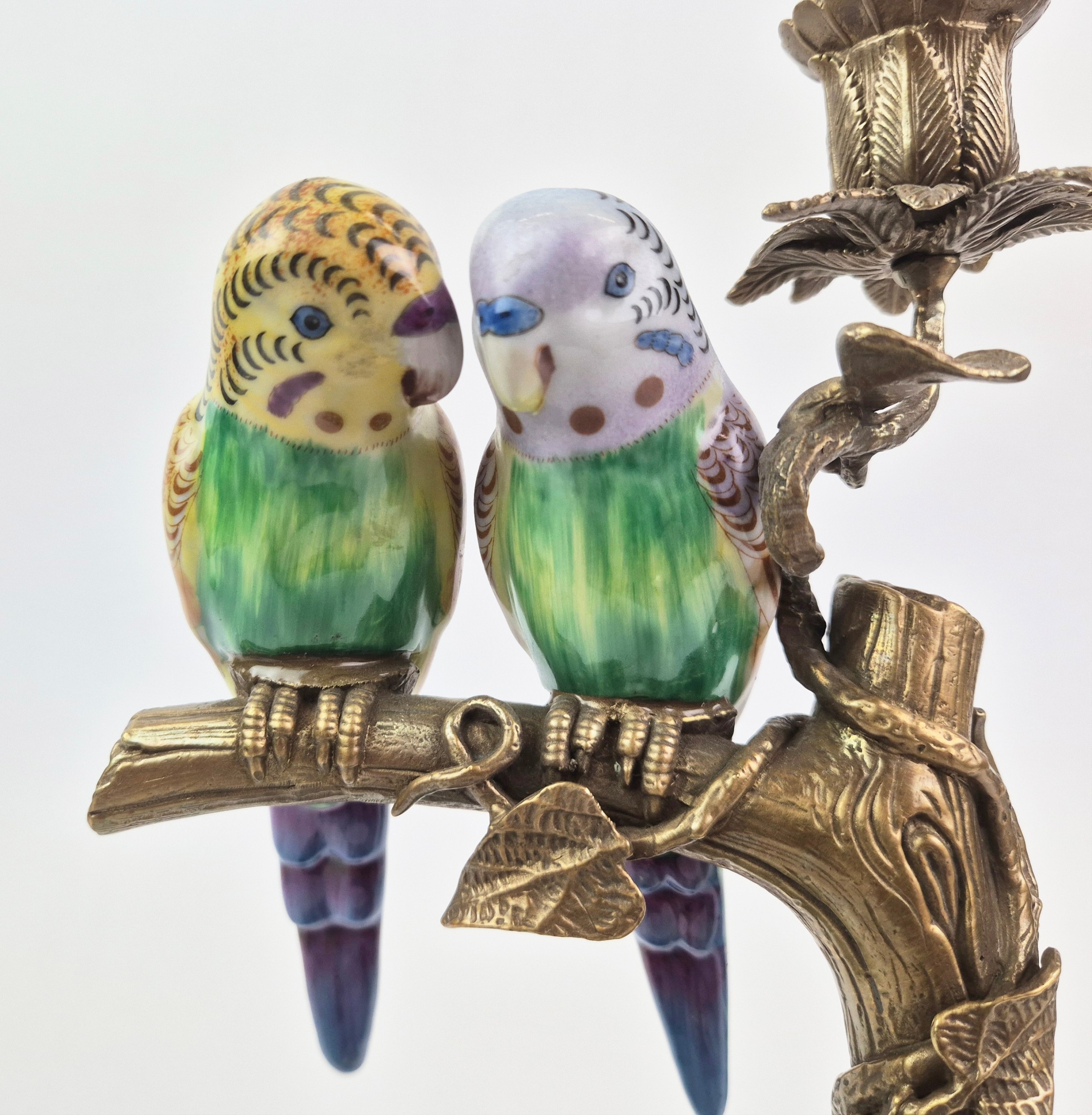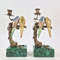 CANDLESTICKS, A PAIR. in the form of birds sitting in trees, 30cm H approx.
