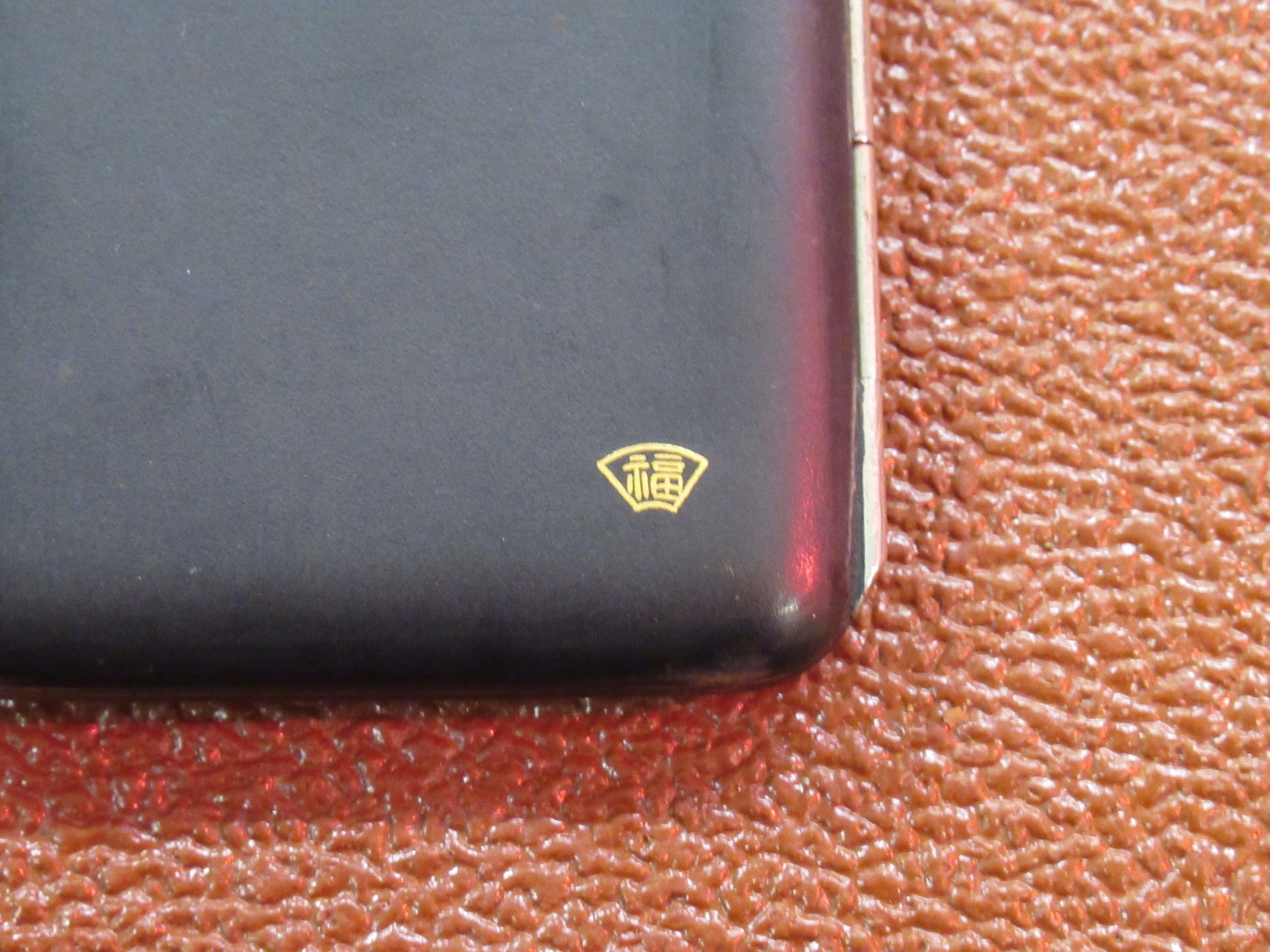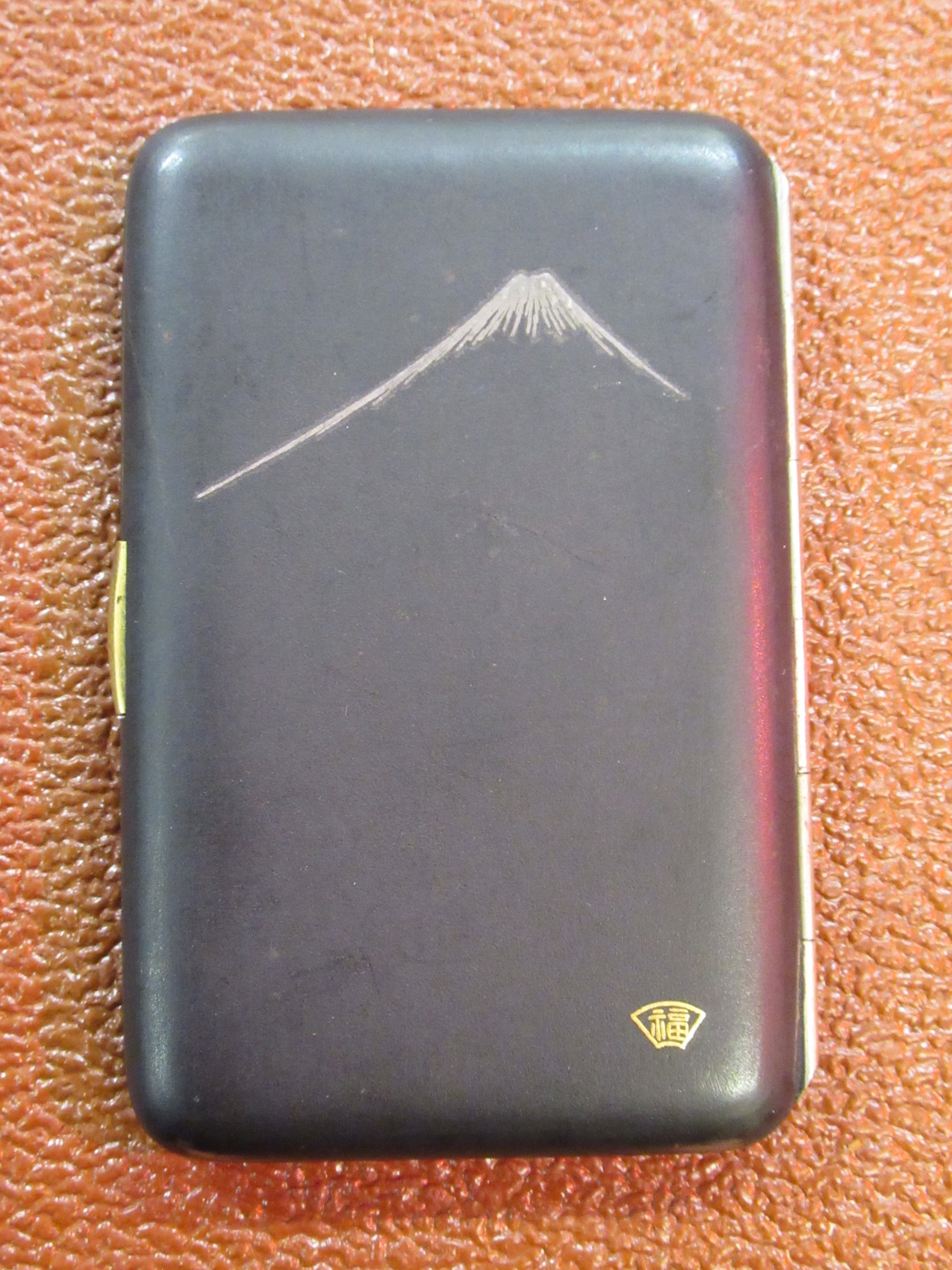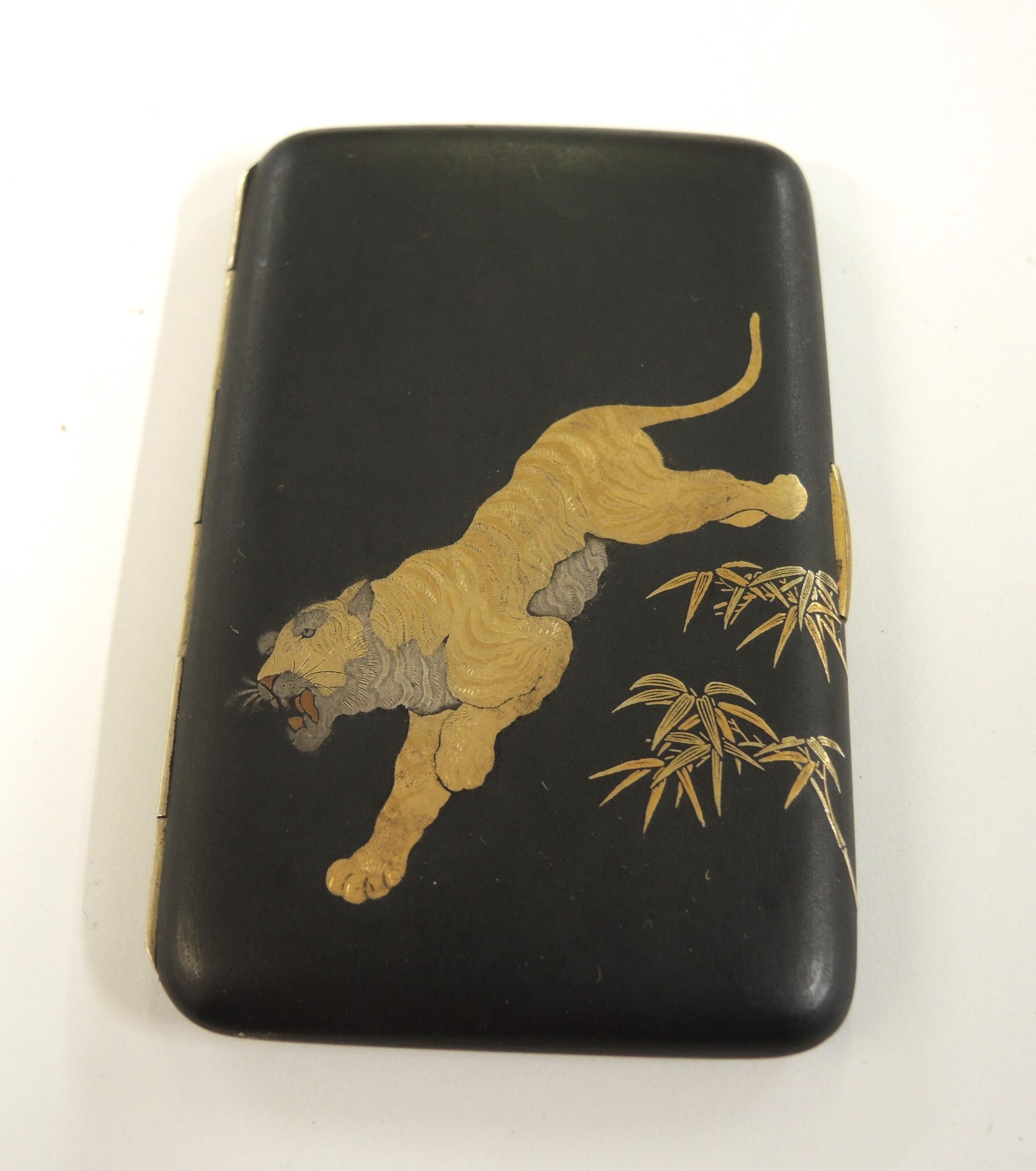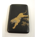 Japanese rectangular black metal cigarette case, gold decorated with a tiger, signed to the reverse, 9 x 6cm