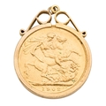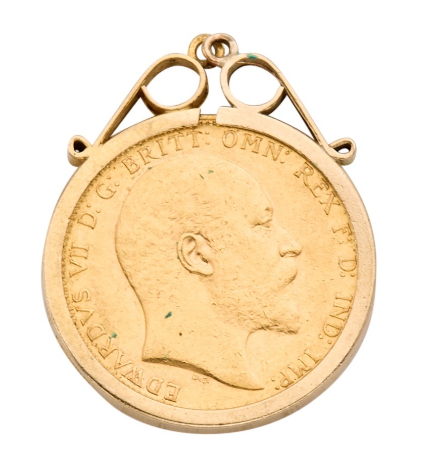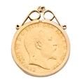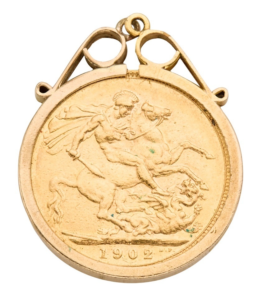 Edward VII, 1902, in mount surface testing as 9ct, approximately 9.58 grams gross