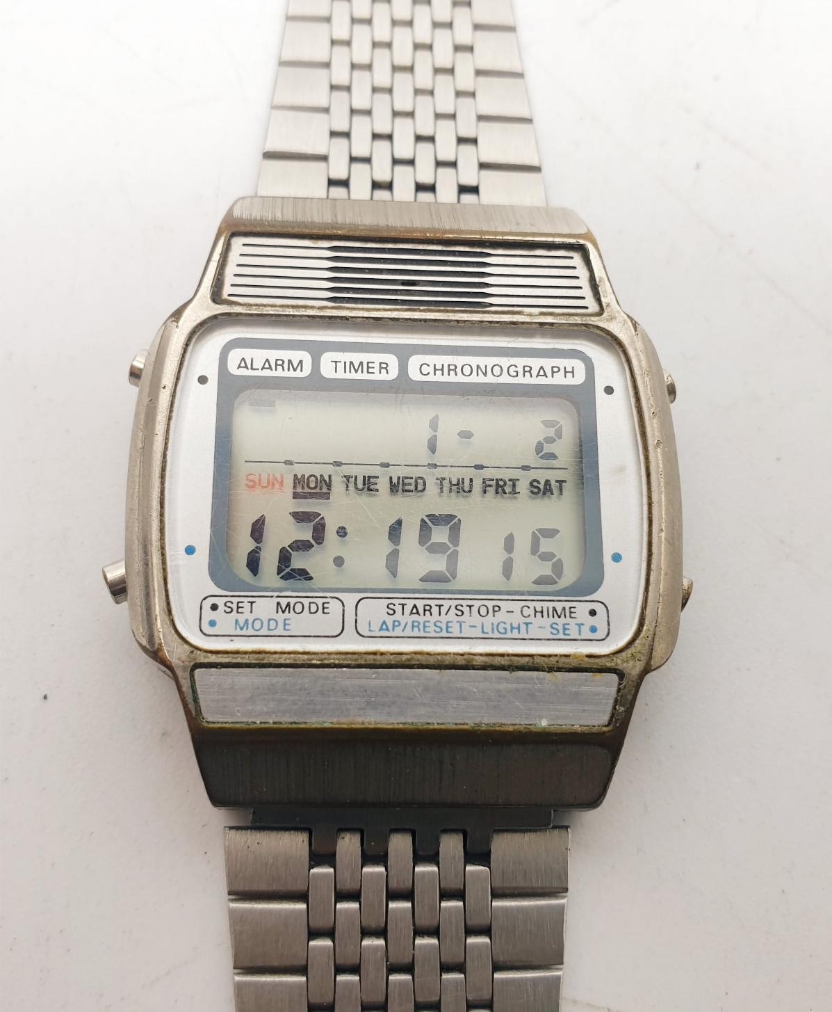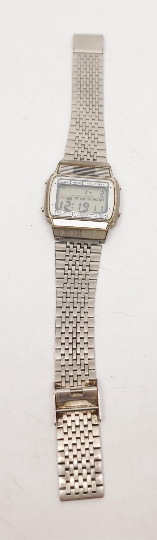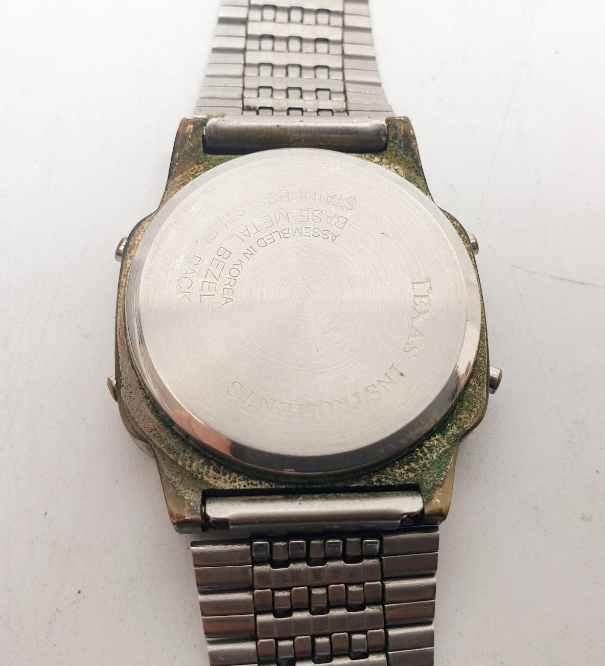 A vintage Texas Instruments digital chronograph alarm clock wrist watch. No international shipping. Electricals are sold as scrap.