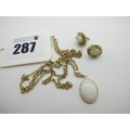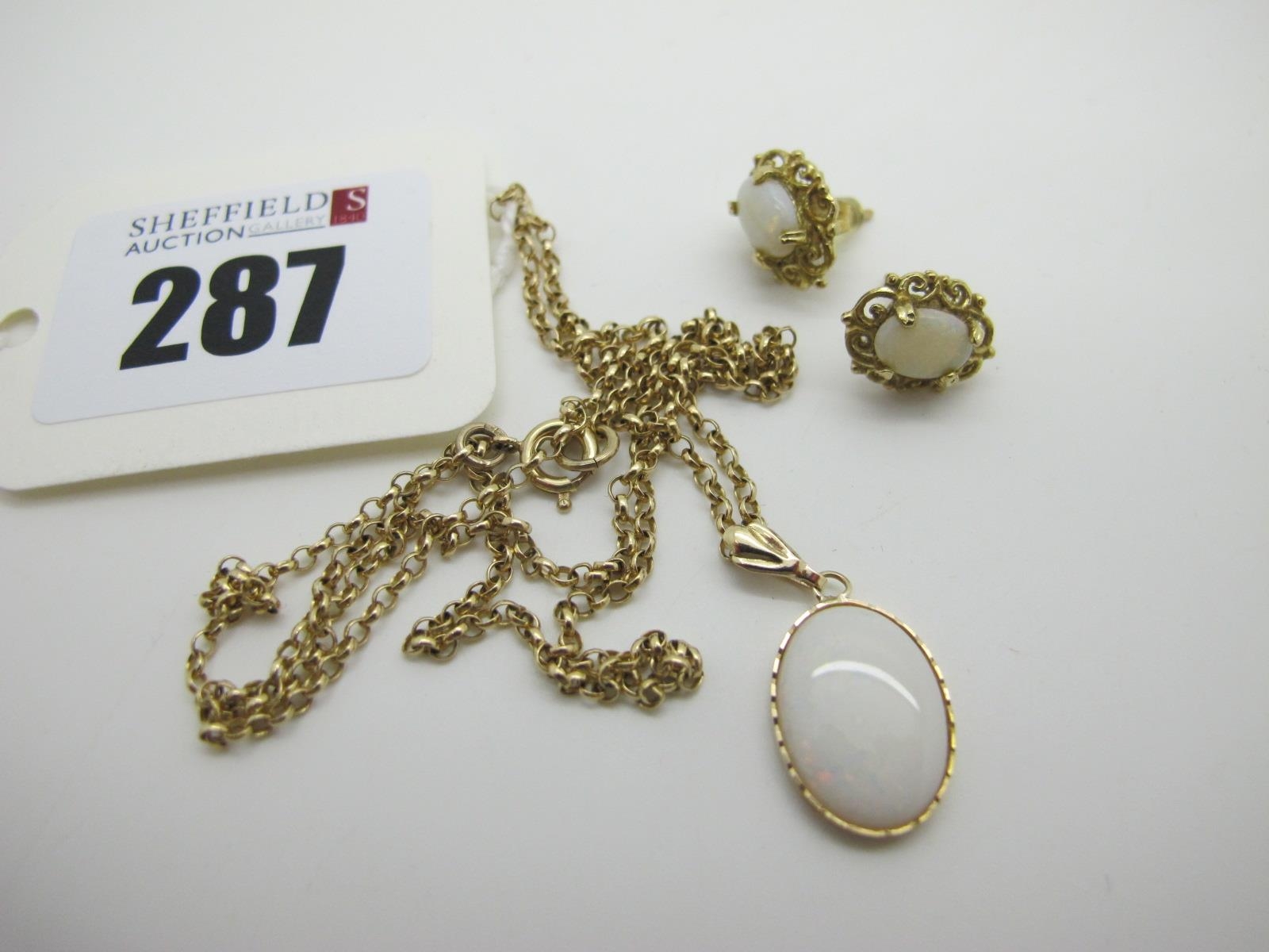 A Modern Single Stone Opal Pendant, on a 9ct gold chain; together with a pair of modern single stone opal earstuds.