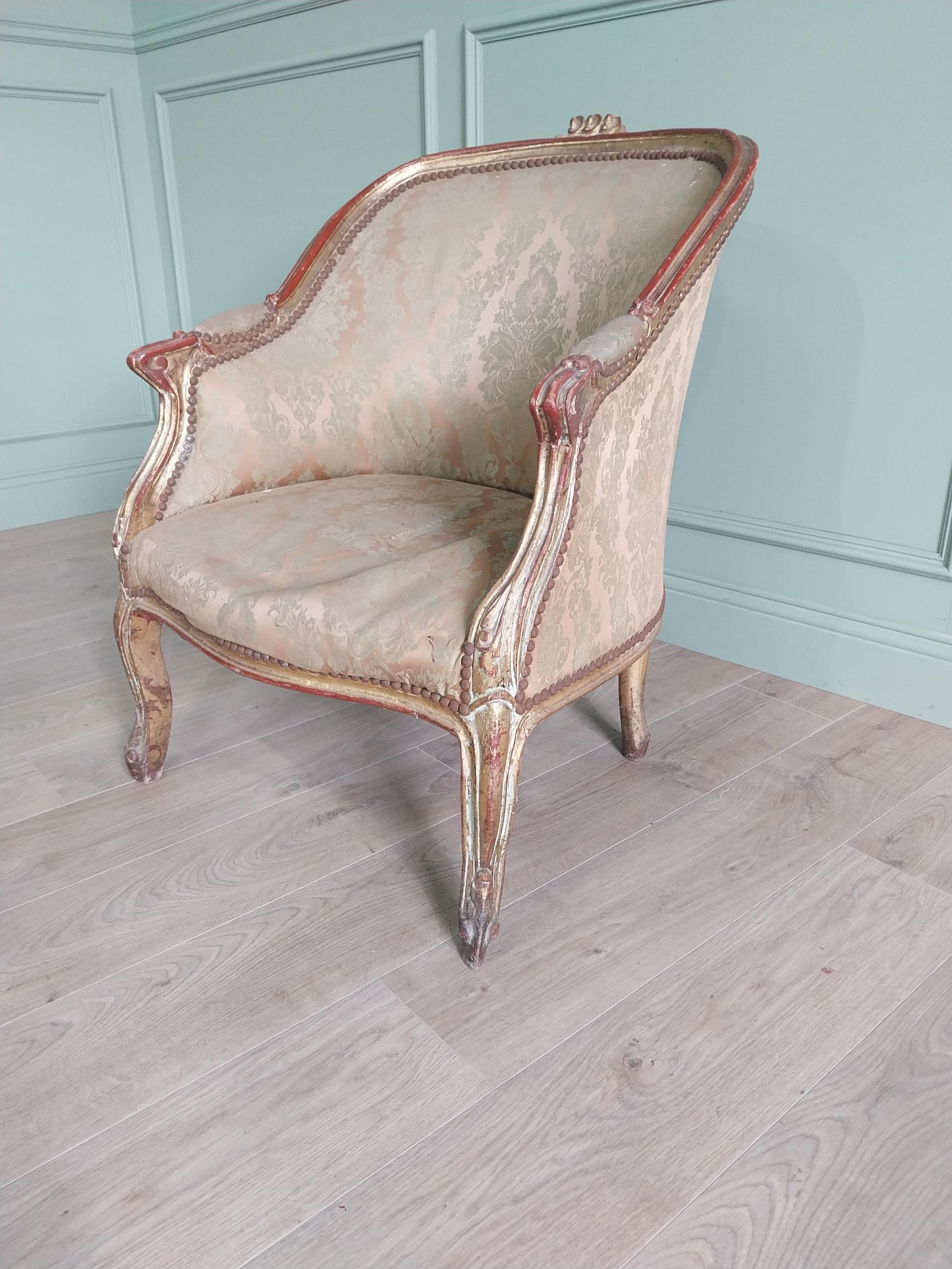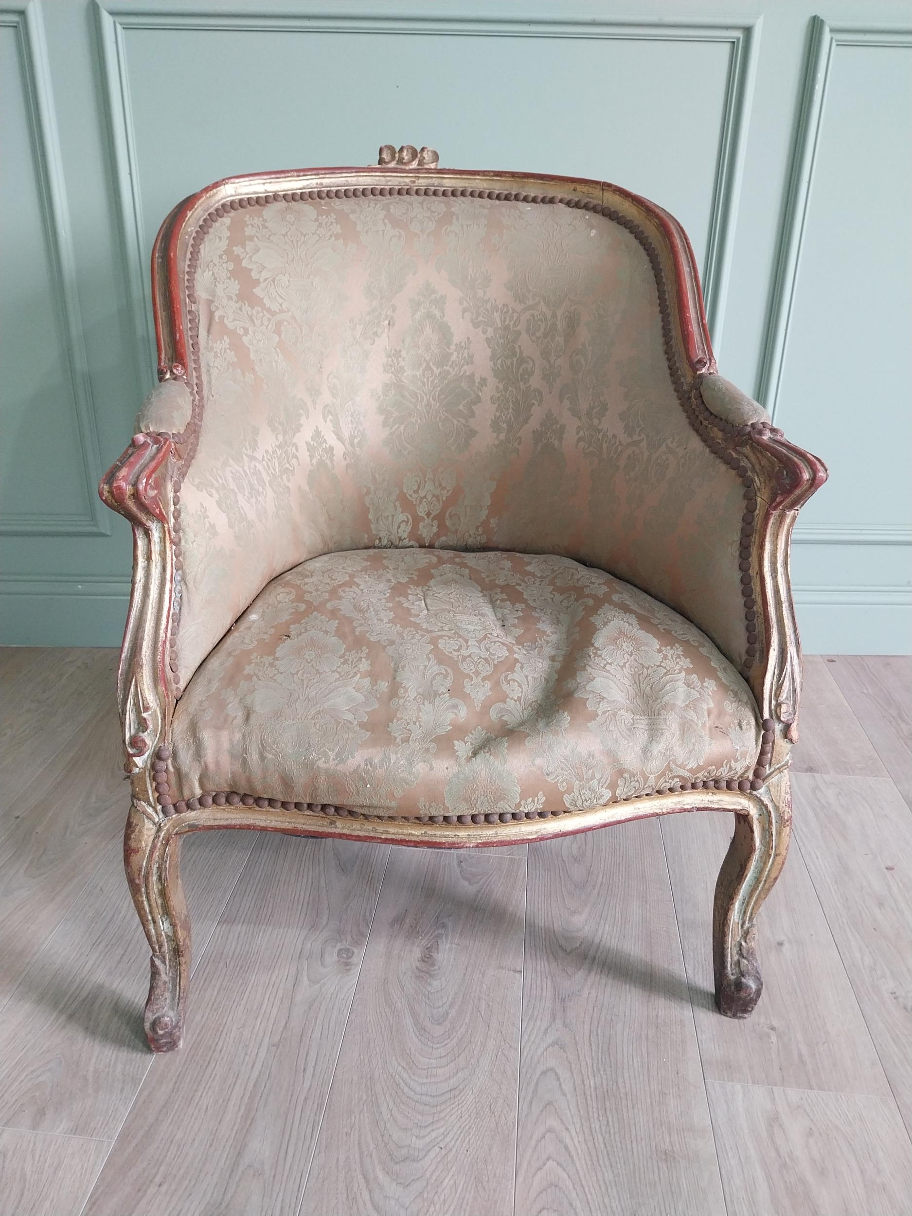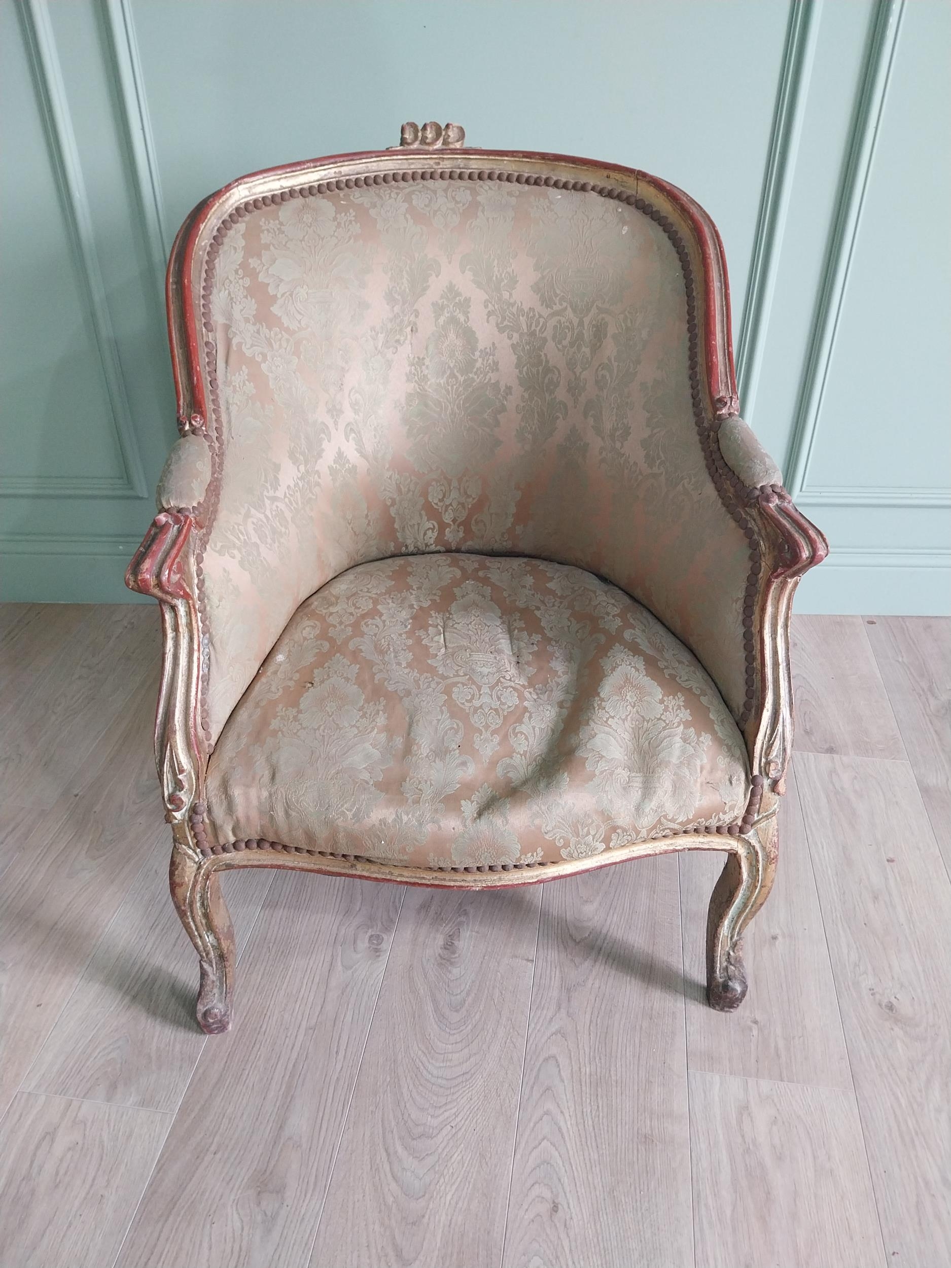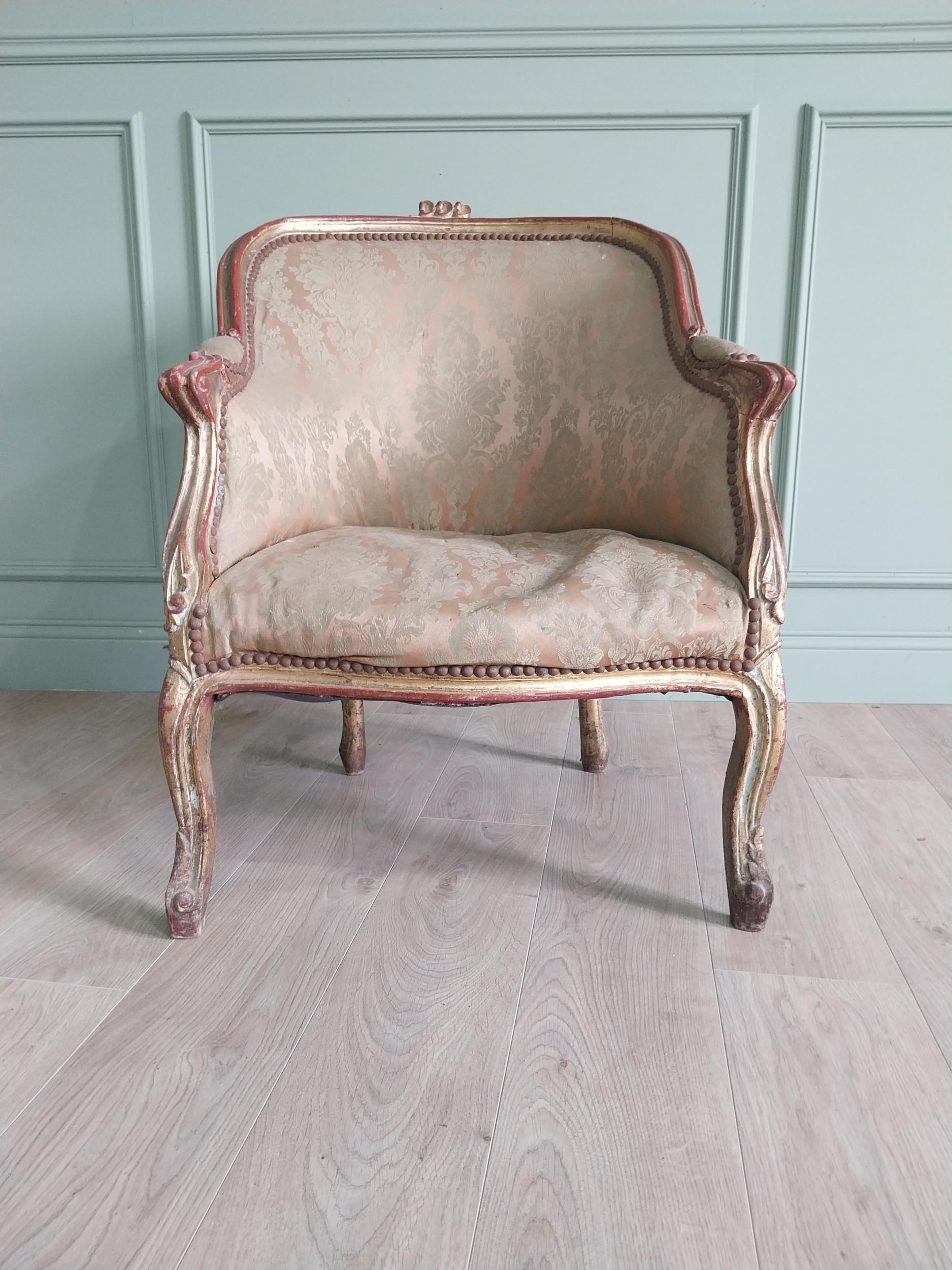 French giltwood and upholstered armchair in the 19th C. style {87 cm H x 87 cm W x 70 cm D}.