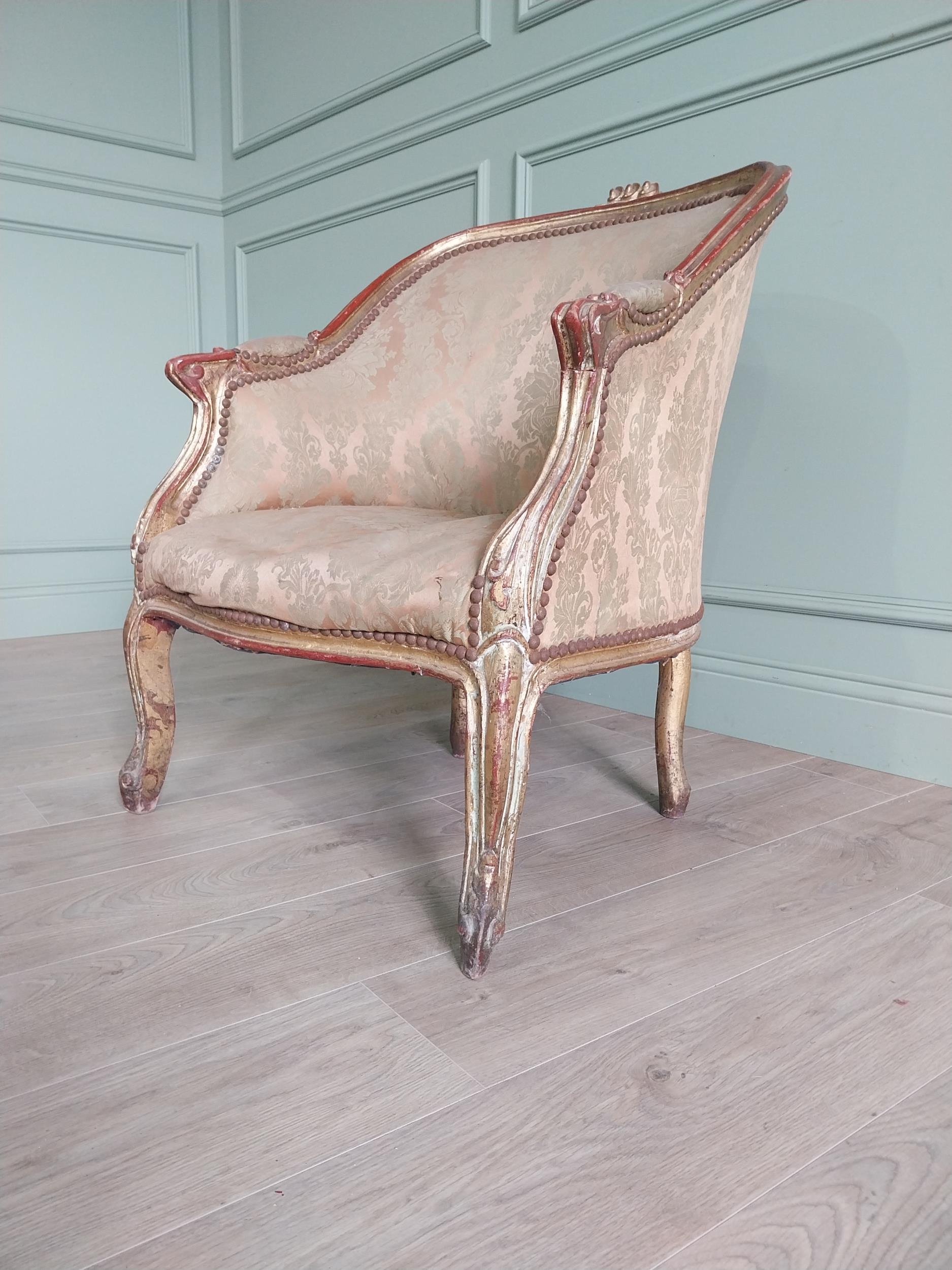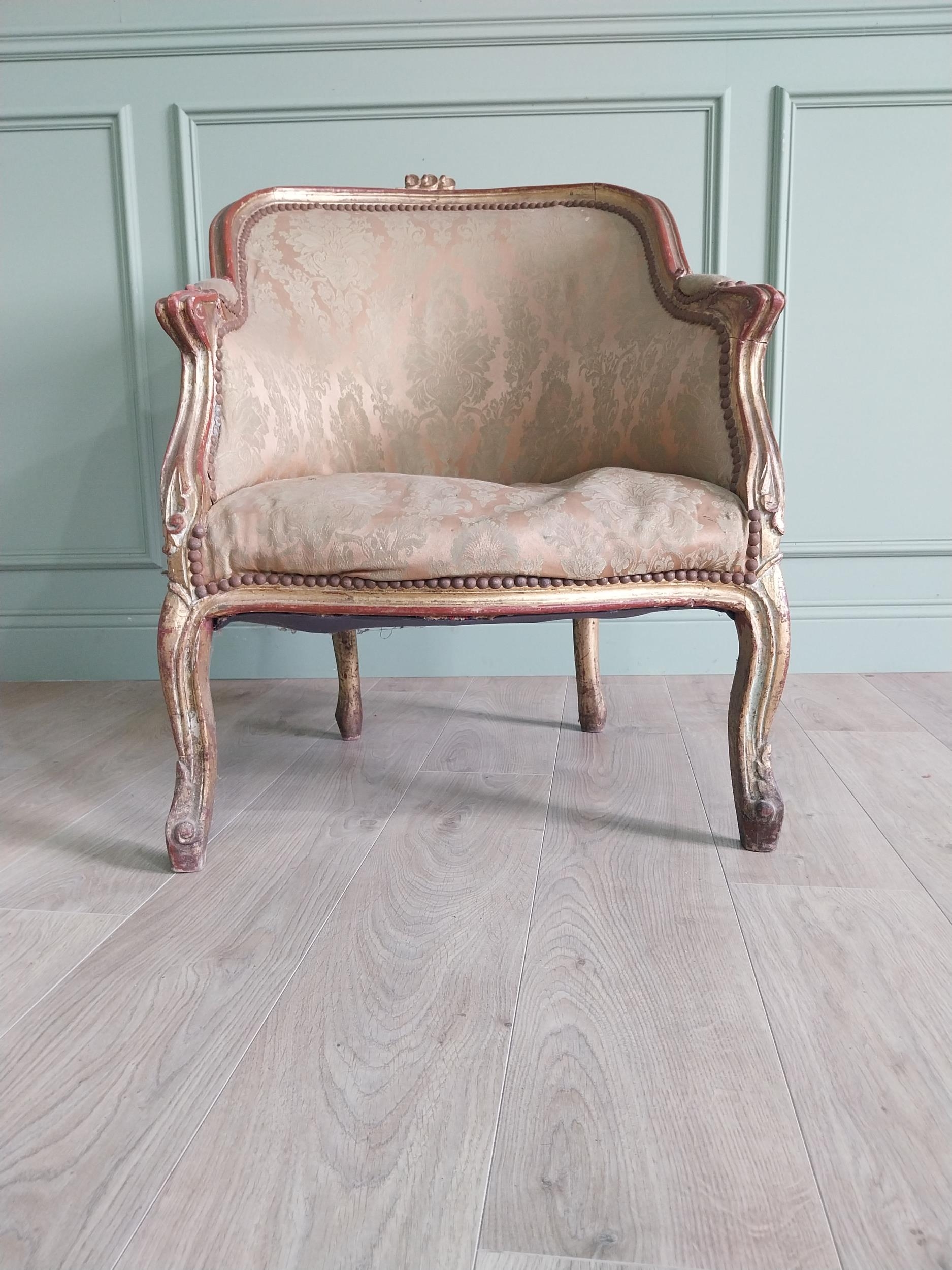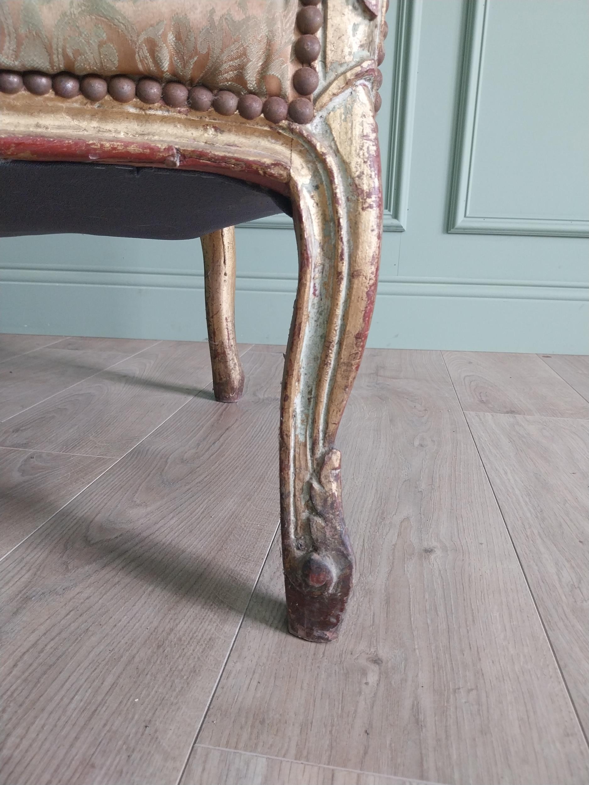 French giltwood and upholstered armchair in the 19th C. style {87 cm H x 87 cm W x 70 cm D}.