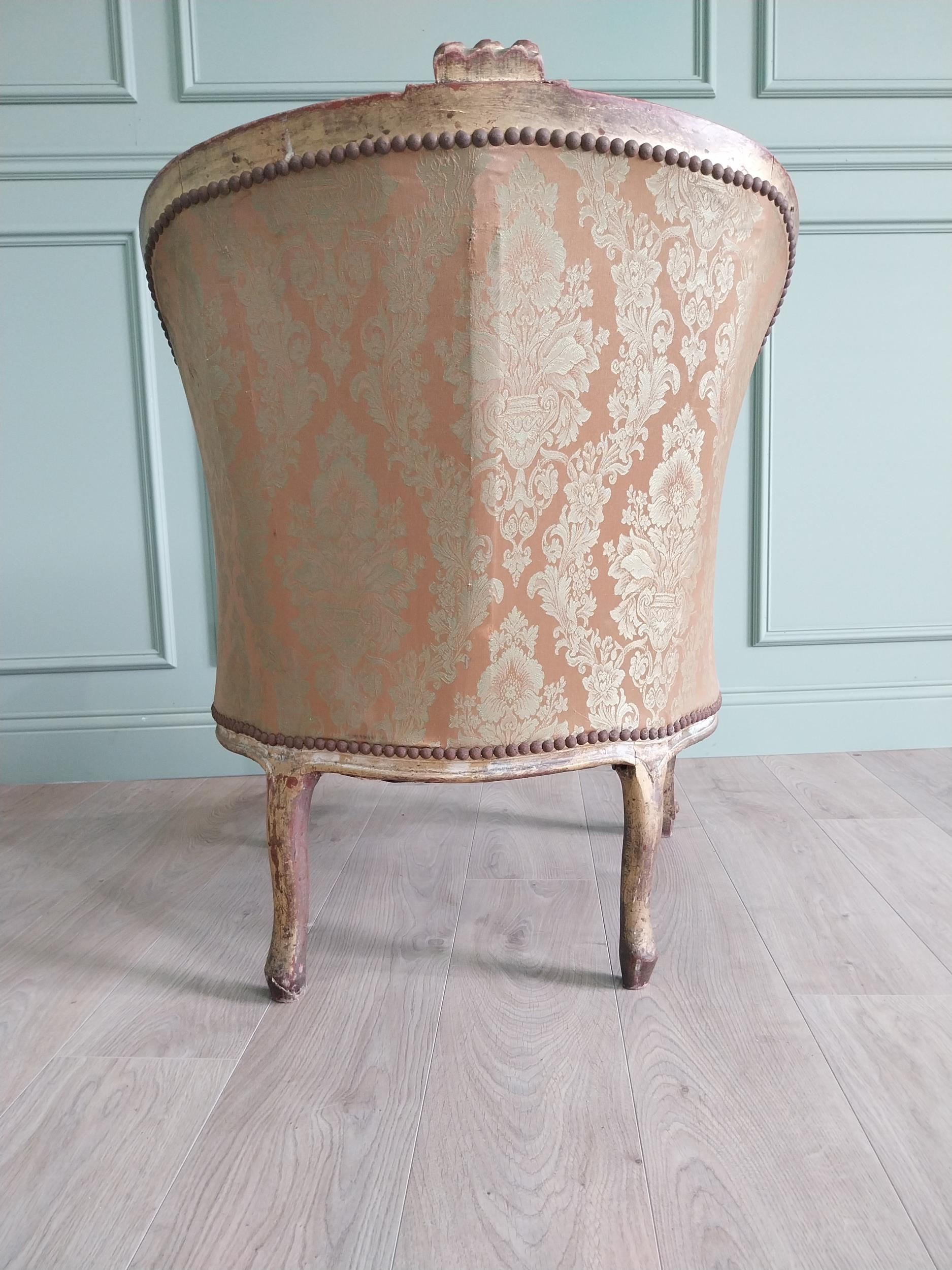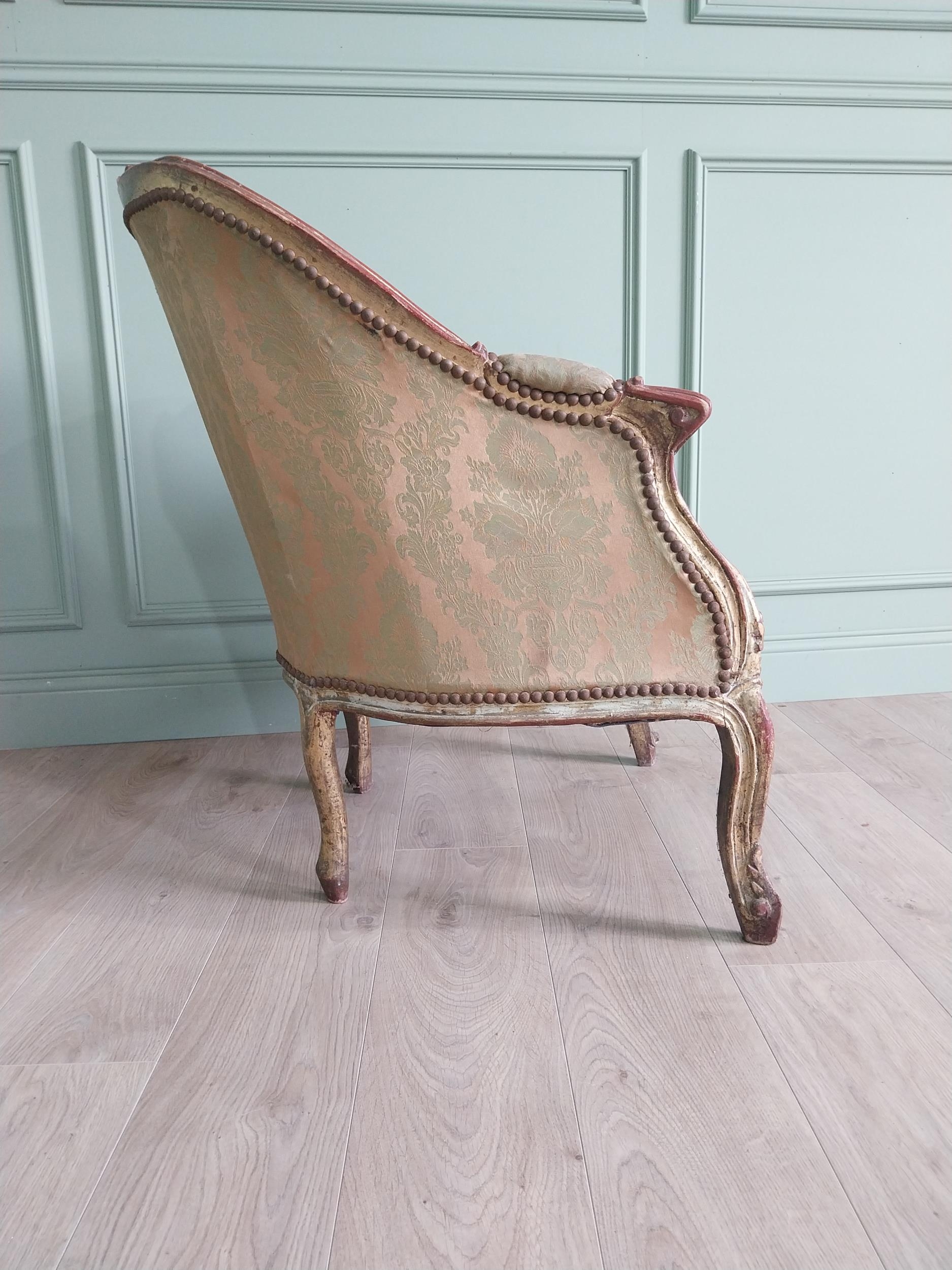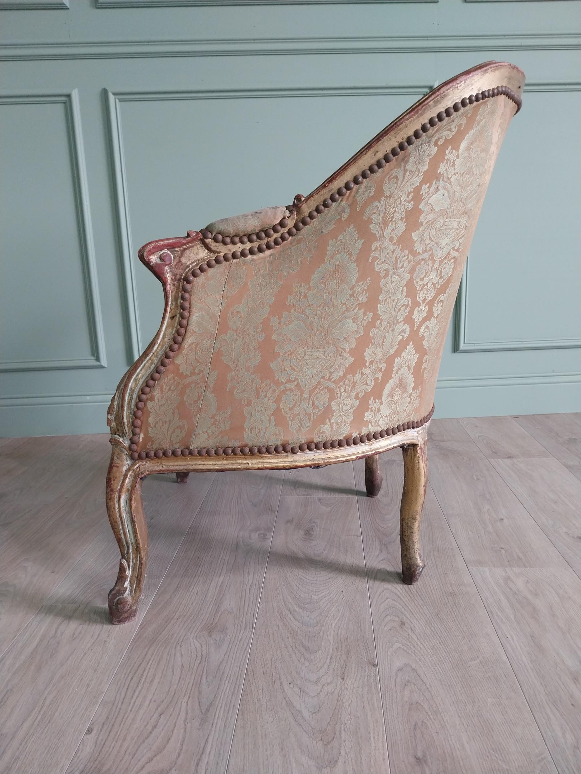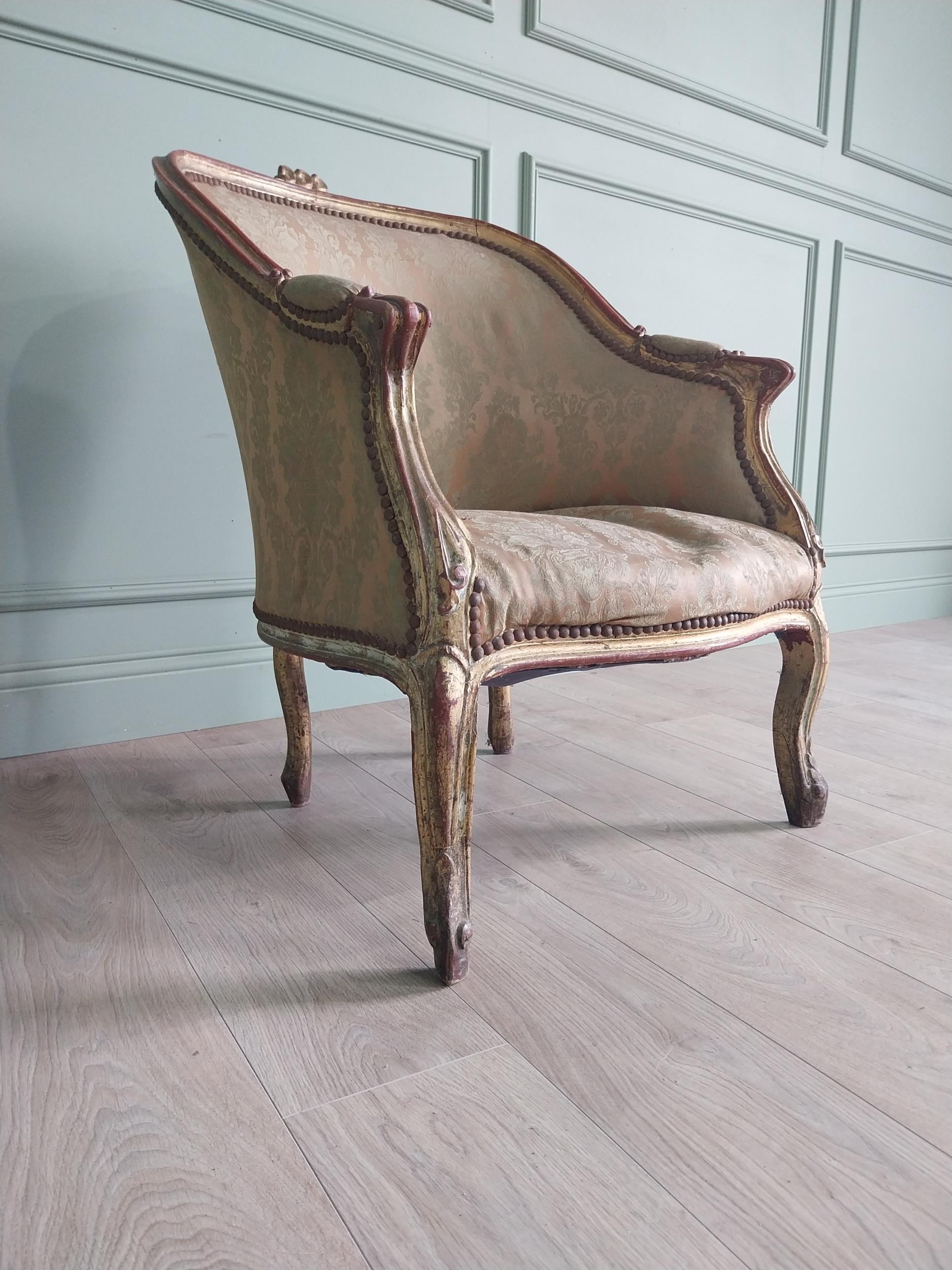 French giltwood and upholstered armchair in the 19th C. style {87 cm H x 87 cm W x 70 cm D}.