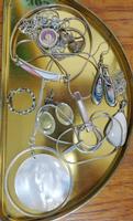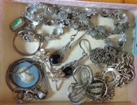 Silver & White Metal Jewellery inc. green stone set necklace, blue stone set necklace, ring etc.