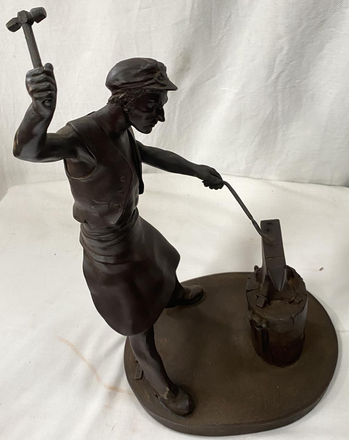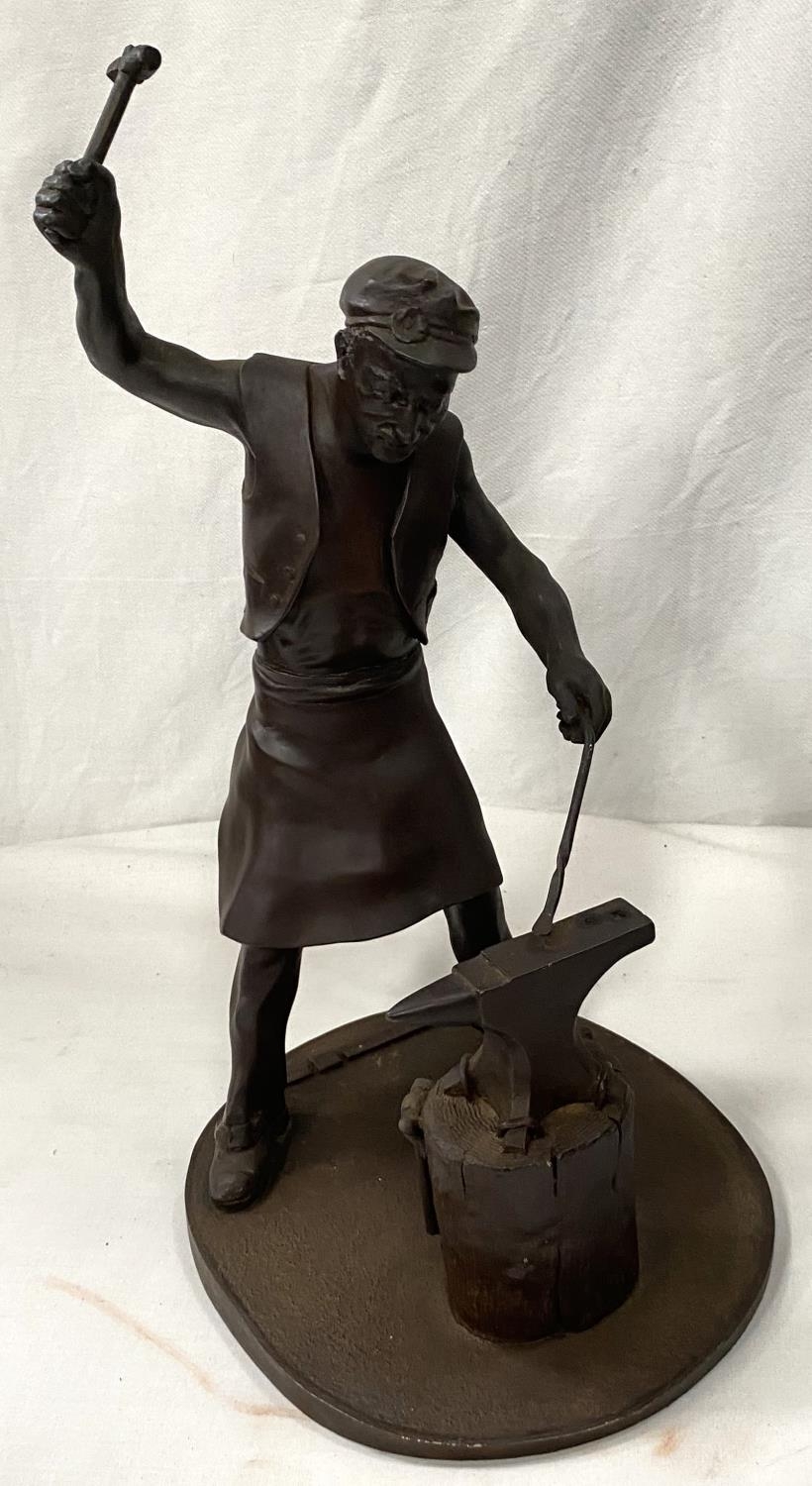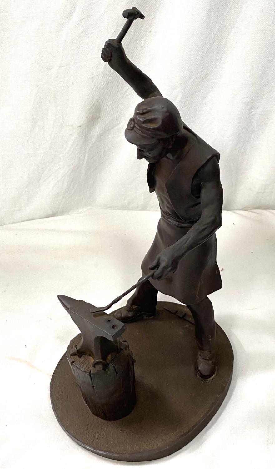A limited edition bronzed resin figure: Blacksmith at work, signed J Winter , 20/5000
