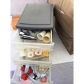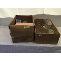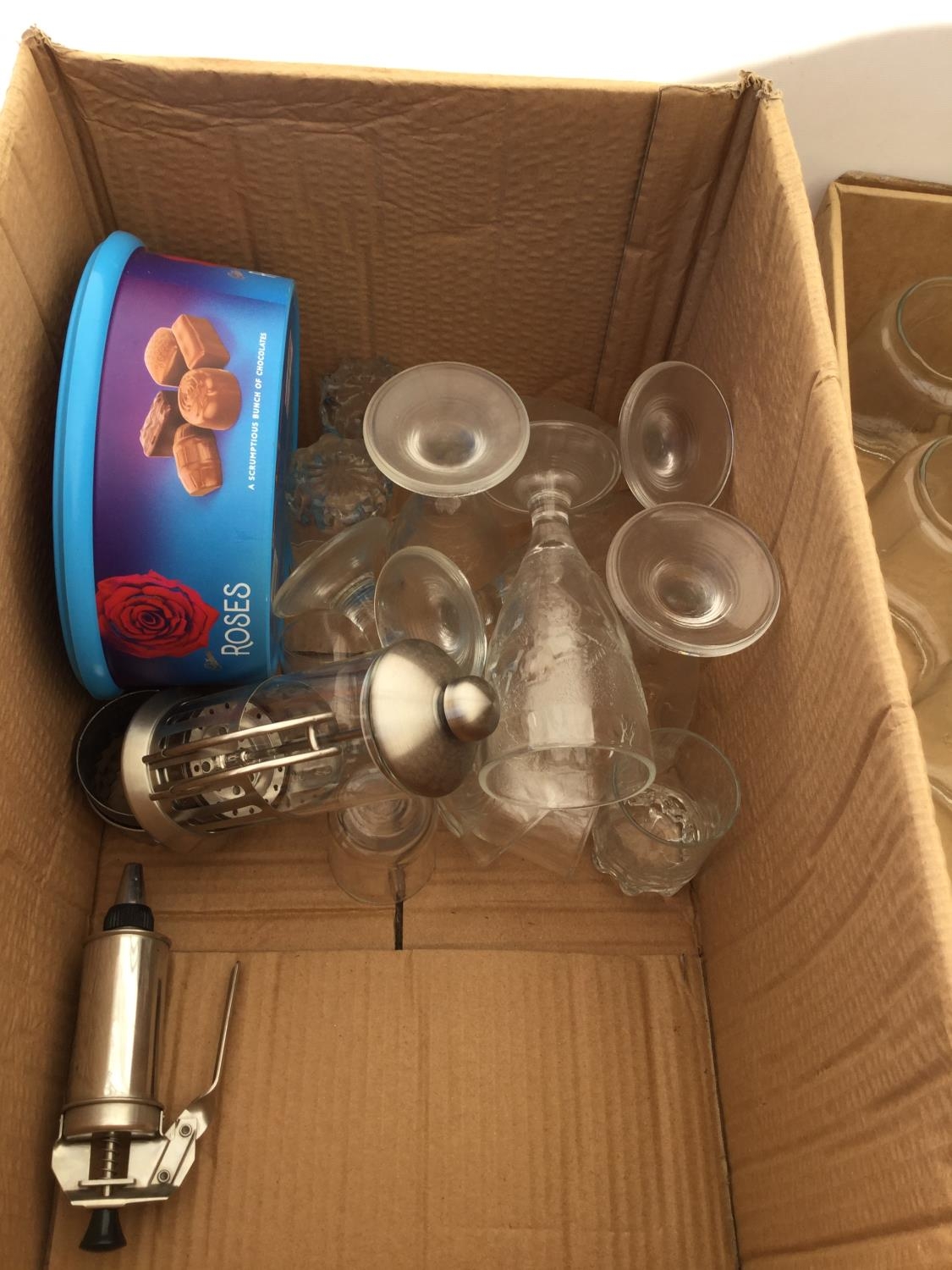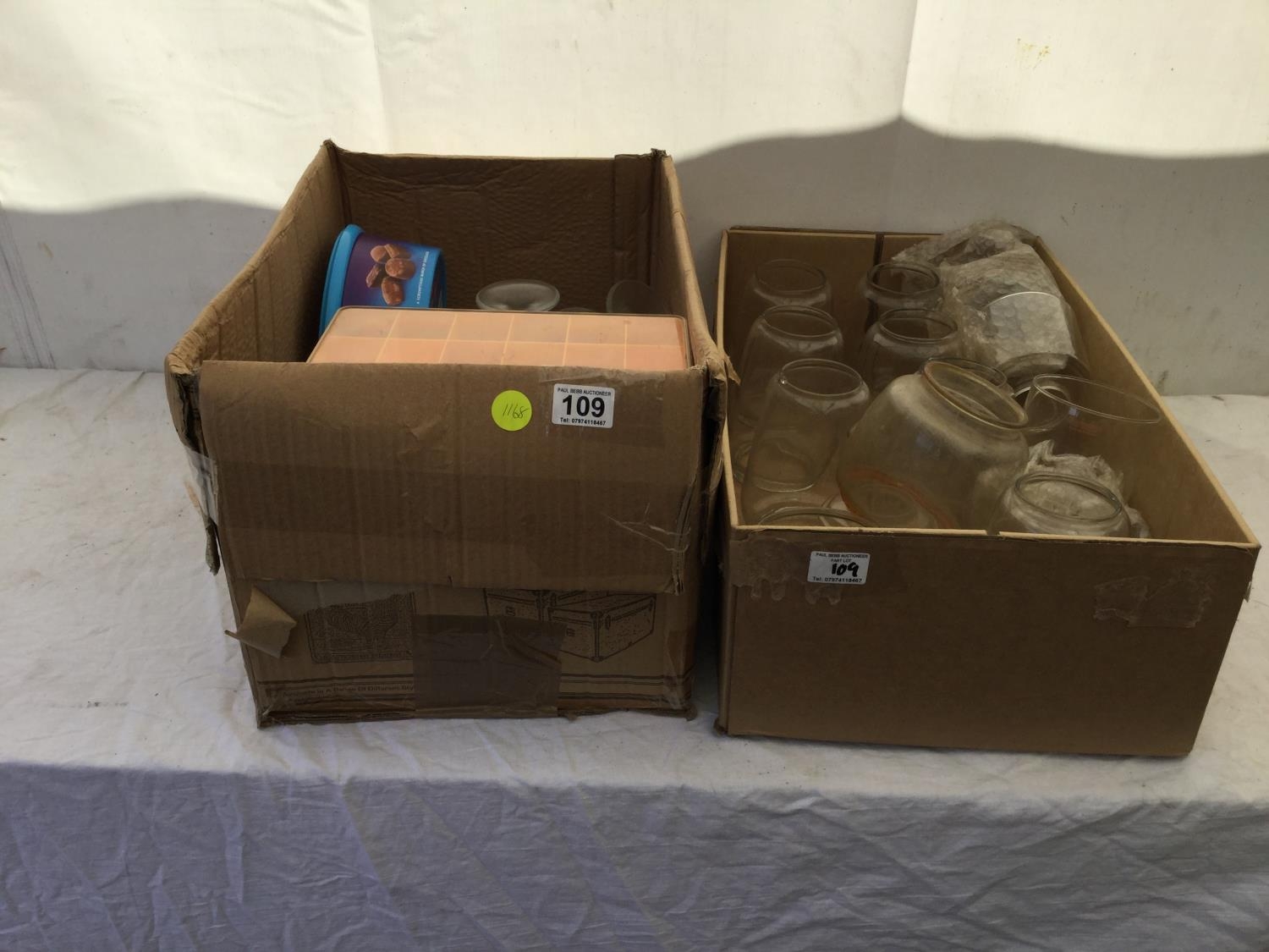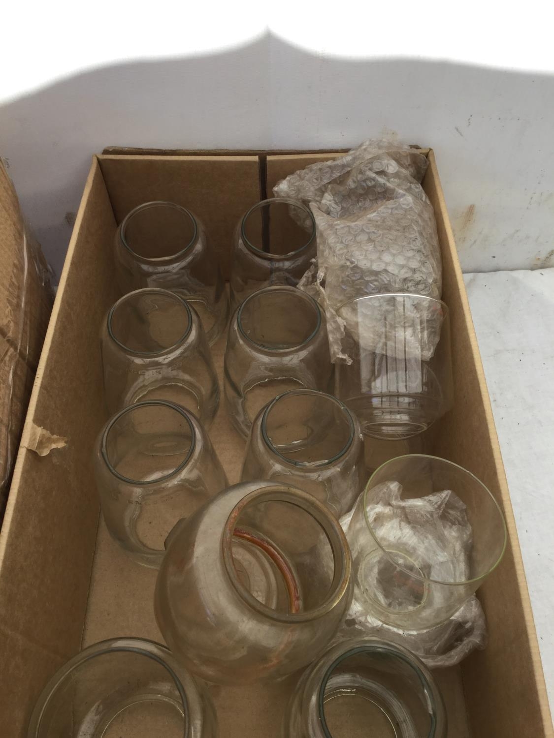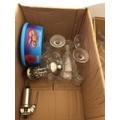 2 BOXES OF GLASSWARE ETC TO INCLUDE LAMP SHADES ETC
