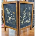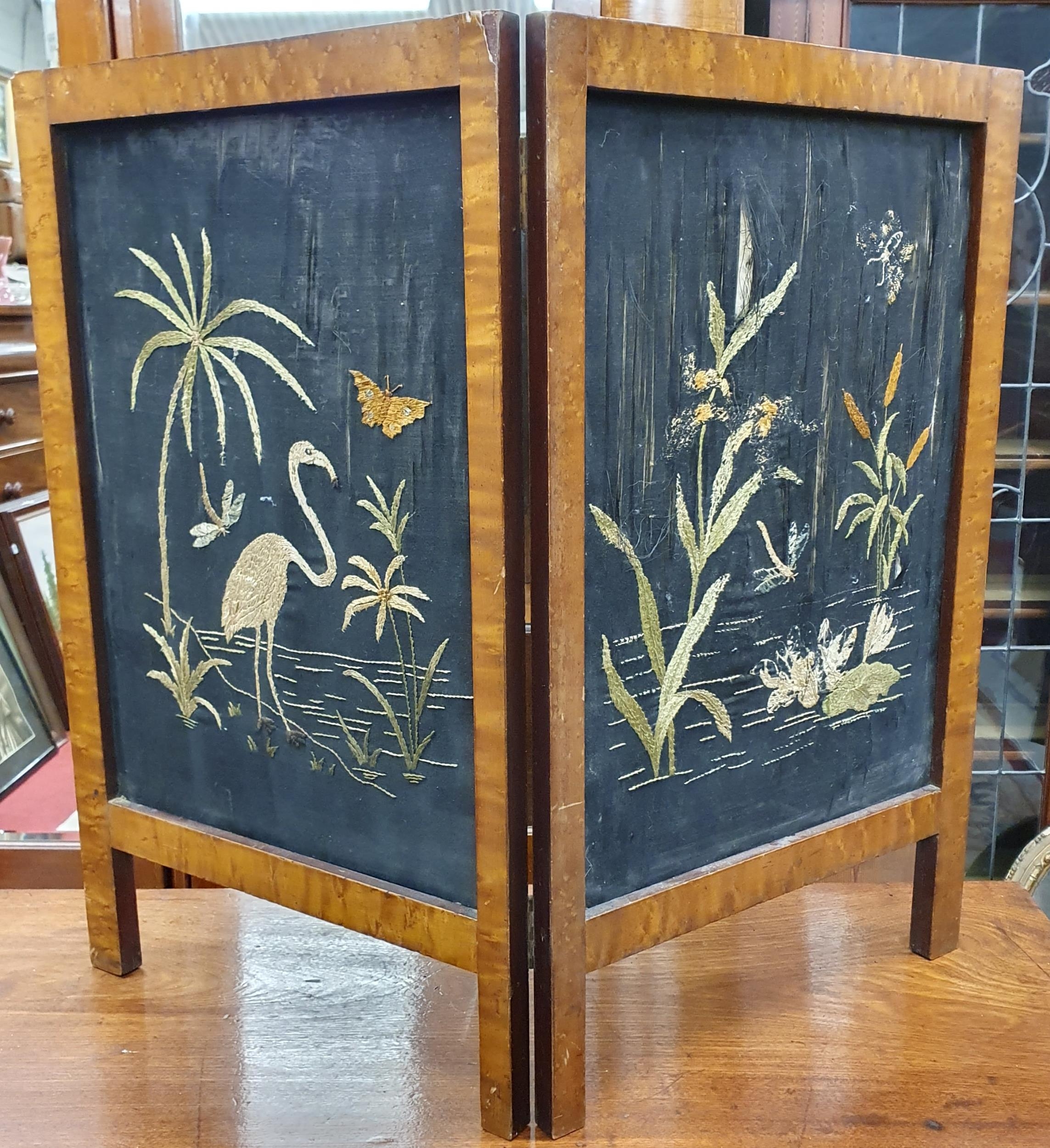 A 19th Century two panel Table Screen with silk panelled centre. (flaws to the silk).H 70 x W 86 cm approx.