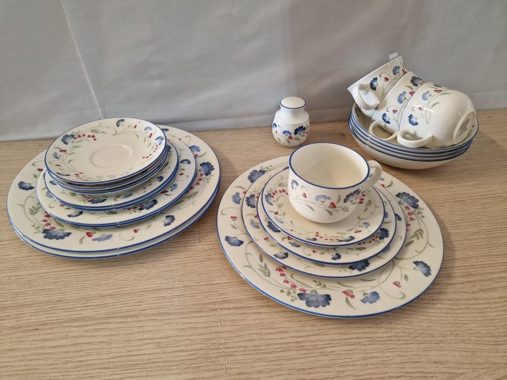 Collection of Royal Doulton Expressions Tableware, (Circa 1990's, Made in England), Incl. 3 x Dinner Plates, 3 x Medium Plates, 3 x Side Plates, 4 x Cups & Saucers, 4 x Bowls and Salt Pot
