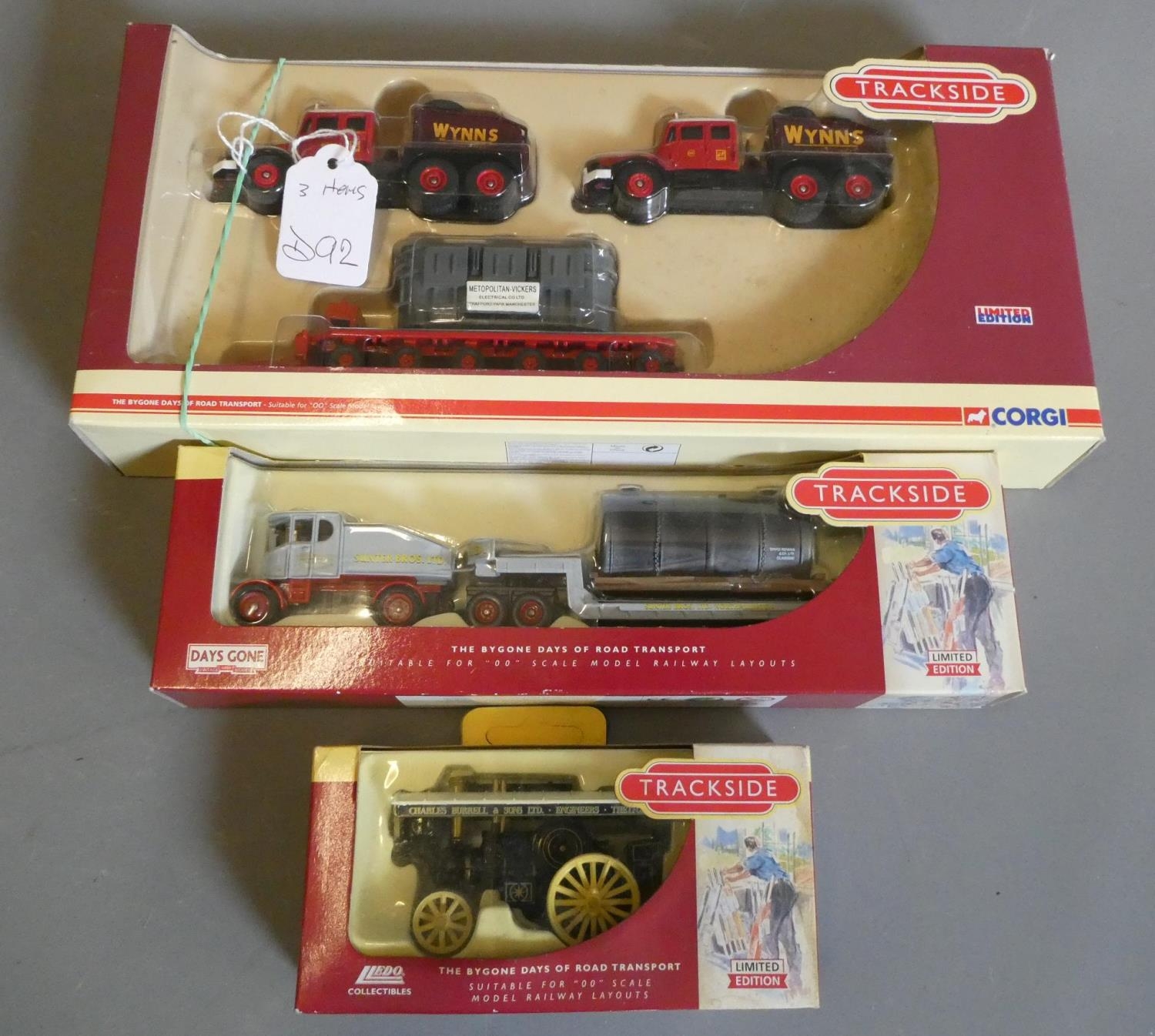 Three trackside OO scale models comprising two haulage lorries and traction engines