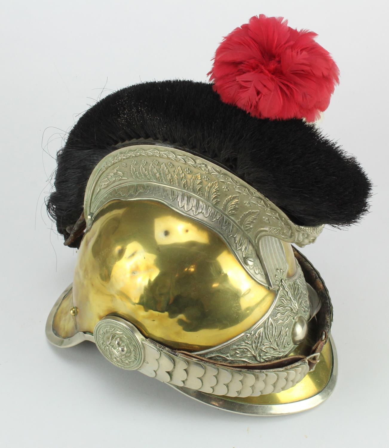 French Mounted Police Troop Helmet, M1912. Brass and nickel silver, with liner and chin strap