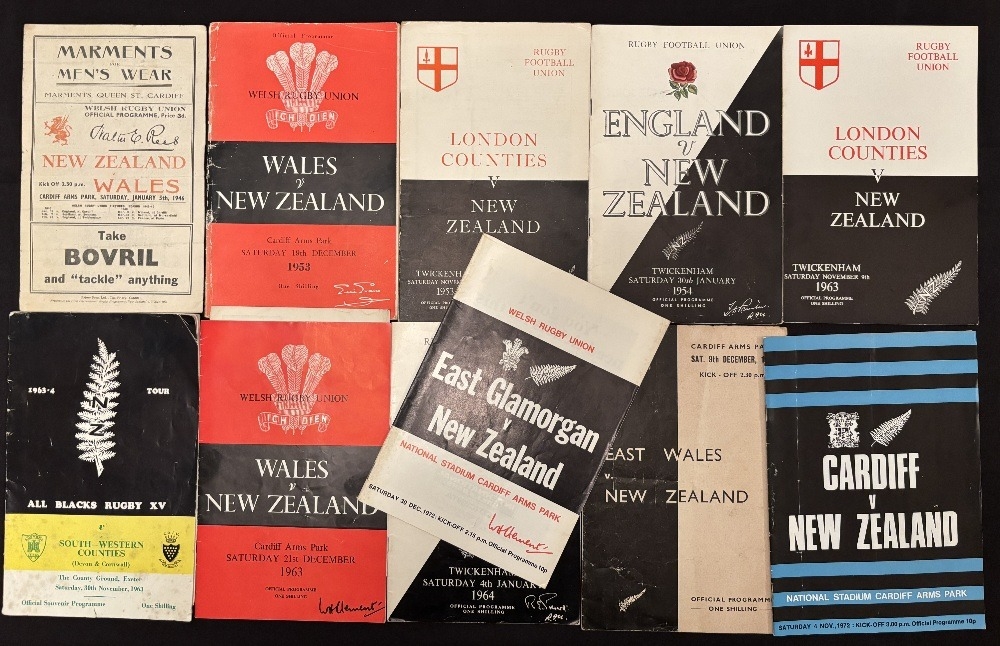 1946-1972 New Zealand in the UK Rugby Programmes (11): 46 Wales v Kiwis; 53 v Wales (last Welsh win!) and v London Counties and England; 63 v London Counties, SW Counties, Wales, England and E Wales (draw); 72 v Cardiff and E Glam. Mostly G/VG