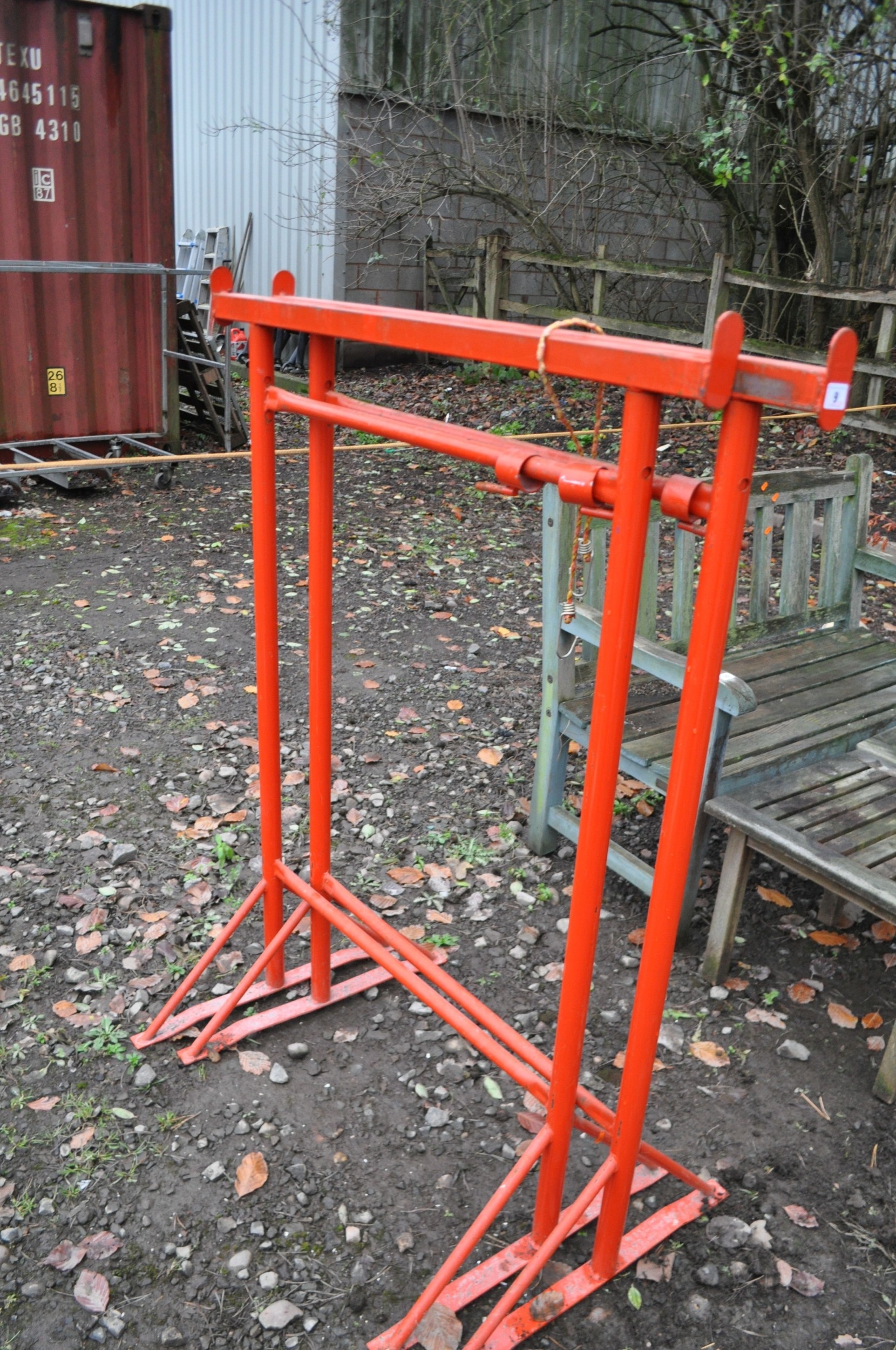 A PAIR OF BUILDER TRESTLE STANDS height adjustable, min height 131cm, width at top 100cm