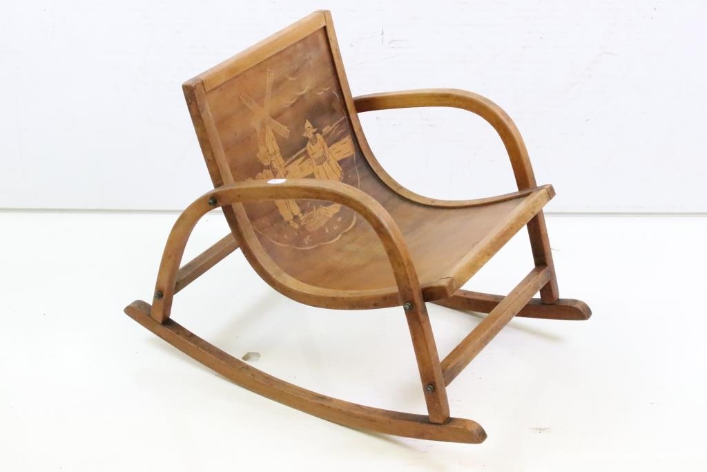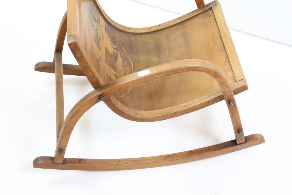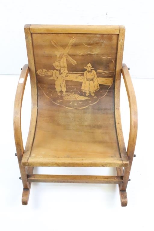 Mid century Bentwood Child’s Rocking Chair decorated with a Dutch Boy and Girl, 36cm wide x 44cm high