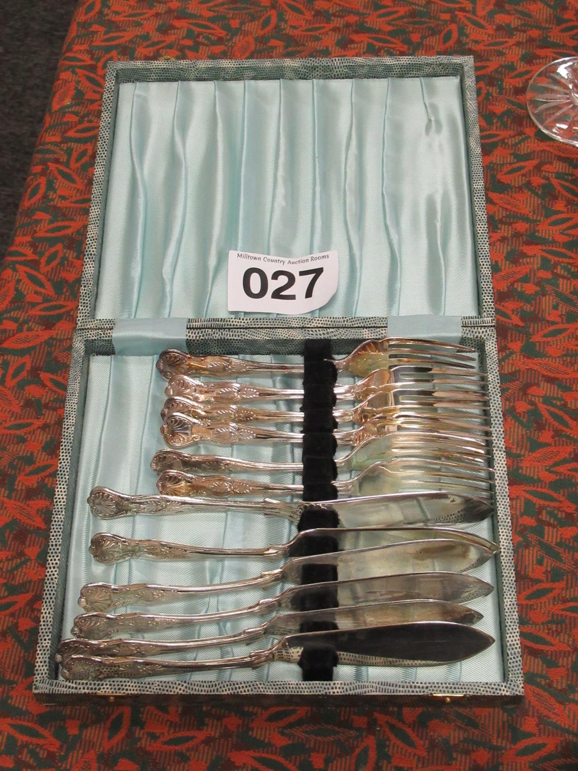 Cased set of Newbridge fish knives and folks.
