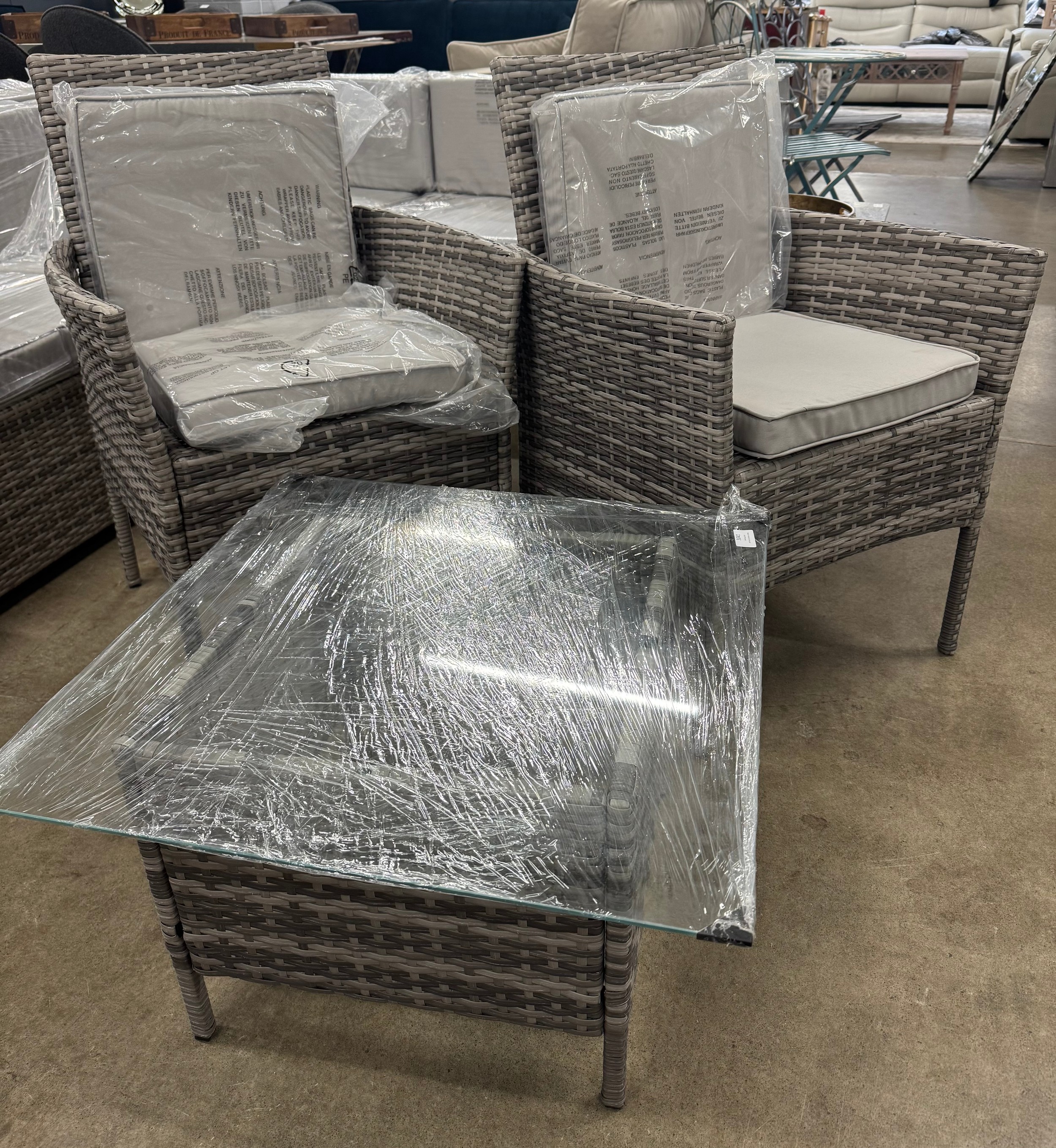 A three piece all weather rattan set