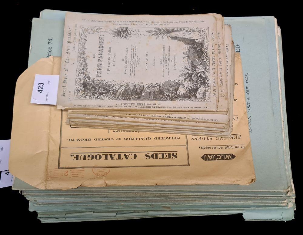 ORIGINAL PARTS : Heath, Francis George - The Fern Paradise : 10 of 12 Parts, wrappers, 8vo, 1880. With - Dore, Gustave Dore illust, The Divine Comedy of Dante, 47 ex 50 parts, (lacking parts 1-3), wrappers, 4to, Cassells, n.d. With a seed catalogue W. C. A 1955. (a lot)