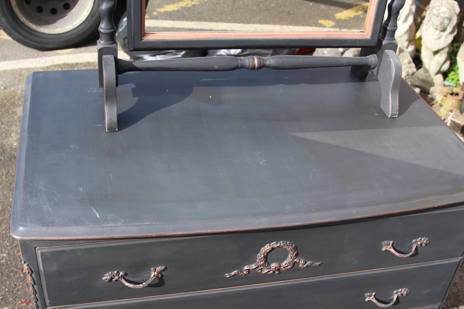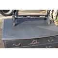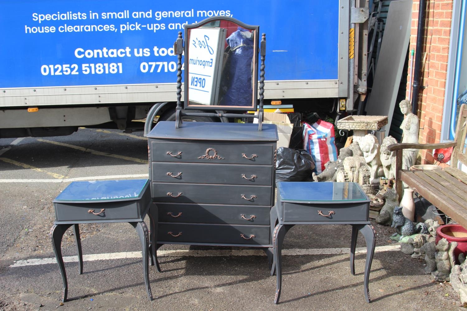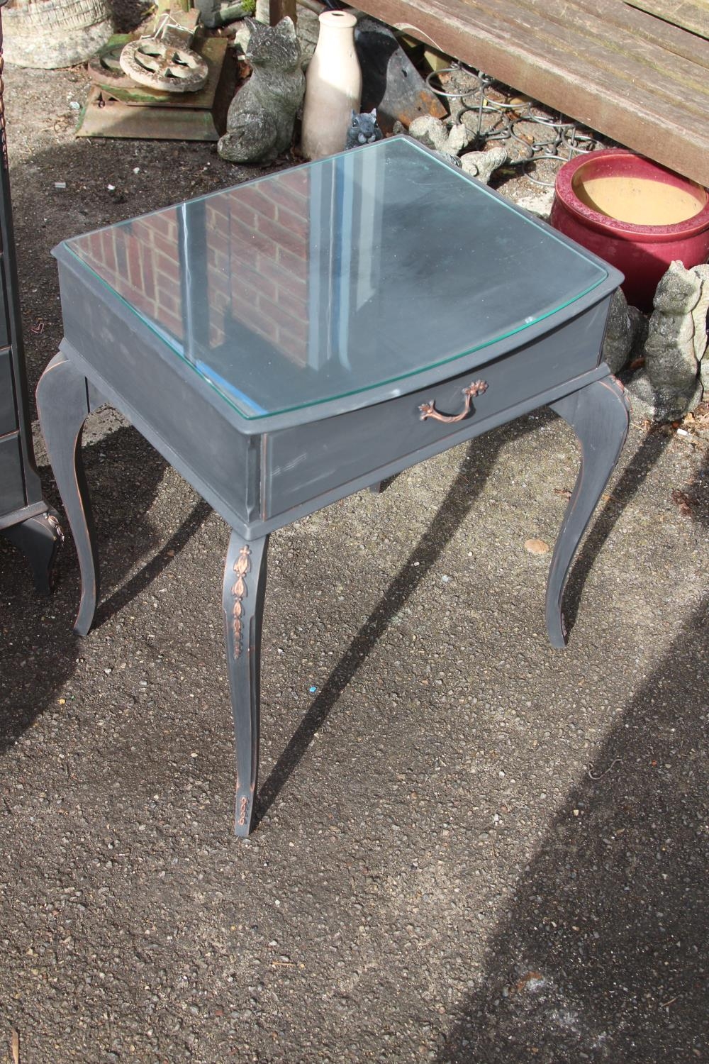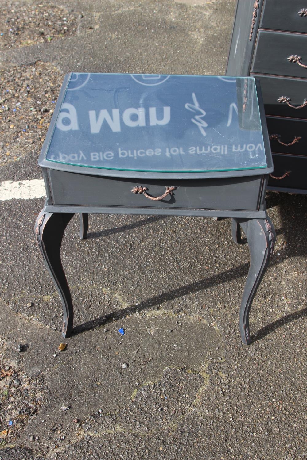 PAINTED QUEEN ANNE STYLE DRESSING TABLE AND PAIR OF BEDSIDE TABLES